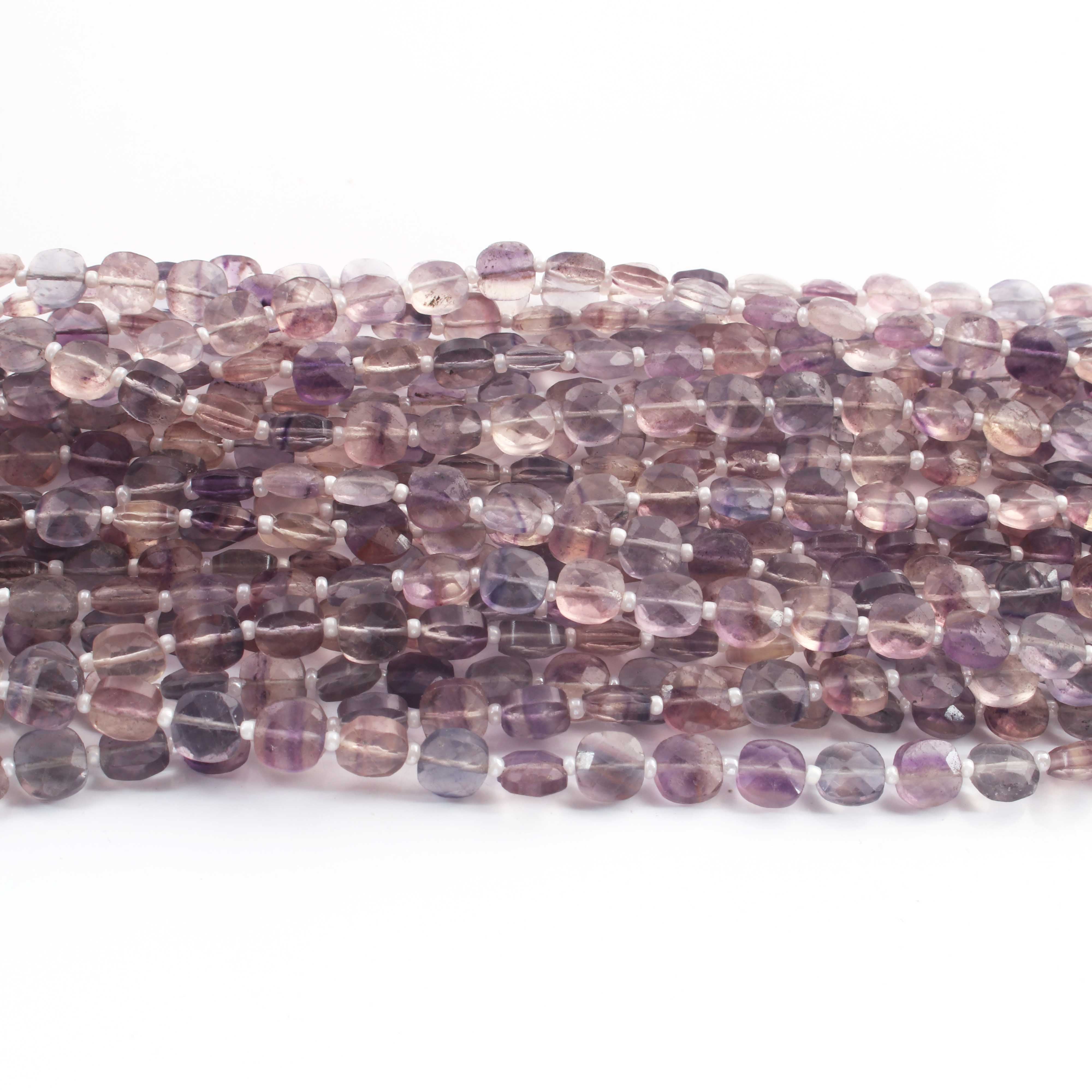1 Long Strand Multi Flourite Faceted Briolettes - Cushion Shape Briolettes 7mm -14 Inches BR02653
