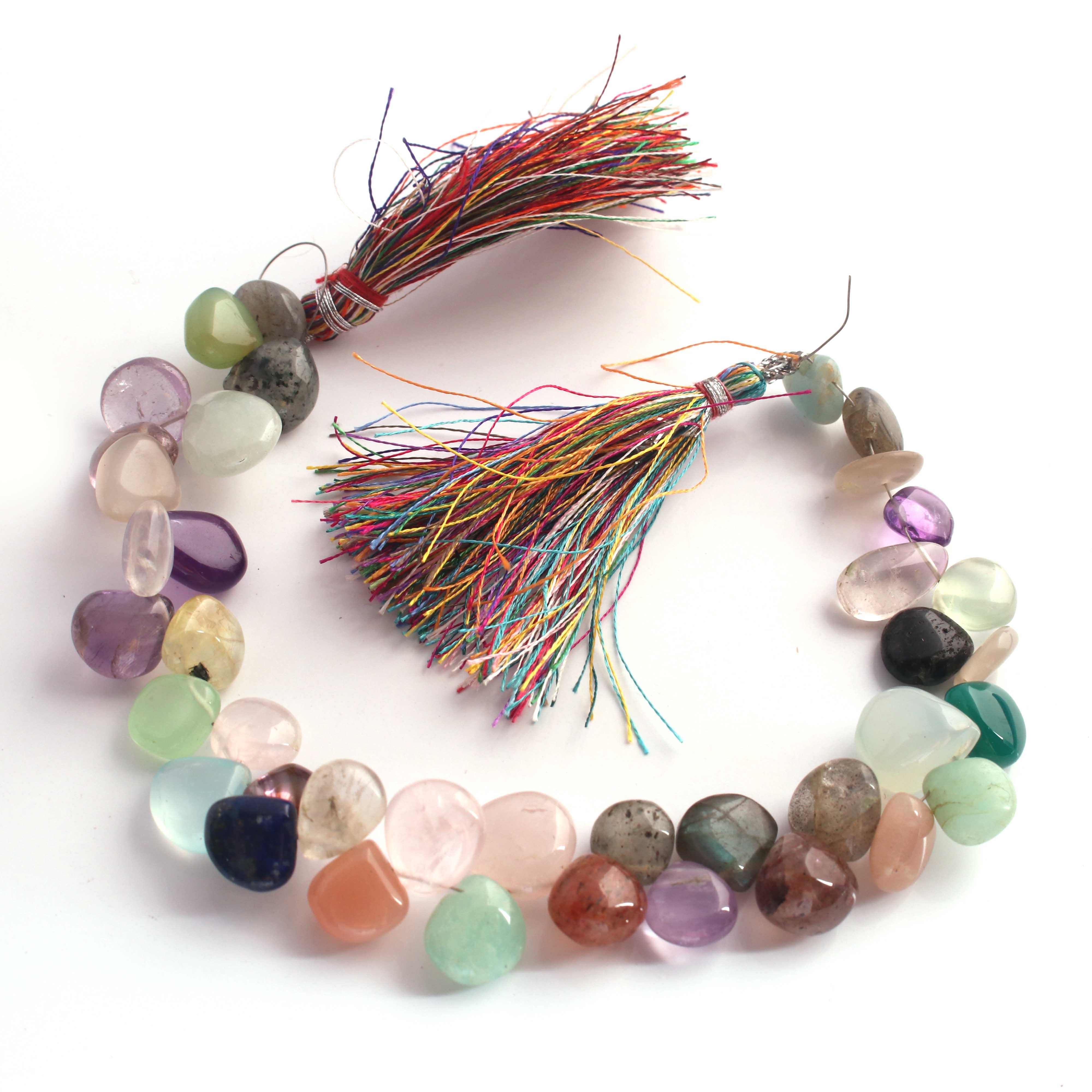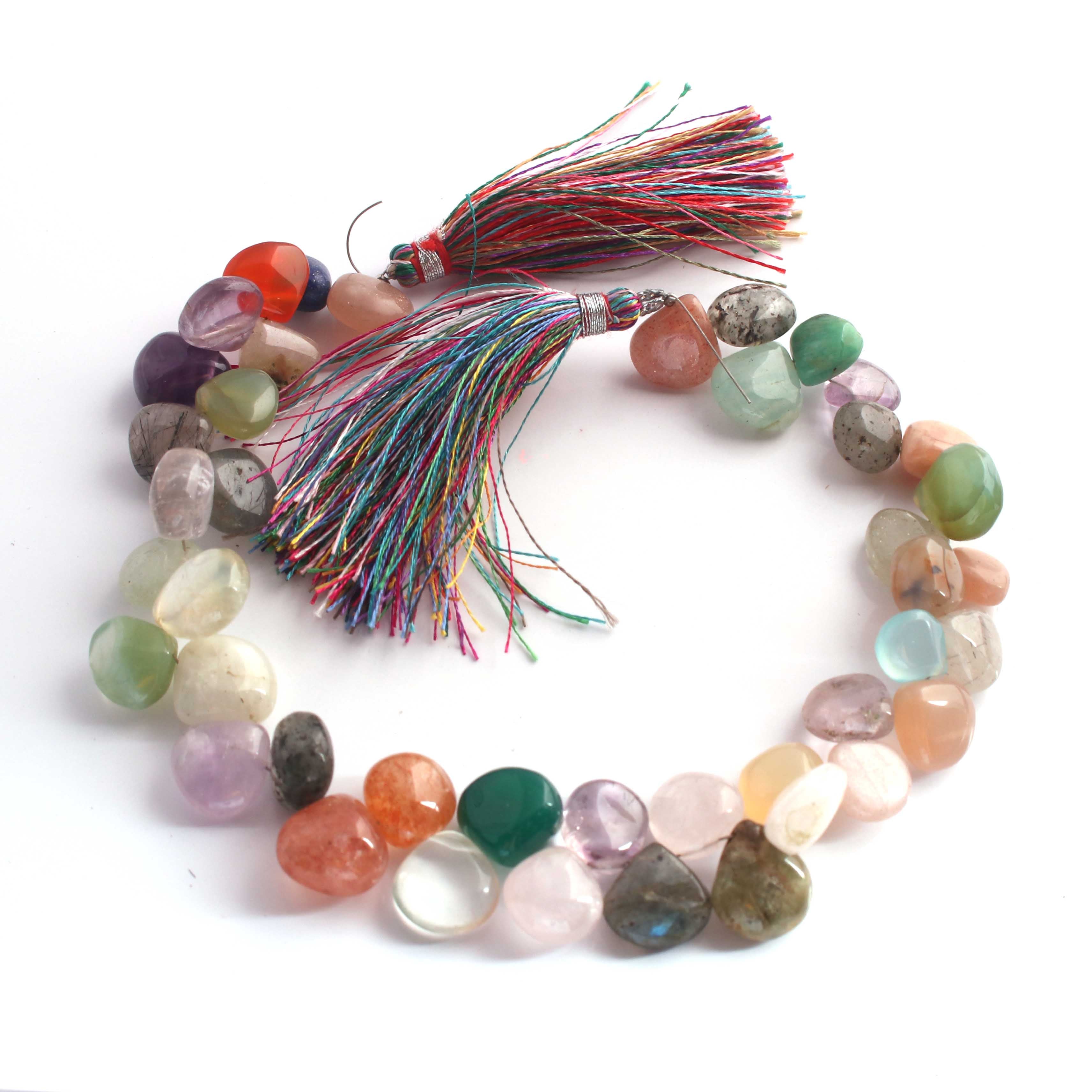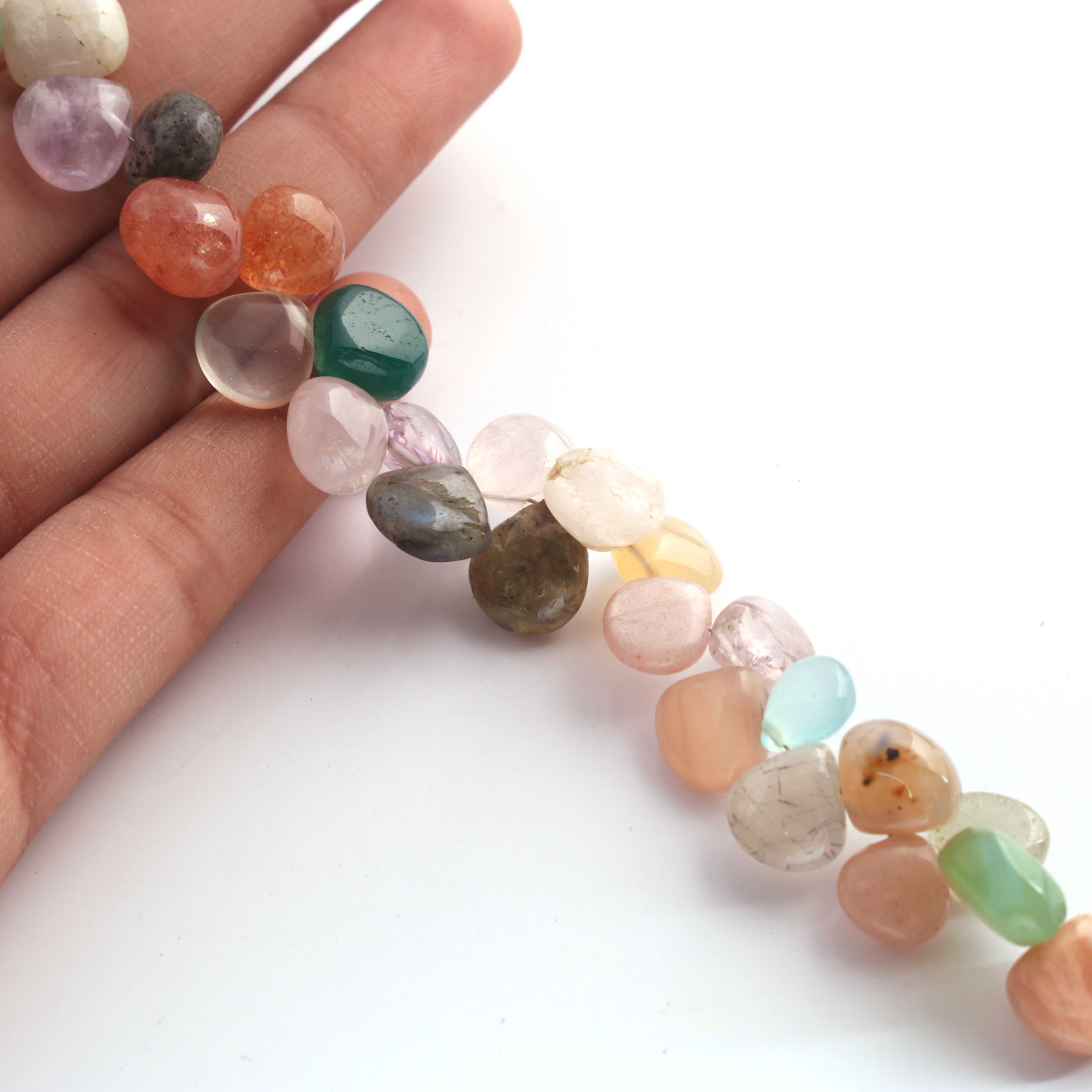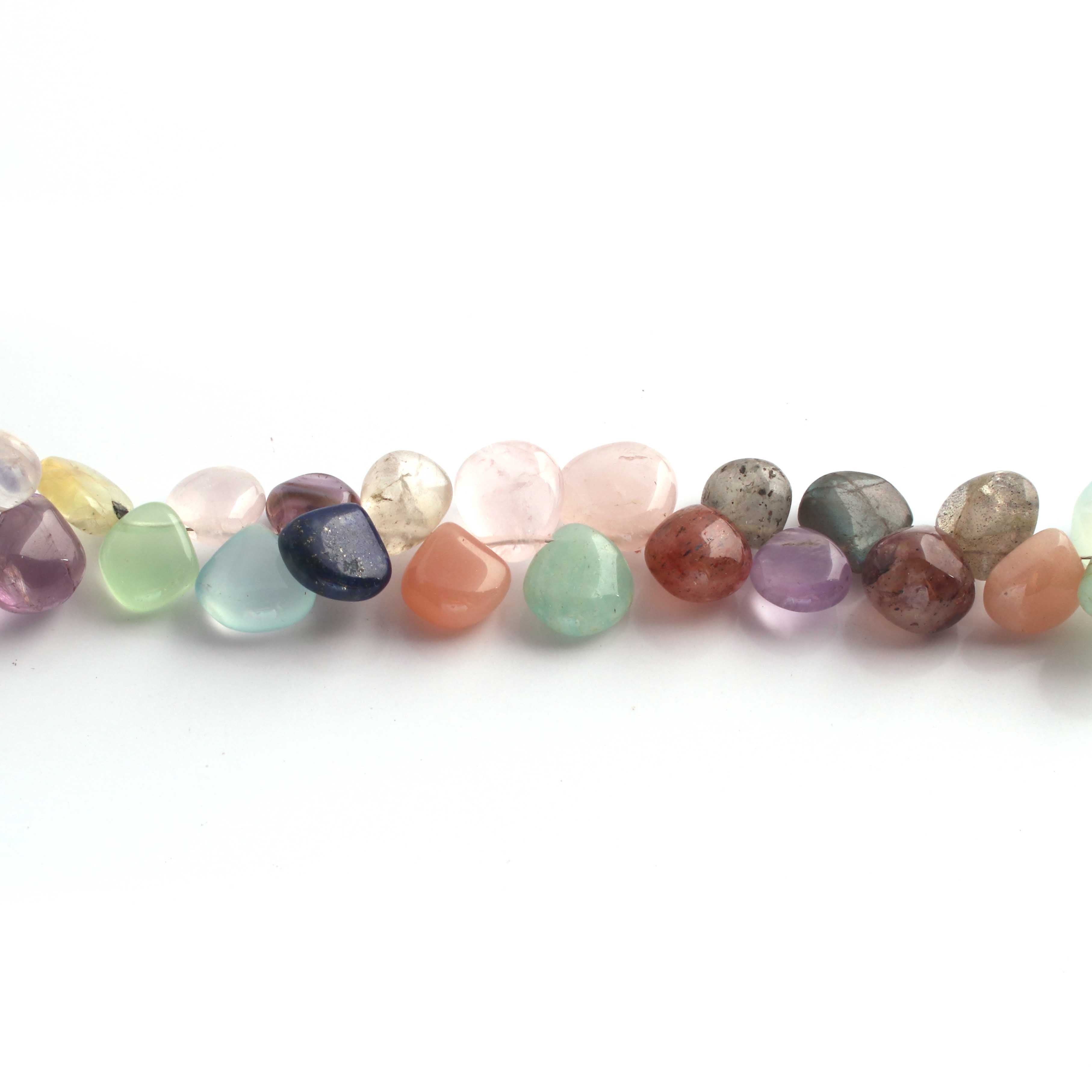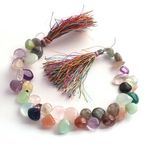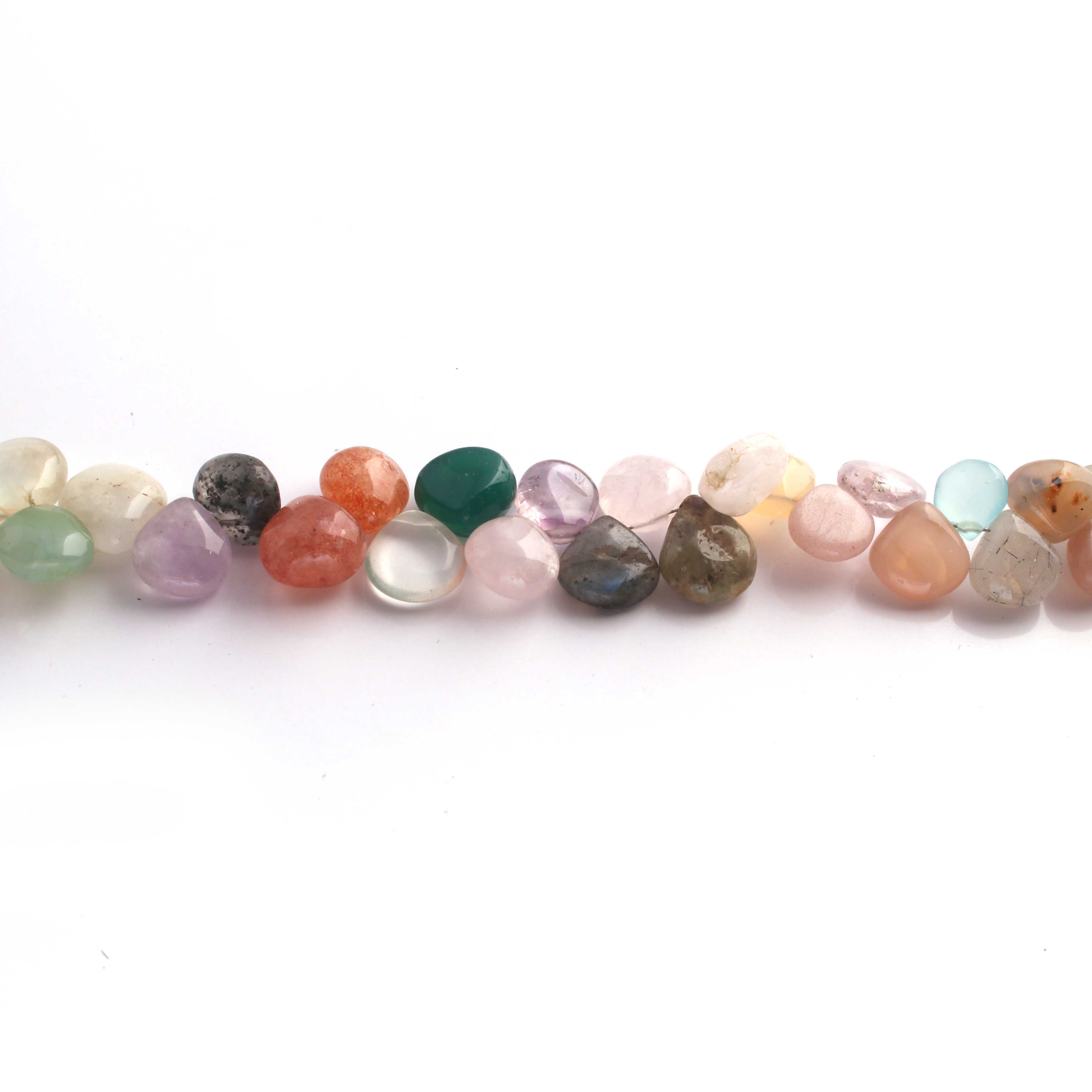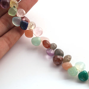 1 Long Strand Multi Stone Smooth Briolettes -Heart Shape Mix Stone Briolettes - 8mmx7mm-12mmx10mm-9 Inches BR2870