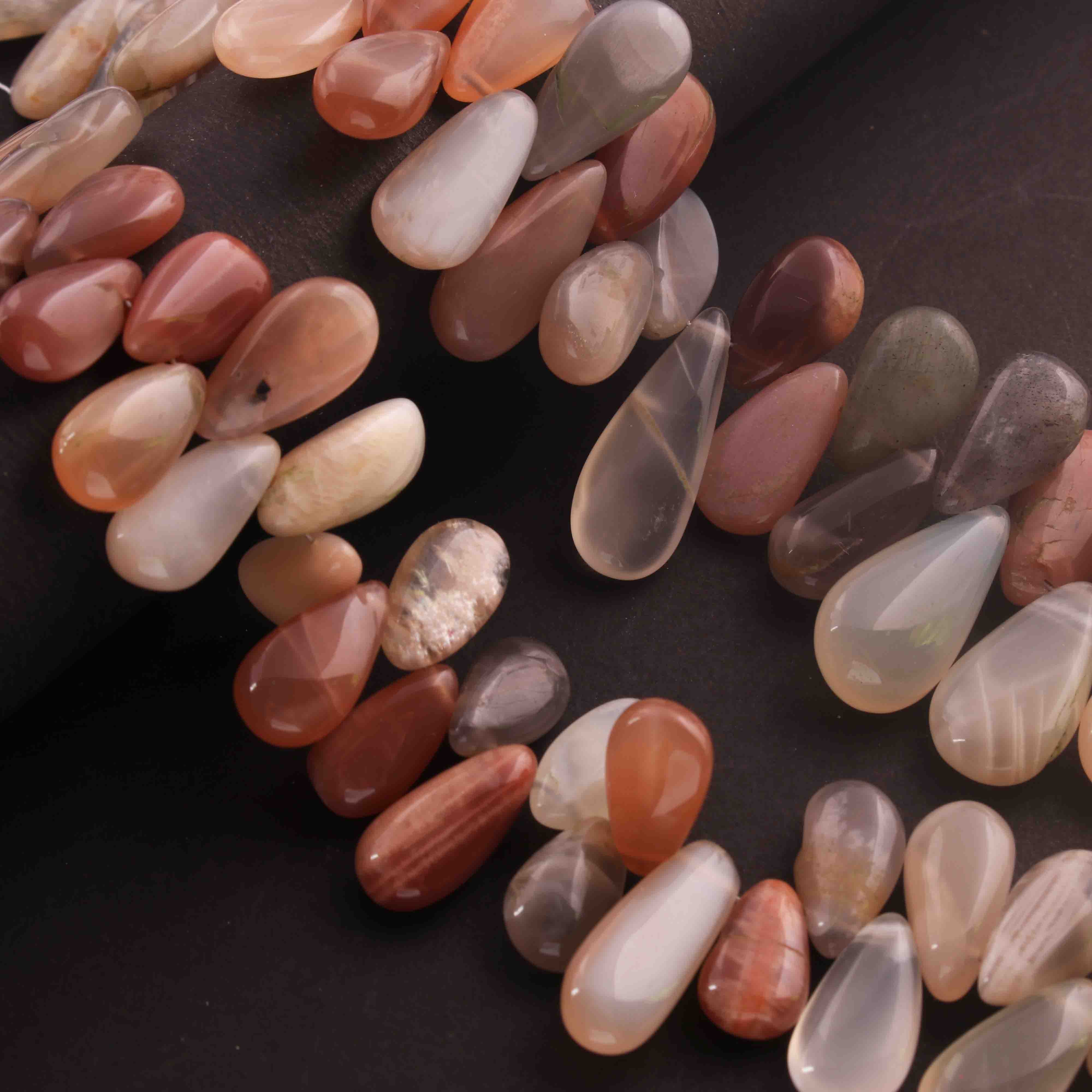 1 Long Strand Multi Stone Smooth Briolettes - Pear Shape Mix Stone Briolettes - 21mmx11mm-8mmx8mm - 7 Inches BR01703