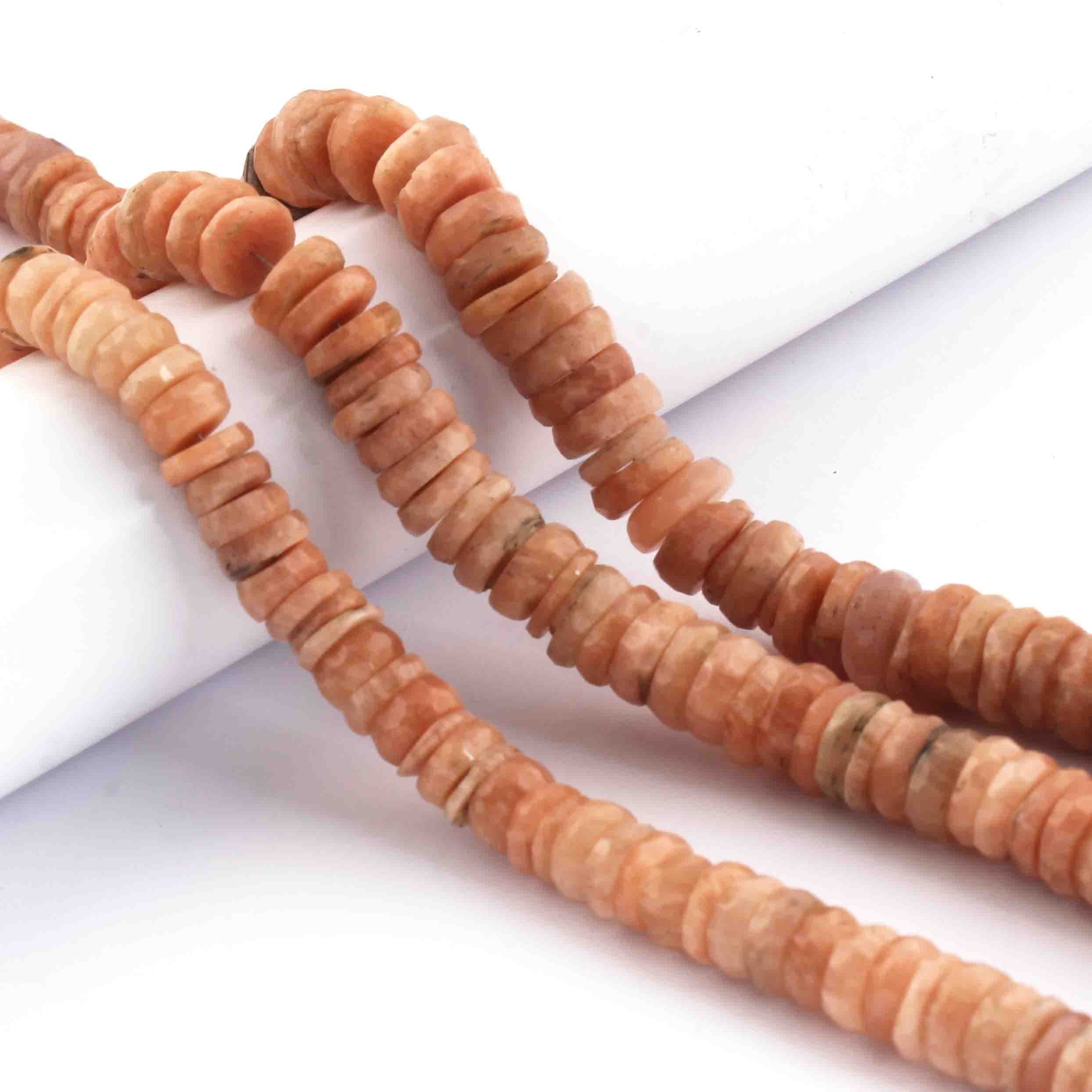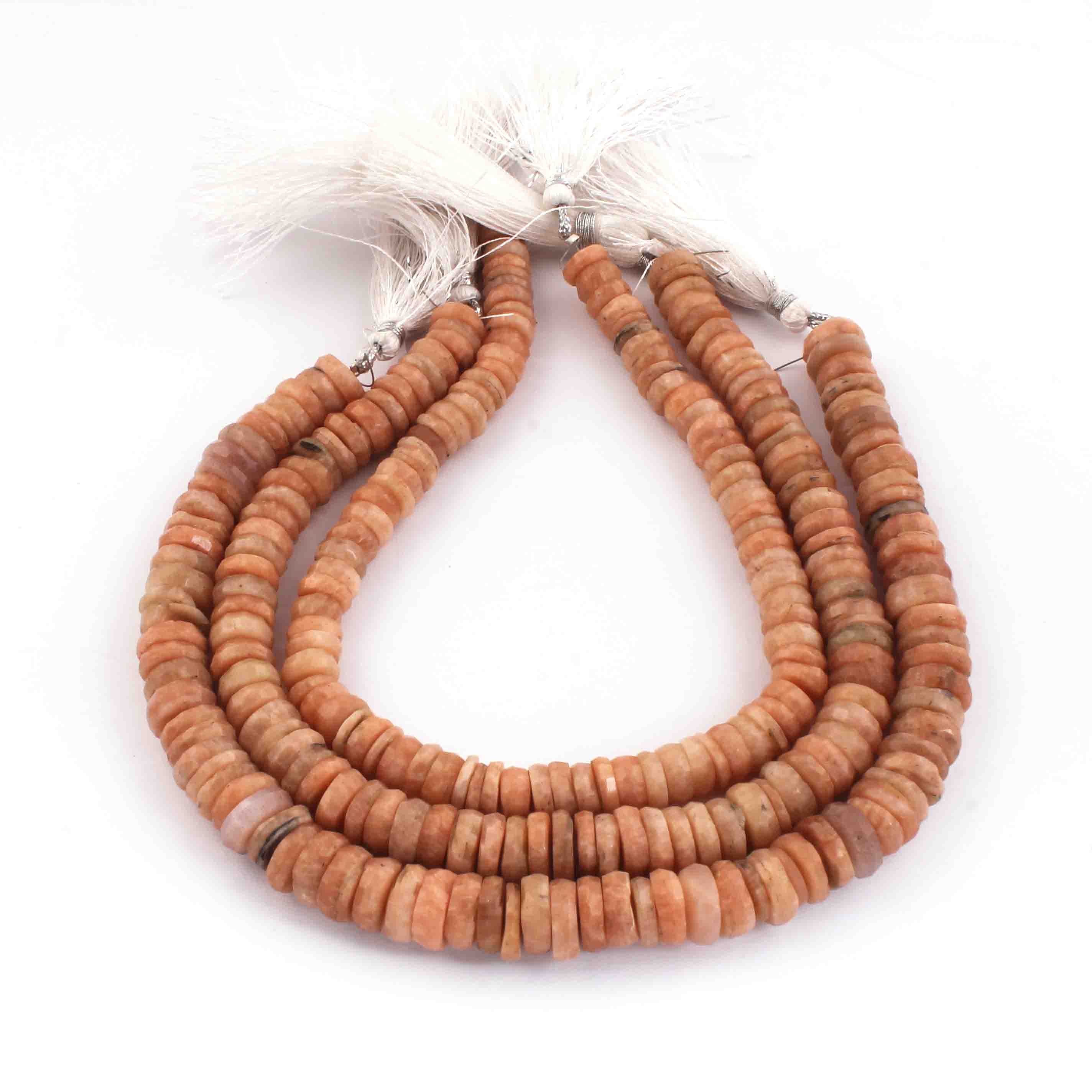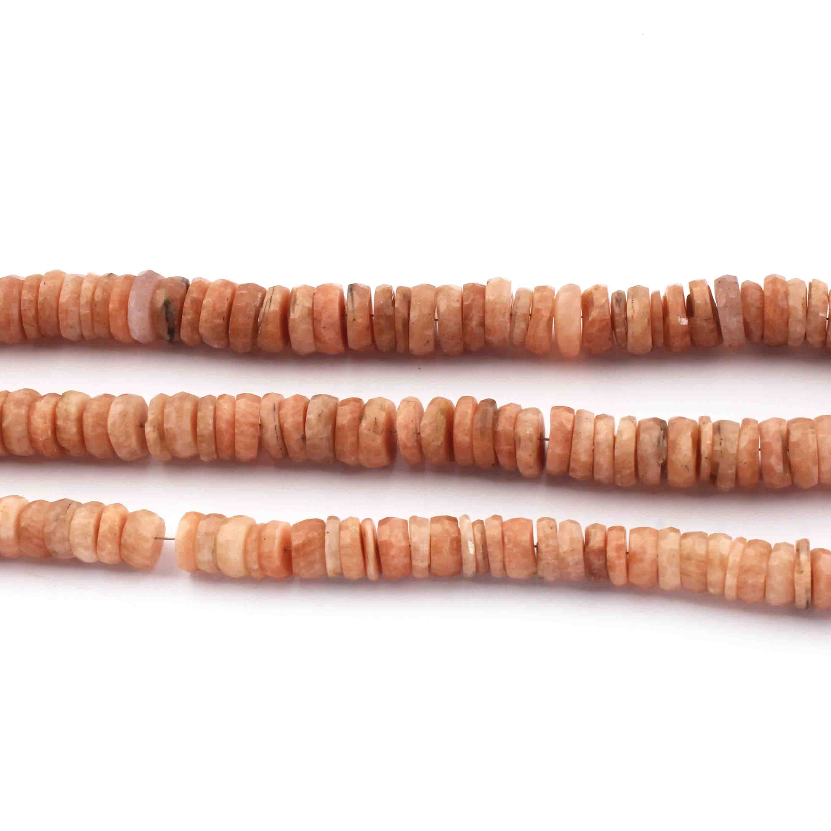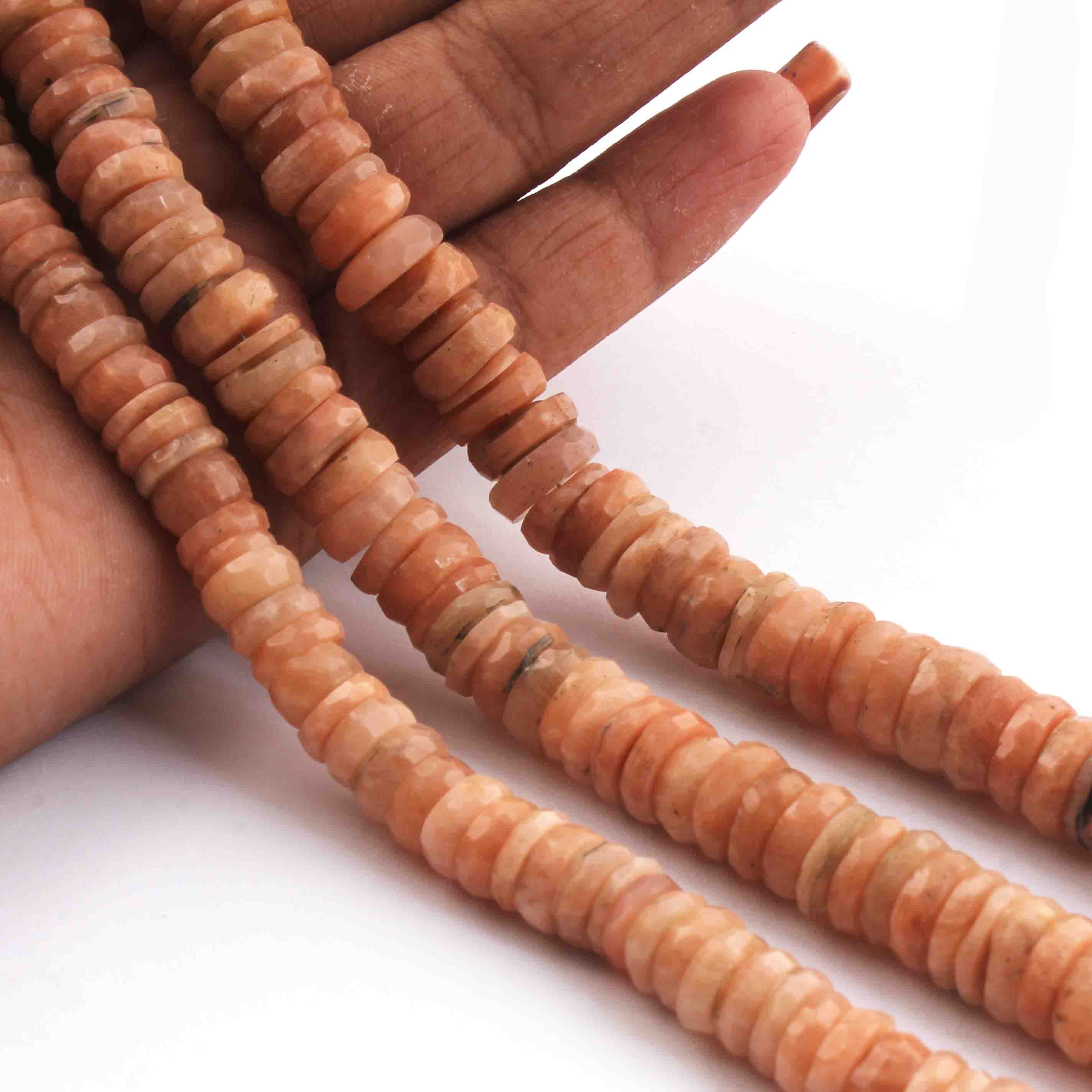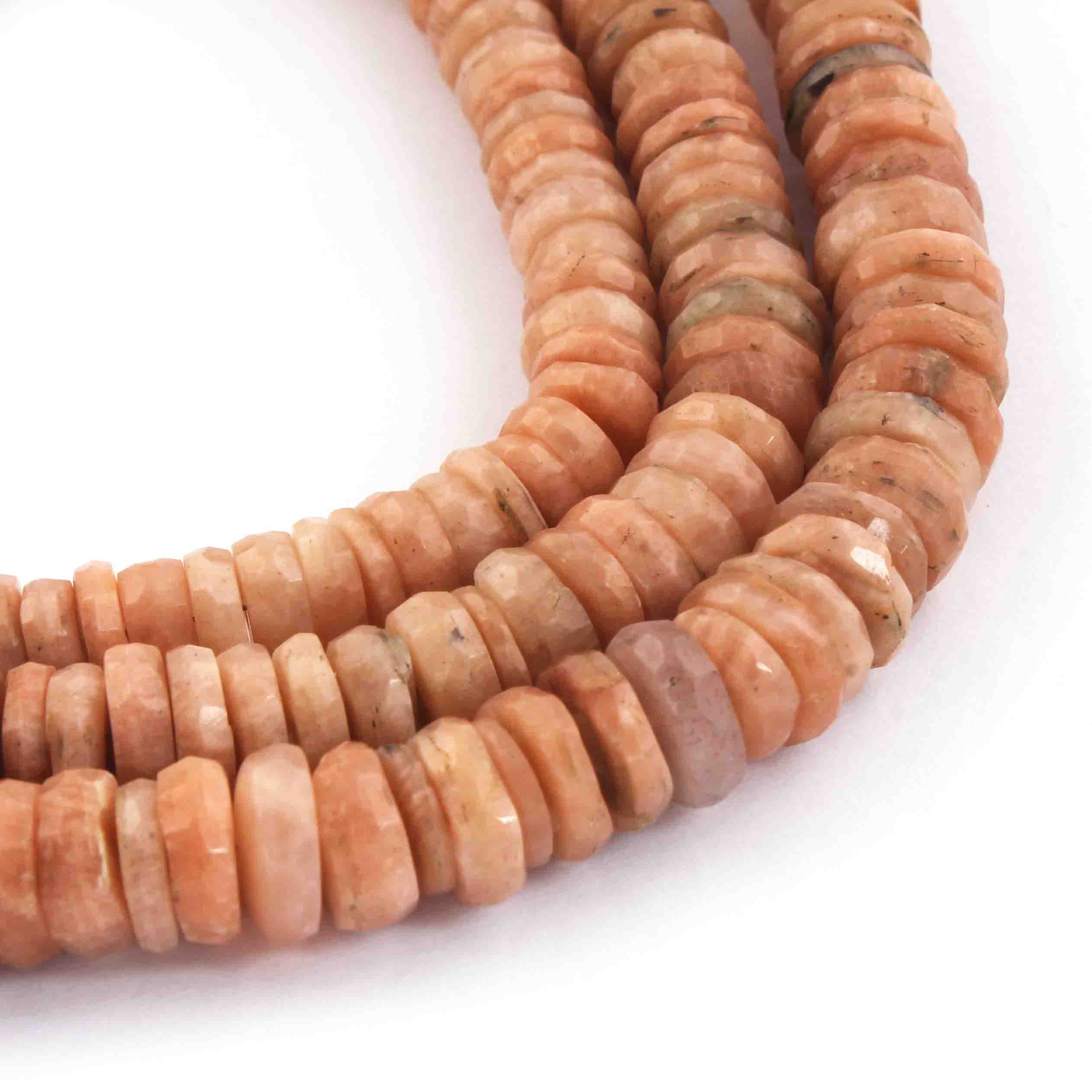 1 Long Strand Peach Moonstone Faceted Rondelles - Wheel Shape Rondelles - 10mm-8mm - 10 Inches BR2964