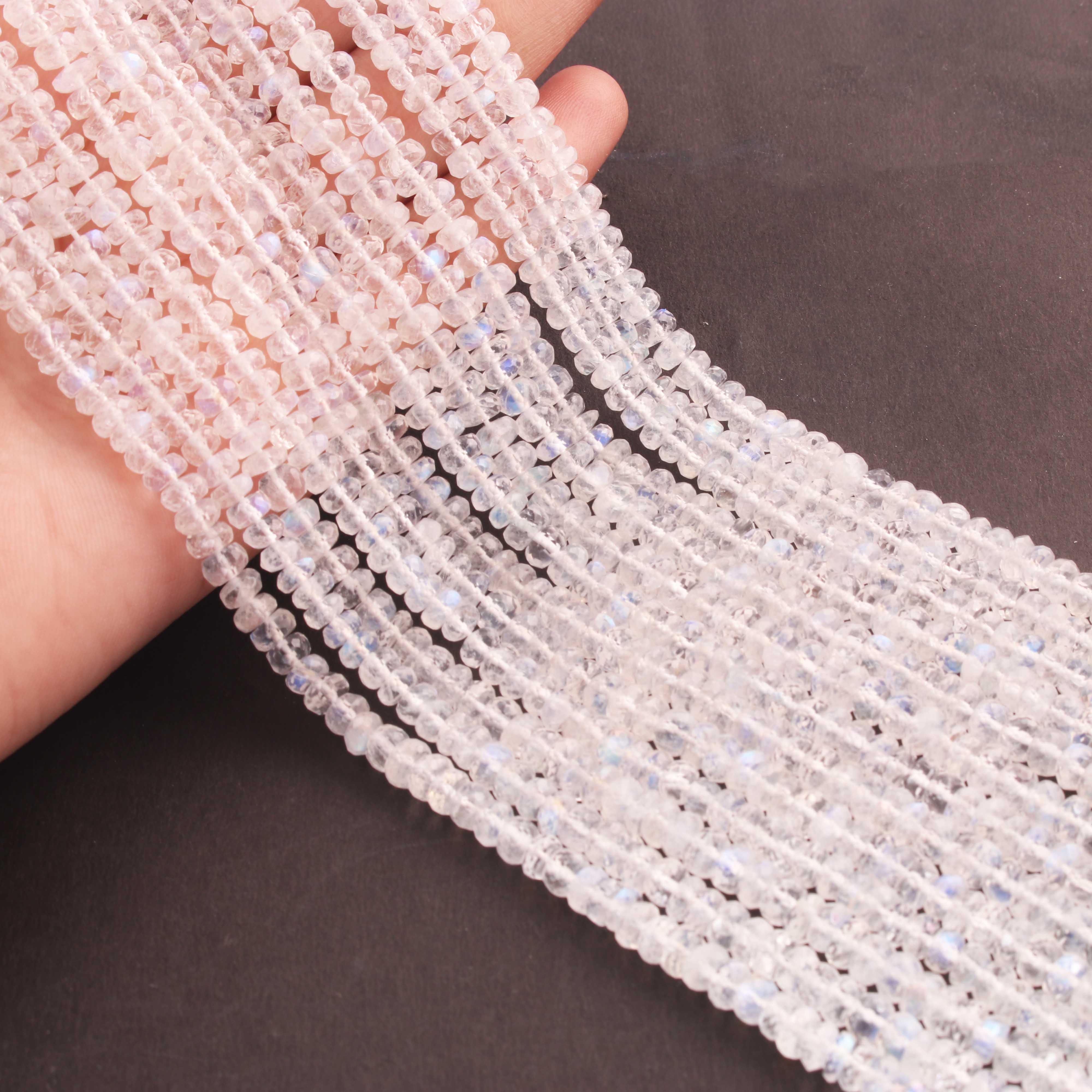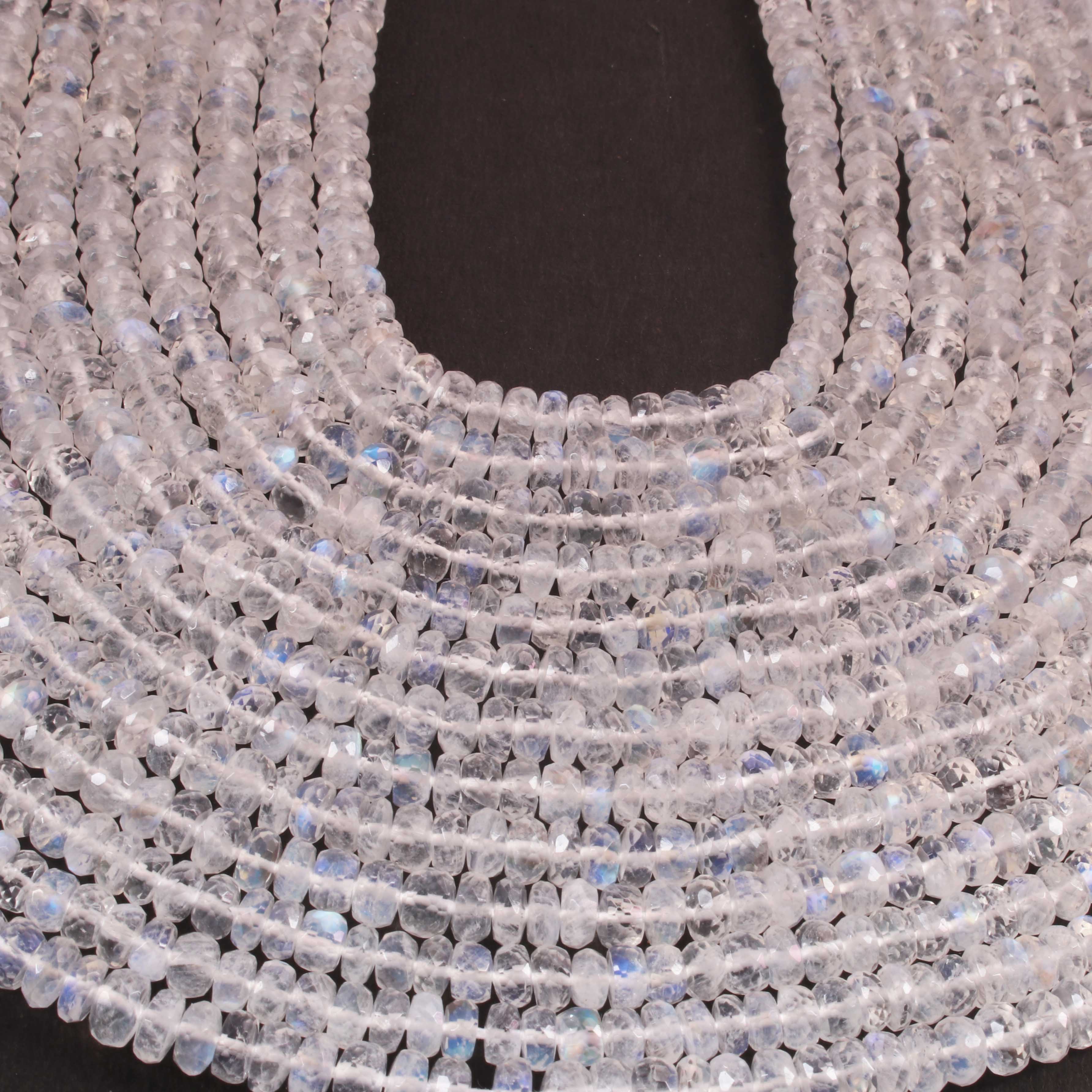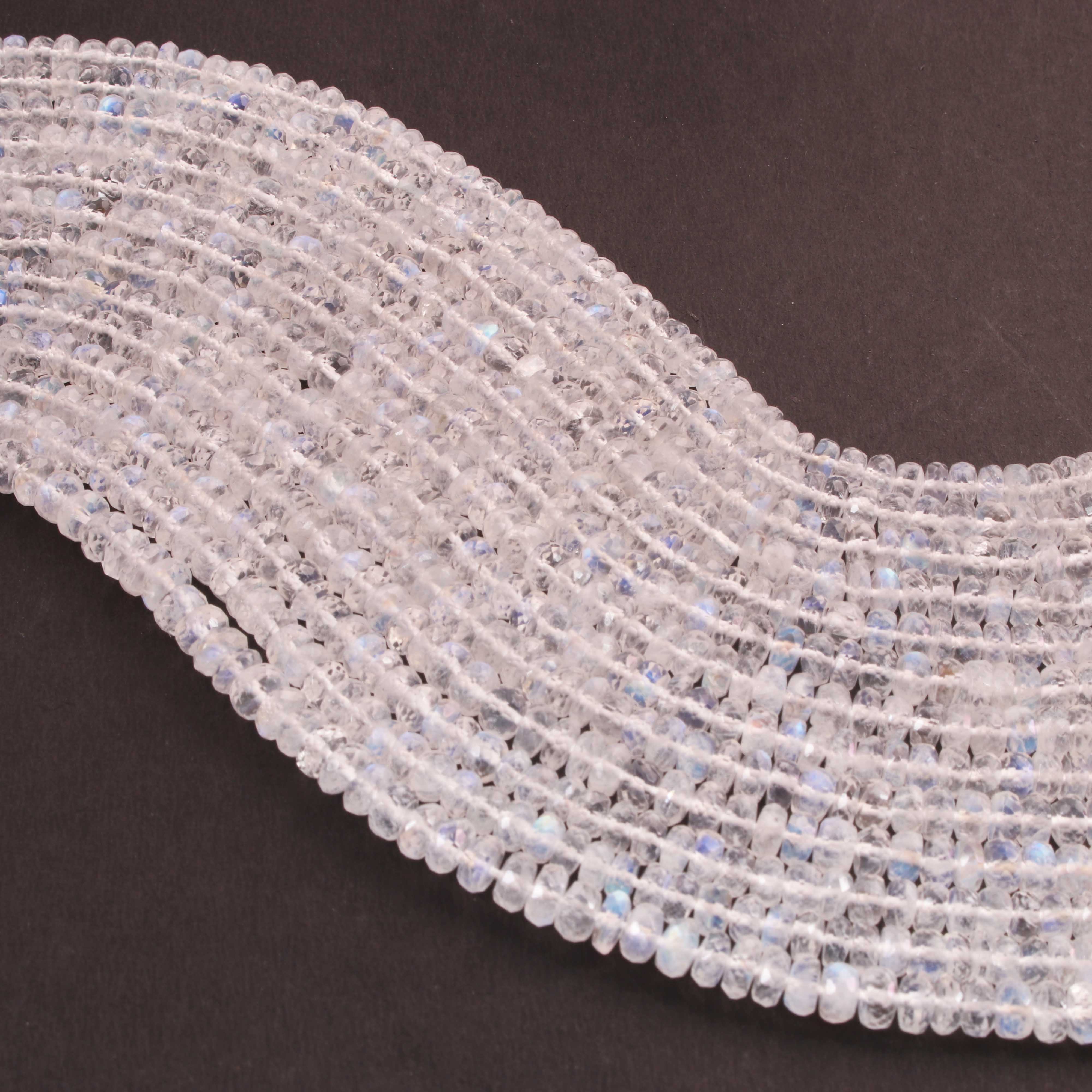 1 Long Strand White Rainbow Moonstone faceted Rondelles - Rondelle Beads5 mm 14.5 Inches BR02630