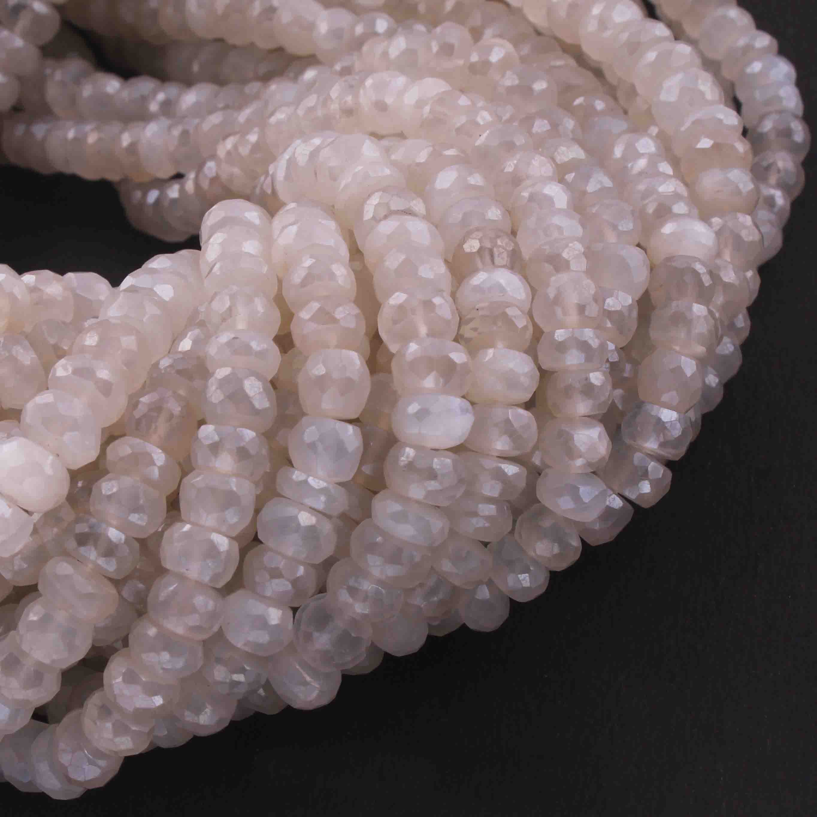1 Long Strand White Silverite Faceted Rondelles -Round Shape Roundels 6mm-7mm 14 Inches BR0681