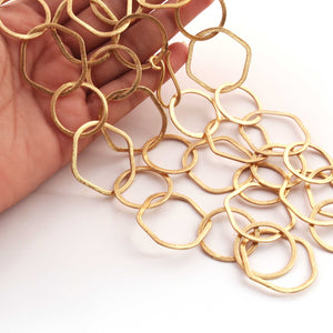 1 Necklace Top Quality 3 Feet Each 24k Gold Plated Hexagon Chain With Round Circle Copper Link Chain - 35mmx32mm, 36 inch GPC327