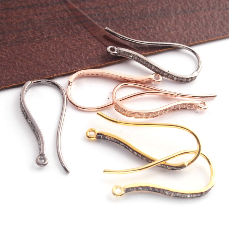1 Pair Pave Diamond Hoop Earring - 925 Sterling Silver, Vermeil, Rose Gold Vermeil Fish Hoop Earring 25mmx12mm PDC207