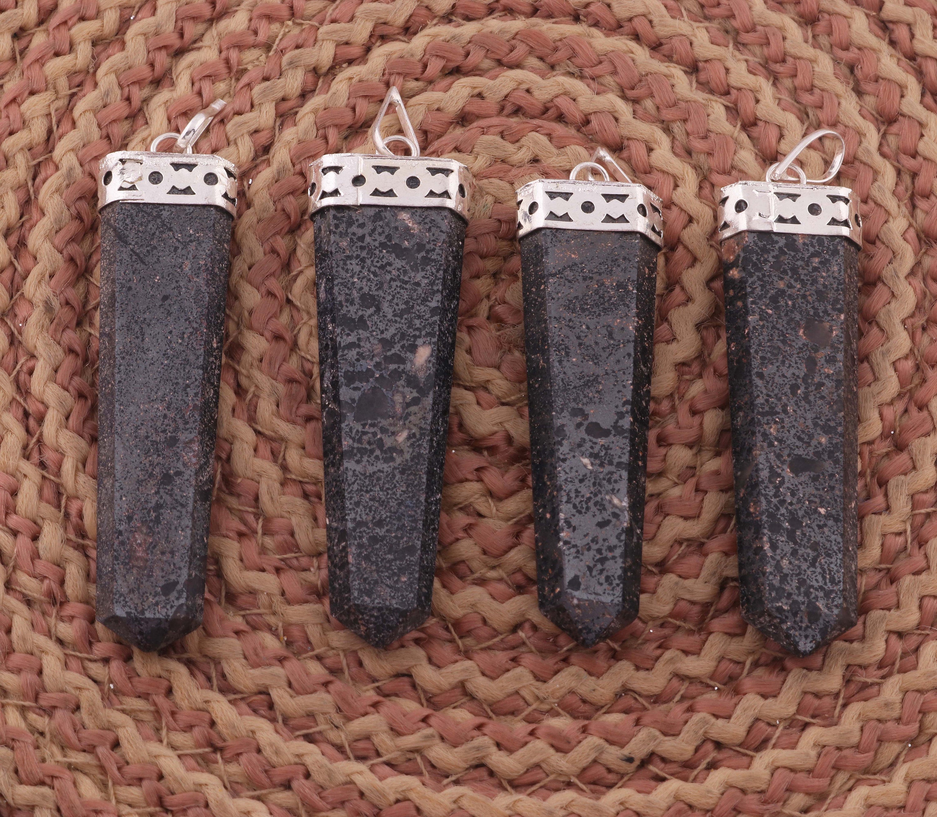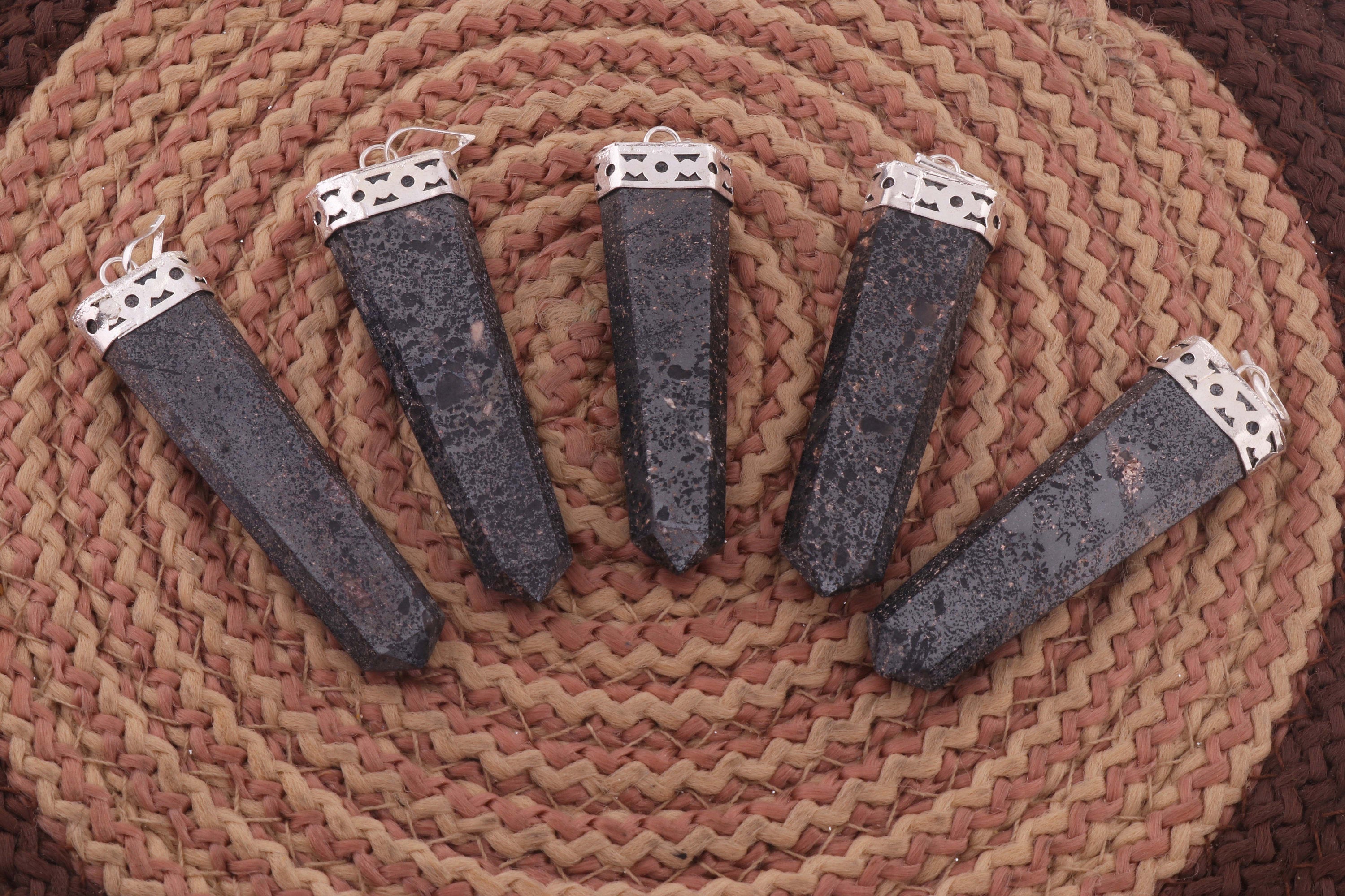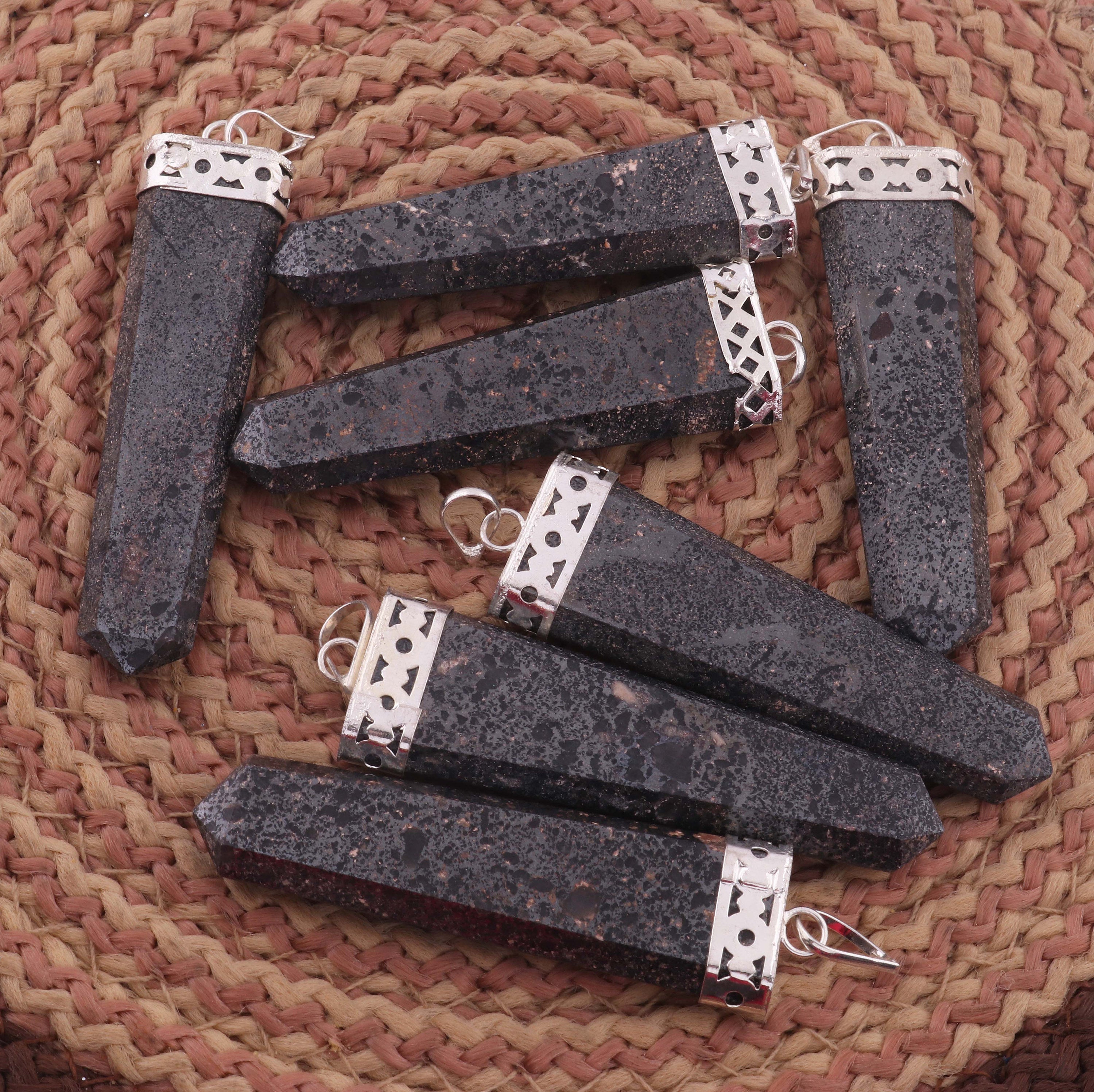 1 PC Andesite Healing stone Flat Pencil Cap Gemstone Pendant, Bonded Pencil Pendant Healing Stones Silver Plated Cap Pencil Pendant HS138