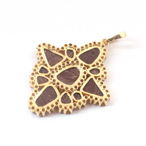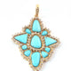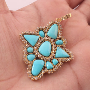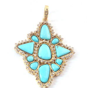 1 Pc Antique Finish Double Cut Diamond With Turquoise Designer Pendant - Yellow Gold - Necklace Pendant 49mmx39mm PD1713