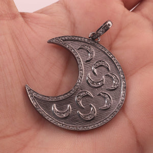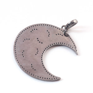 1 Pc Antique Finish Pave Diamond Crescent Moon With Star Pendant - 925 Sterling Vermeil - Necklace Pendant 43mmx20mm PD1544
