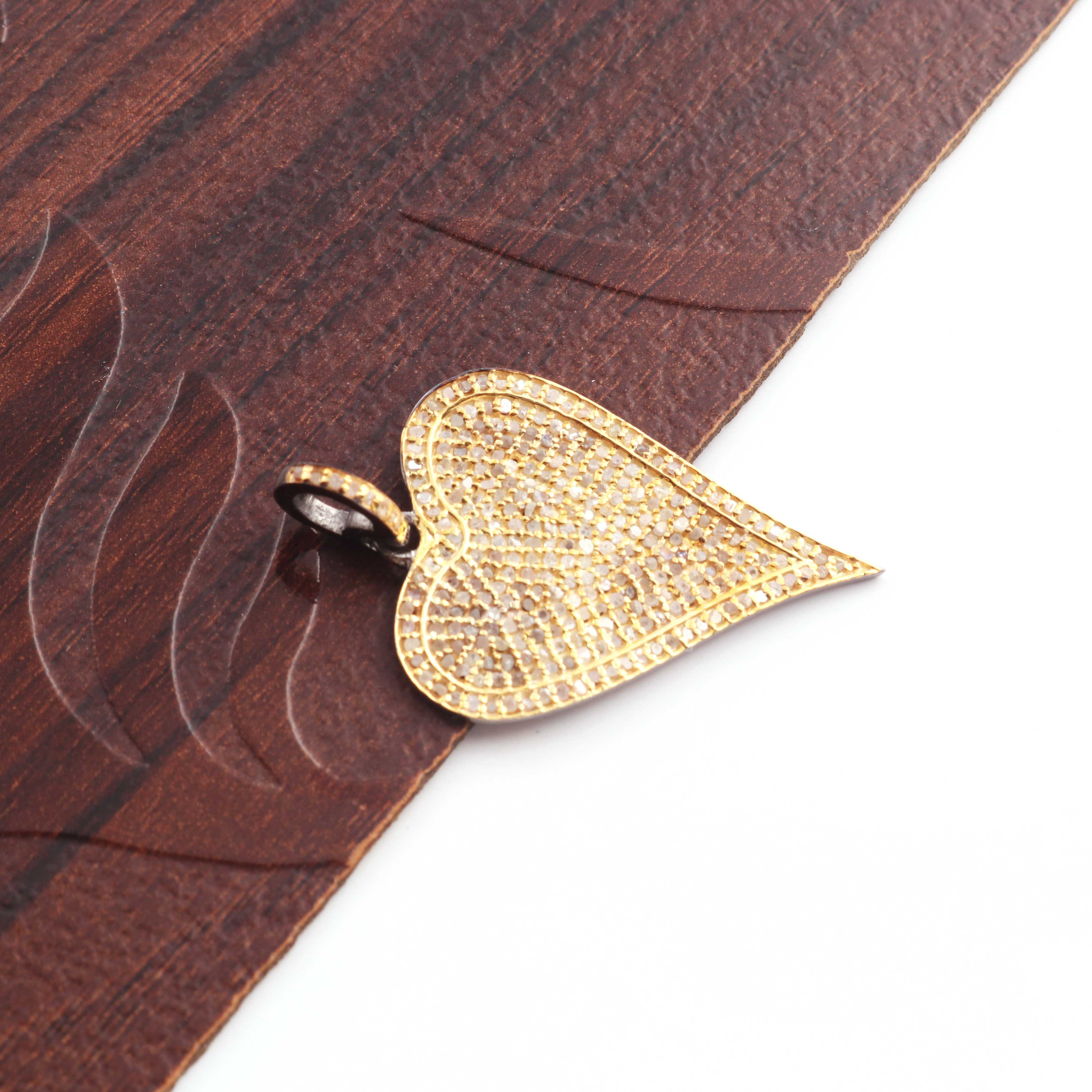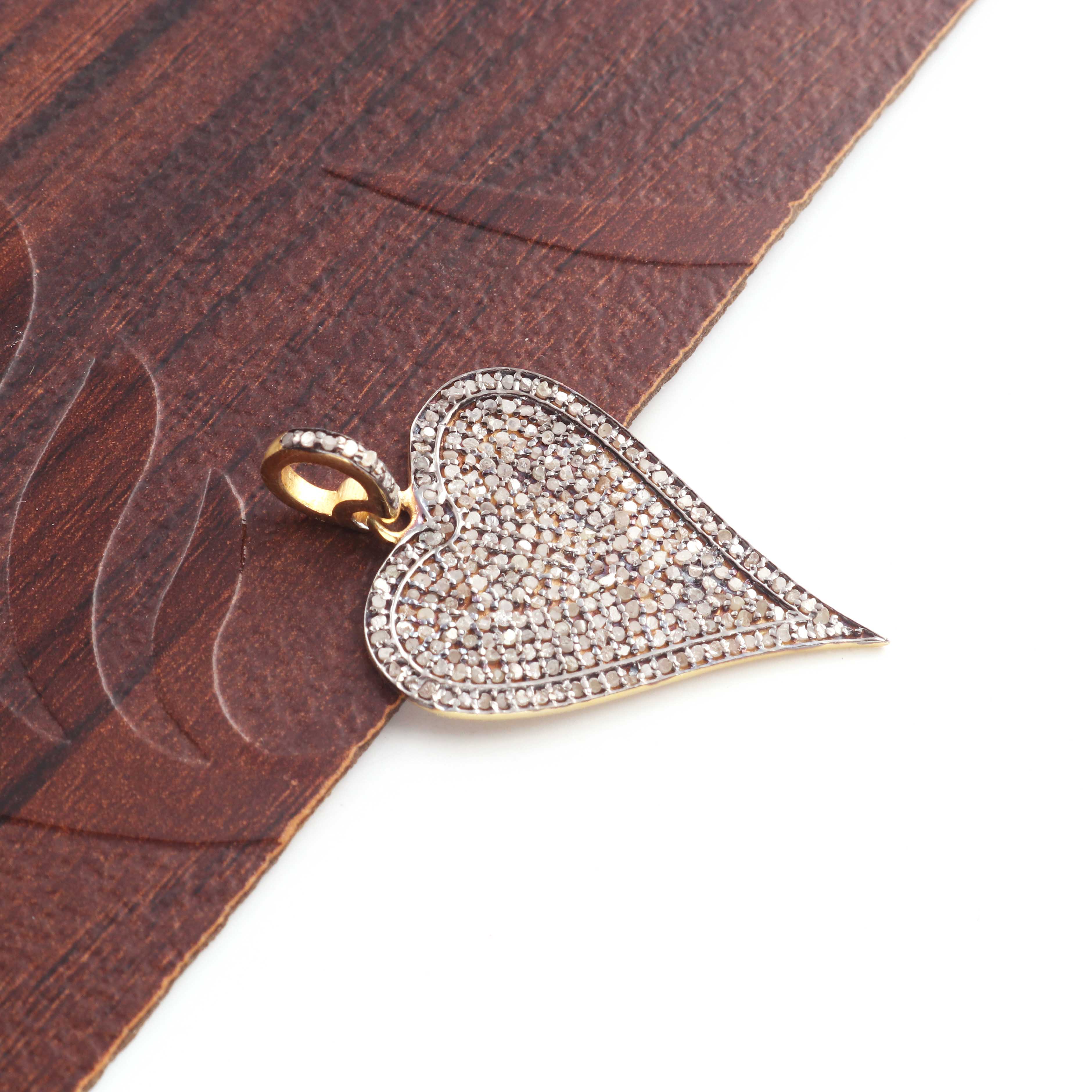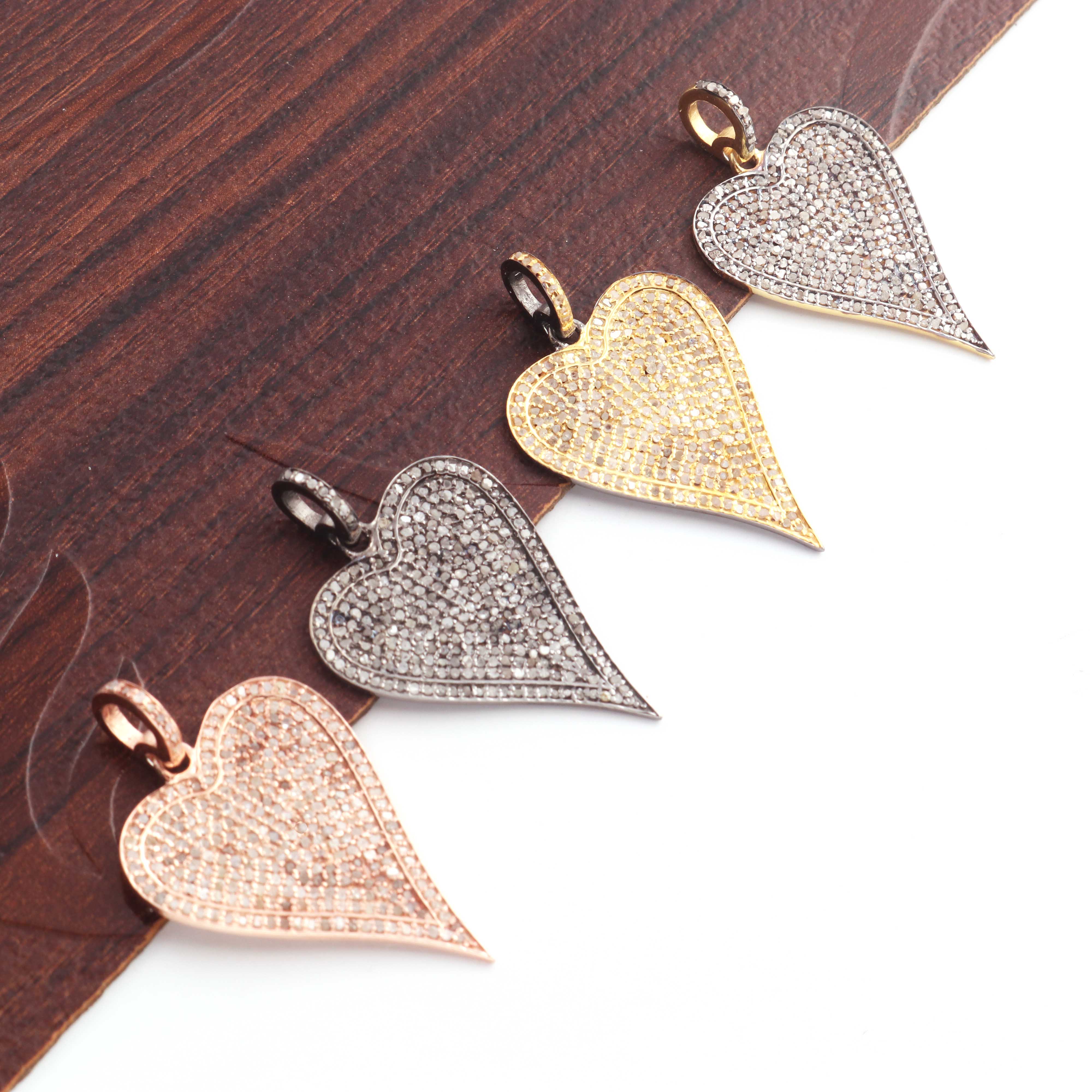 1 PC Antique Finish Pave Diamond Designer Heart Pendant- 925 Sterling Silver & Vermeil, Rose & Yellow gold vermeil-30mmx20mm PD1869