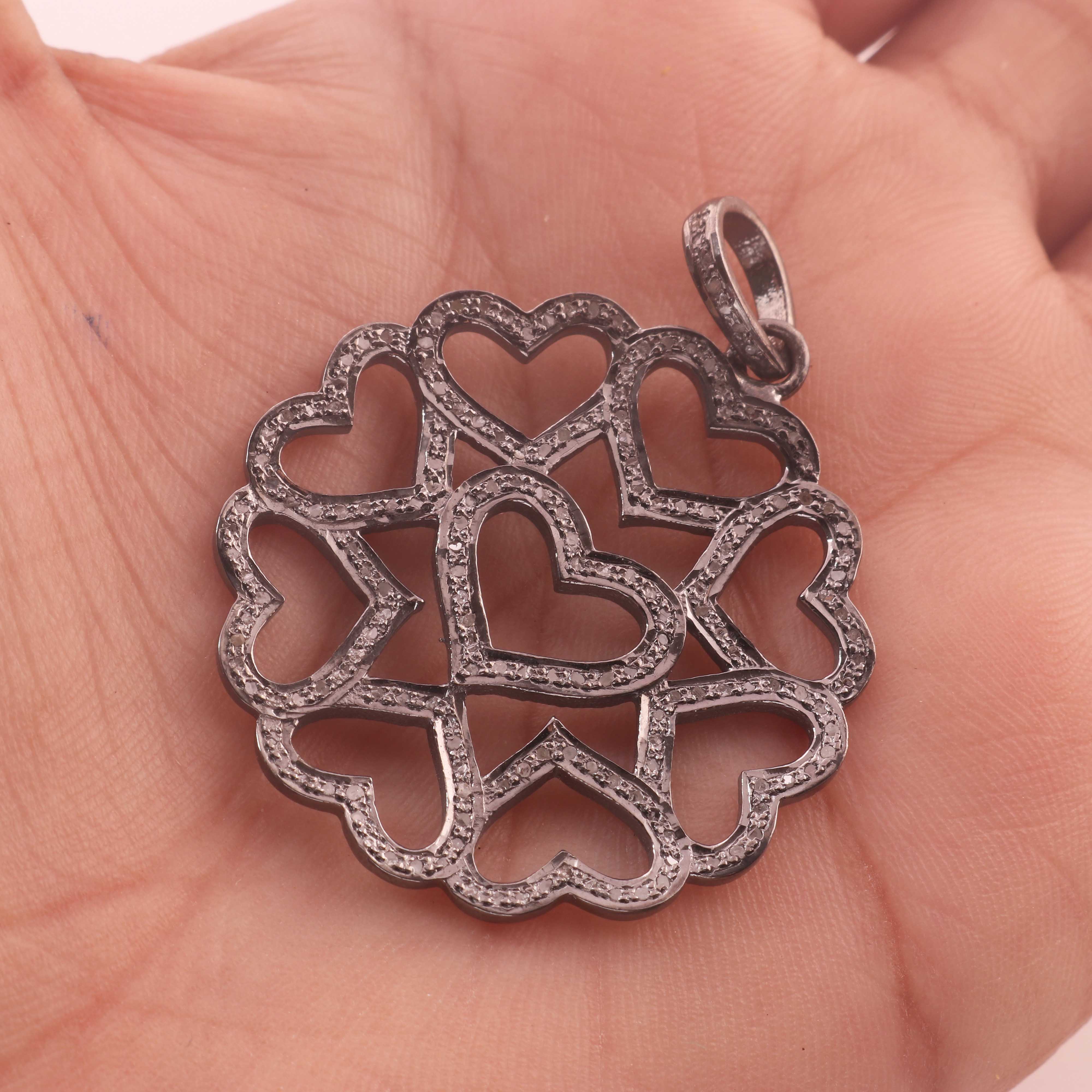 1 Pc Antique Finish Pave Diamond Heart Pendant - 925 Sterling Silver- Love Necklace Pendant 41mmx37mm PD1434