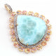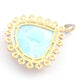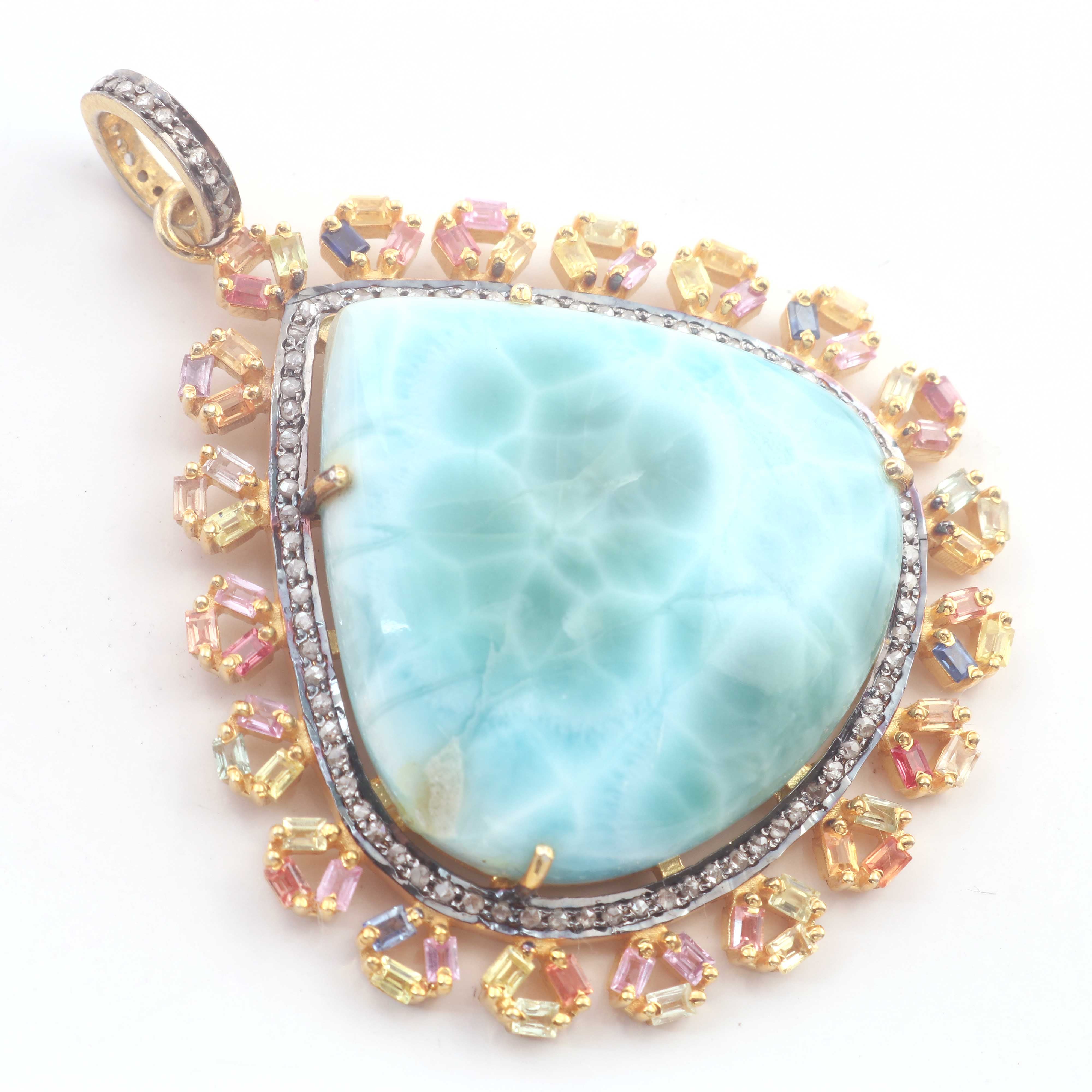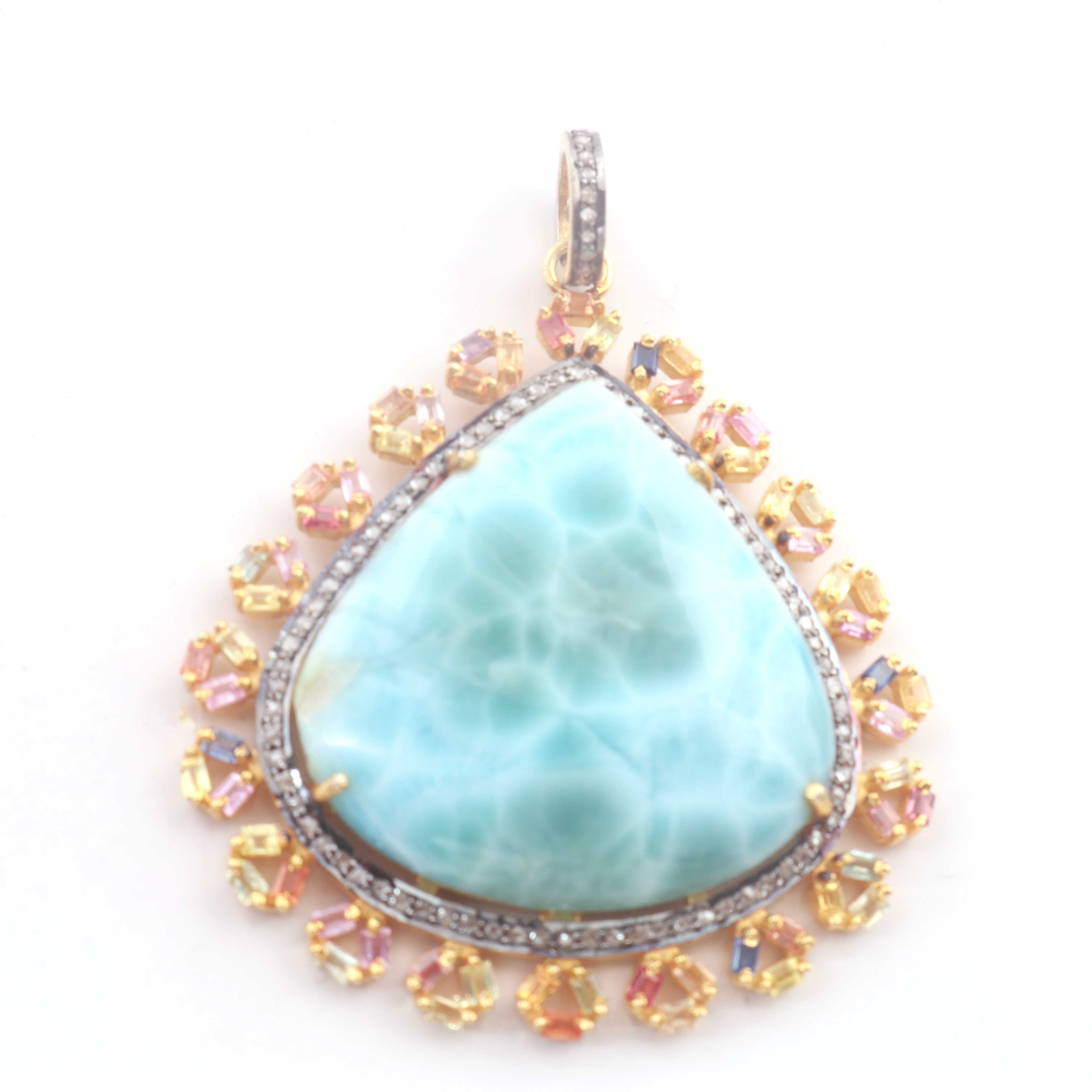 1 Pc Antique Finish Pave Diamond Larimar With Multi Sapphire Pendant - Yellow Gold Vermeil - Necklace Pendant 48mmx43mm PD1200