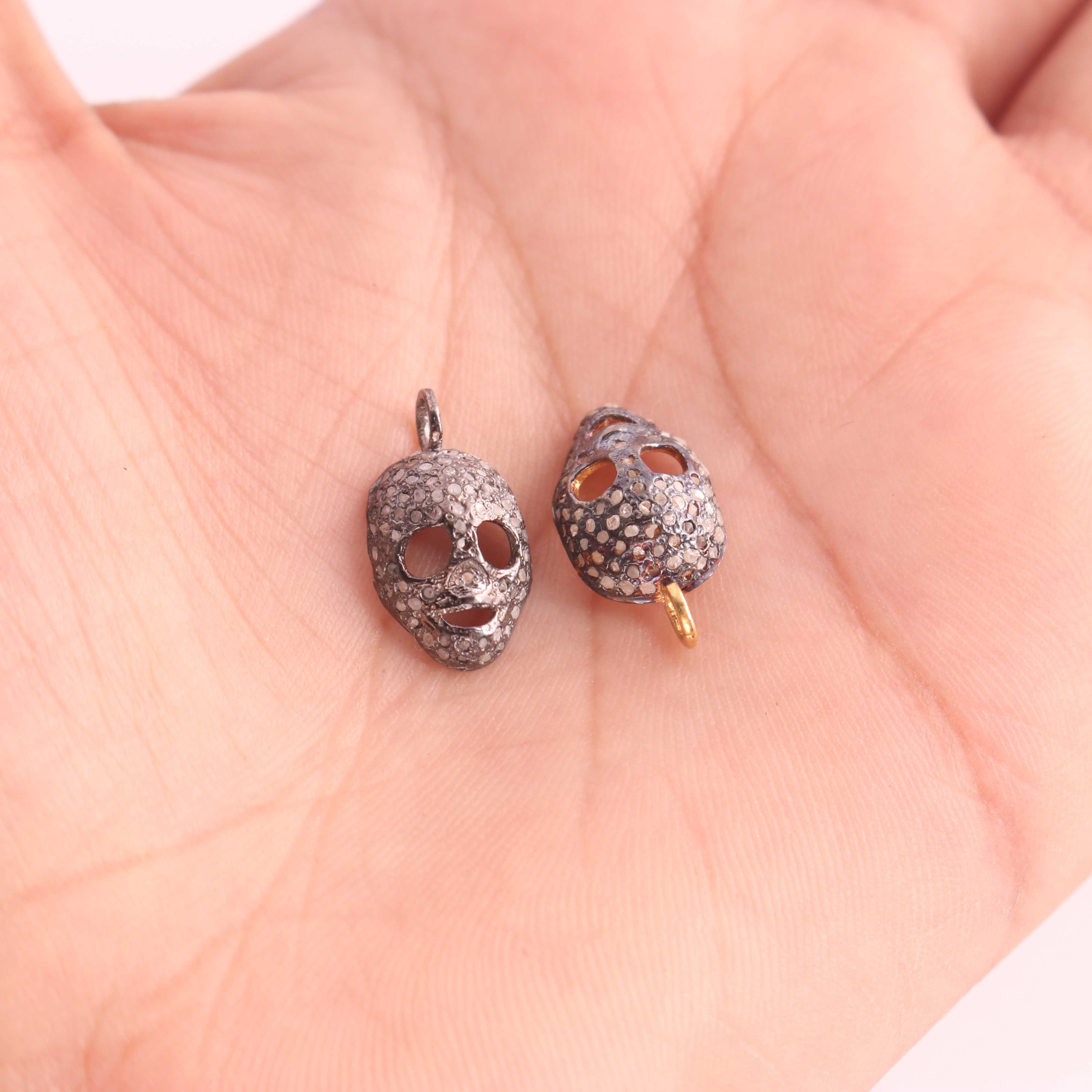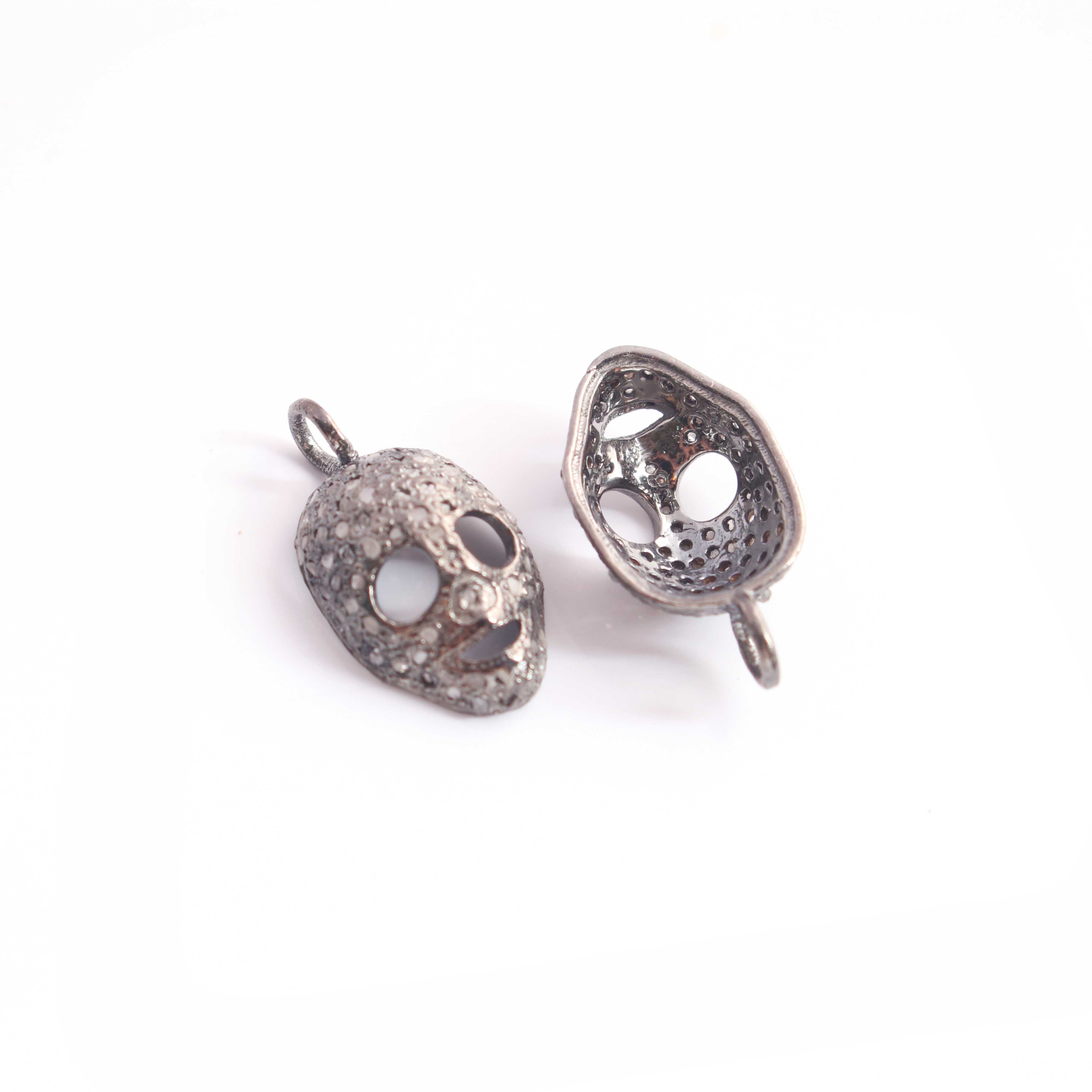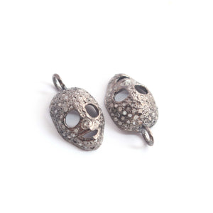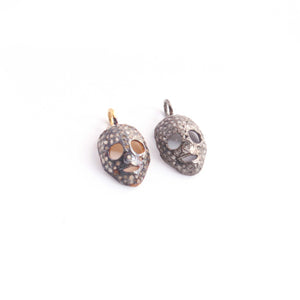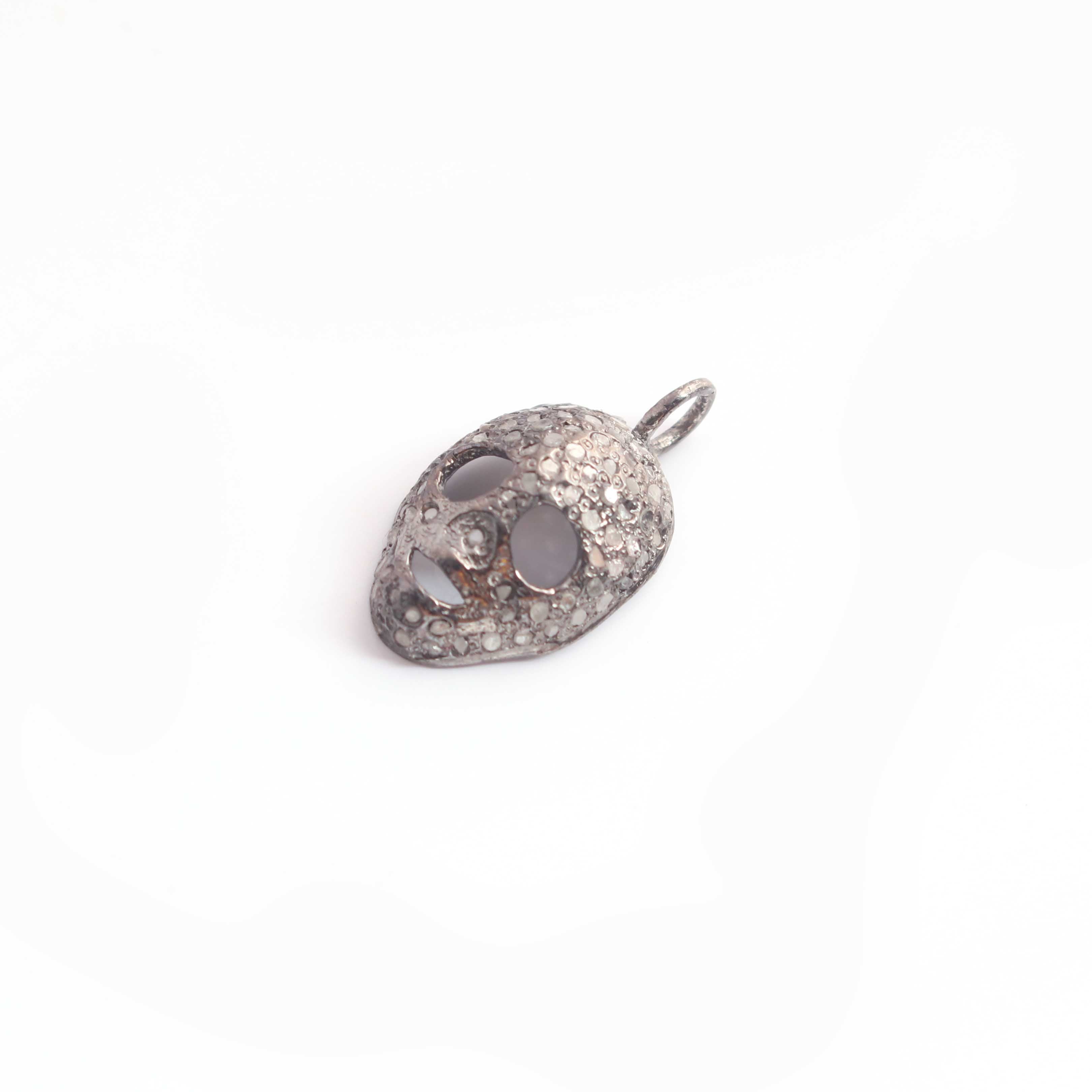 Listing Is For 1 Pc Antique Finish Pave Diamond Skull Charm 925 Sterling Silver Pendant - PDC508