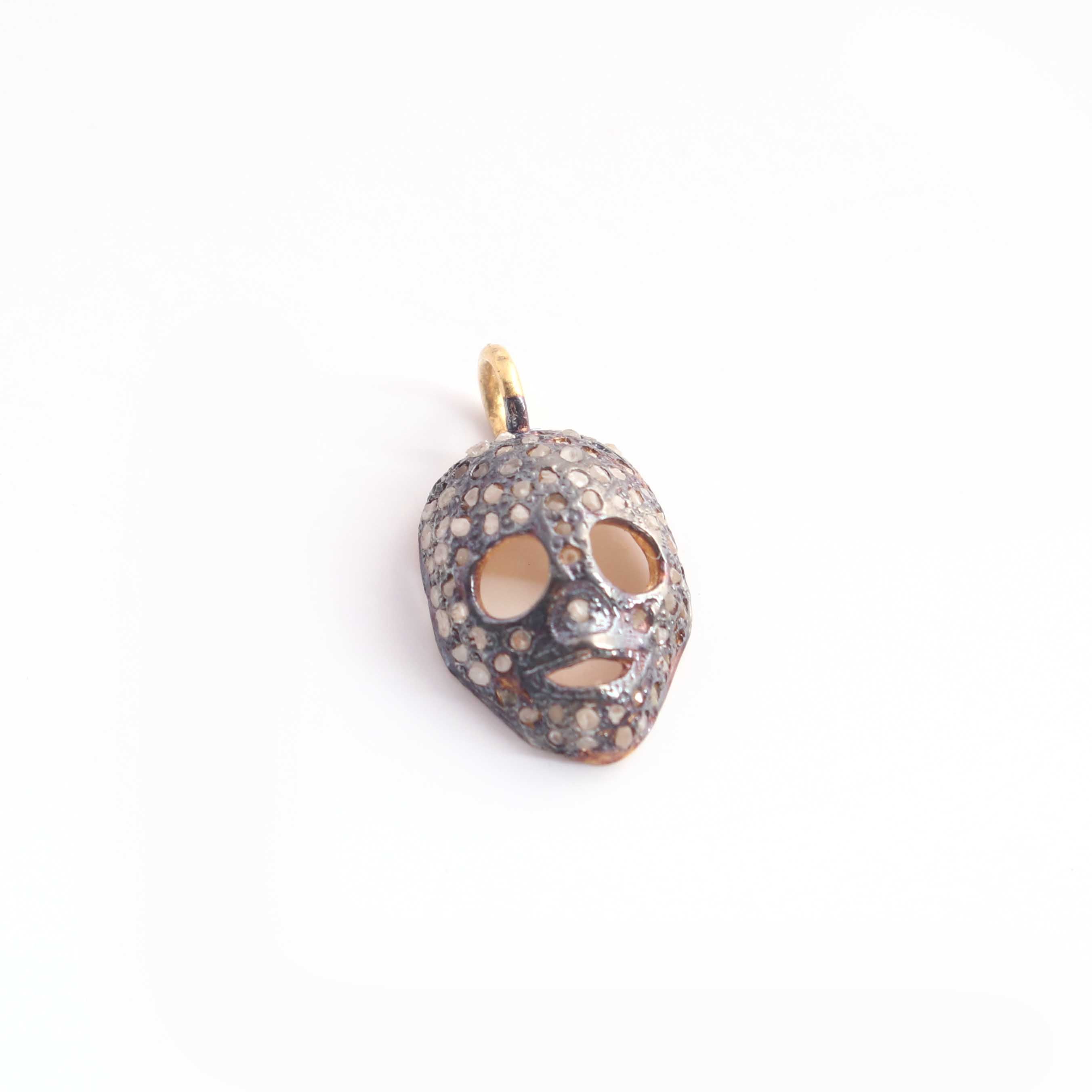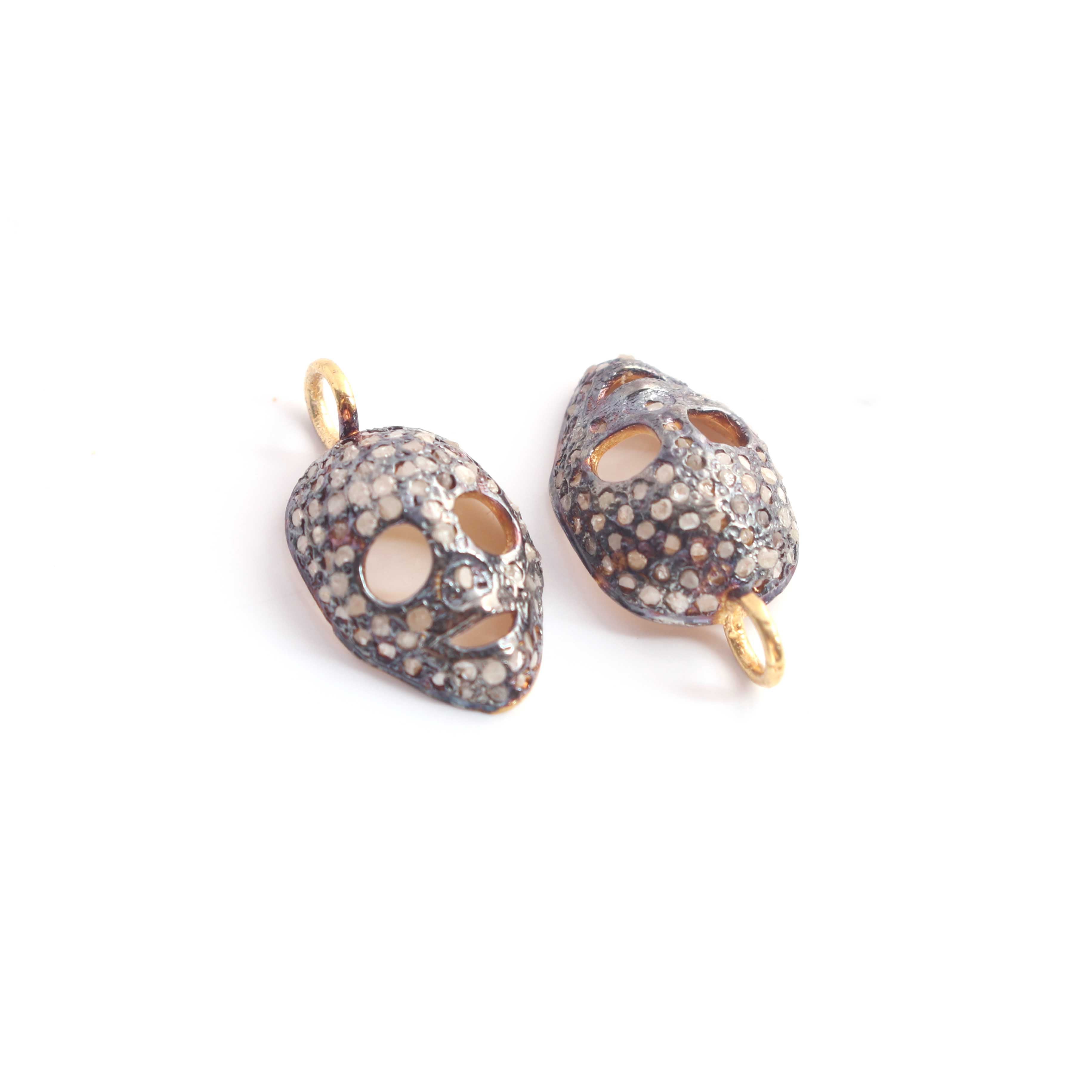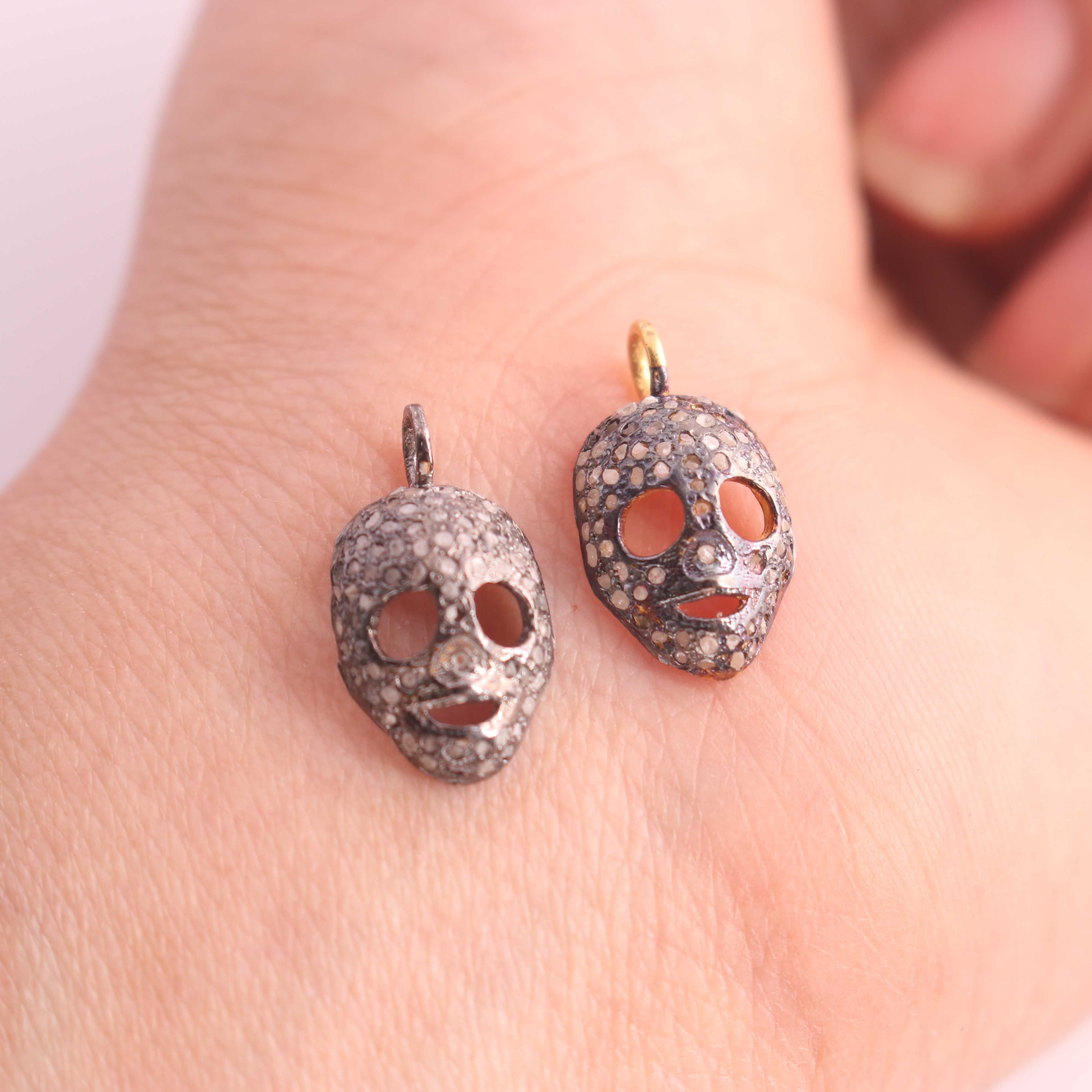 Listing Is For 1 Pc Antique Finish Pave Diamond Skull Charm 925 Sterling Silver Pendant - PDC508