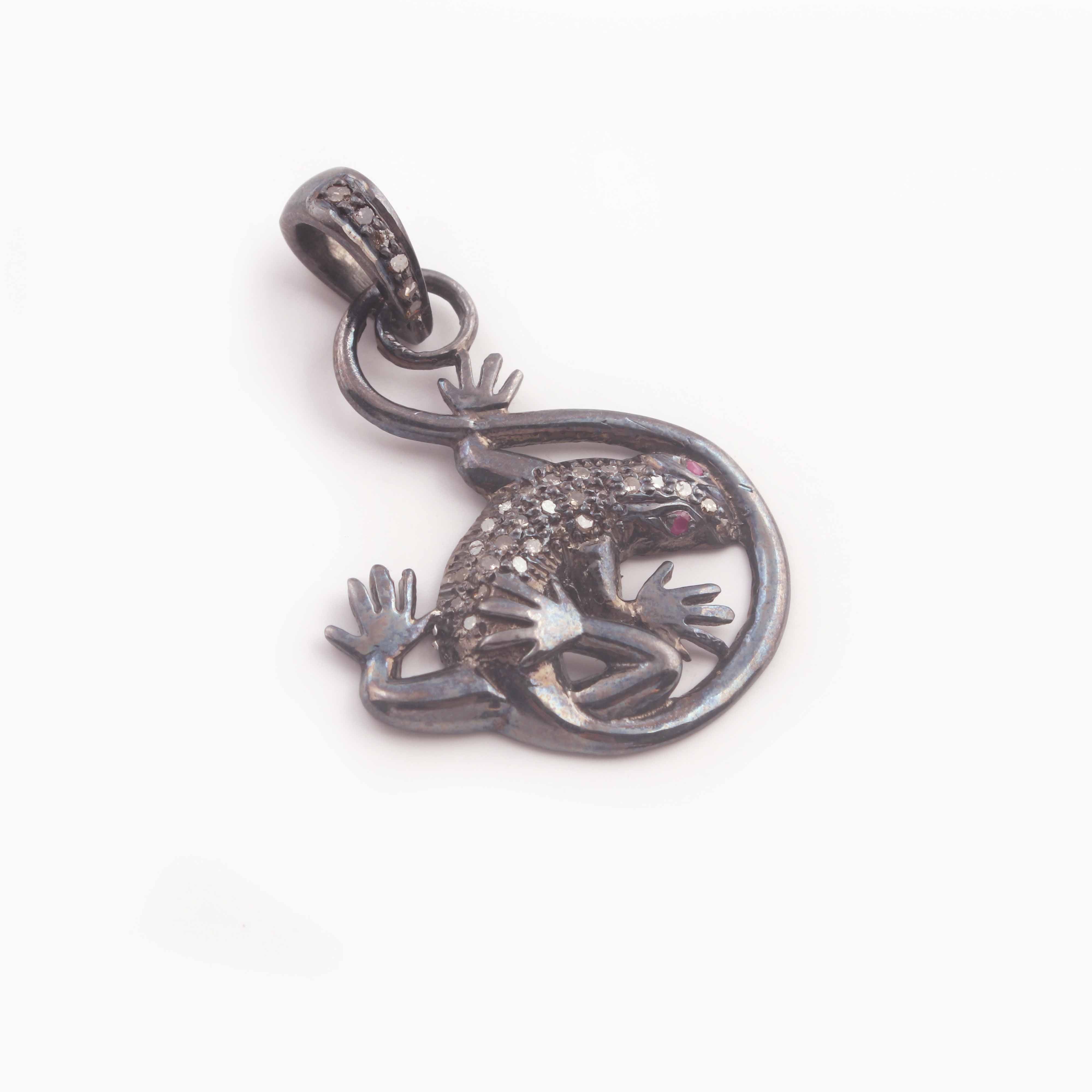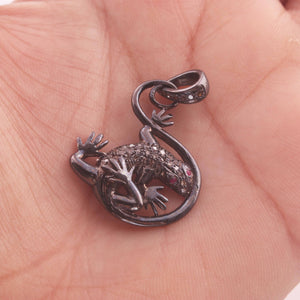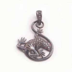 1 Pc Beautiful Pave Diamond Lizard ,Ruby Eye Pendant Over 925 Sterling Silver 29mmX24mm PD1460