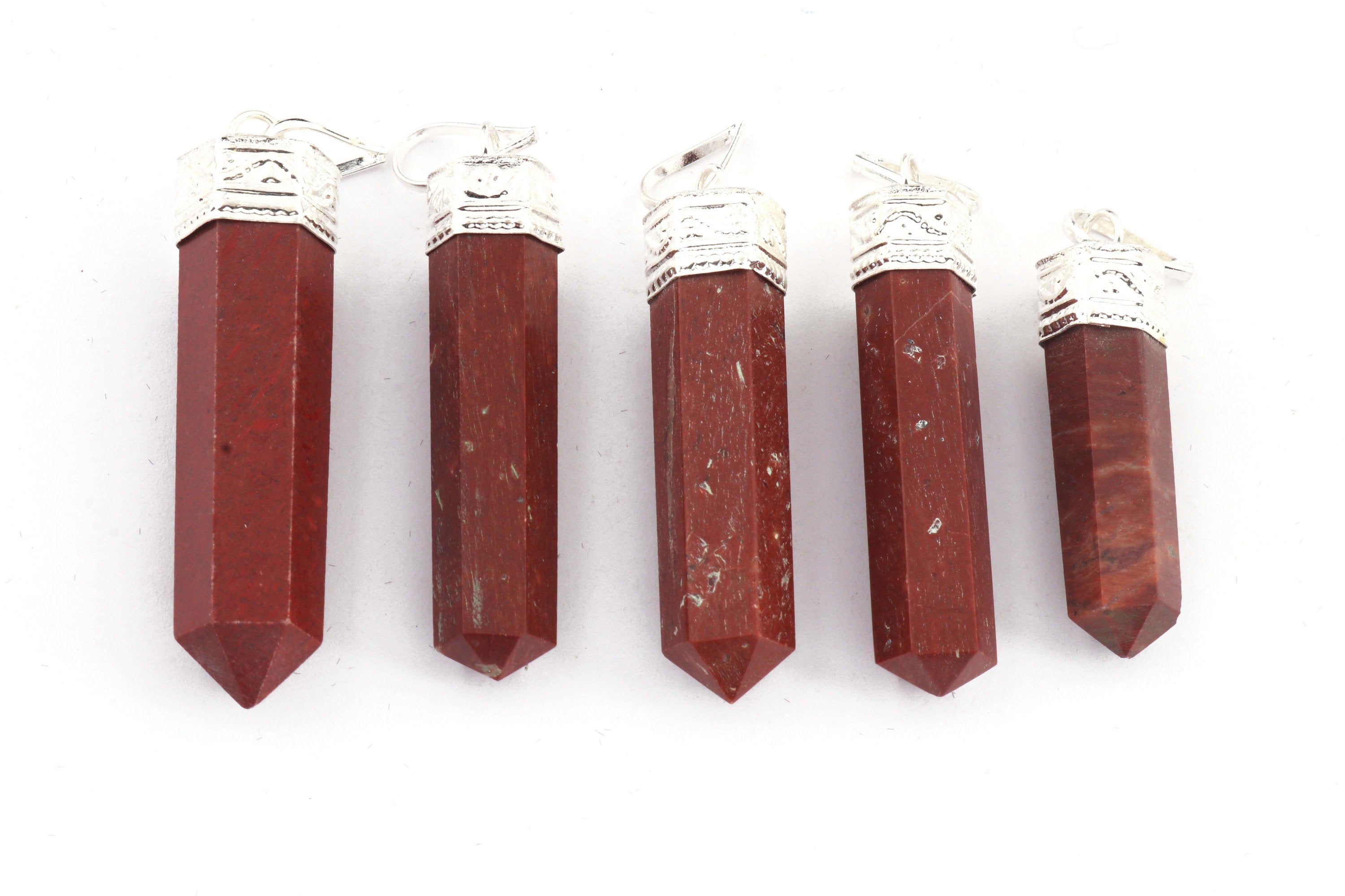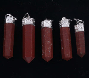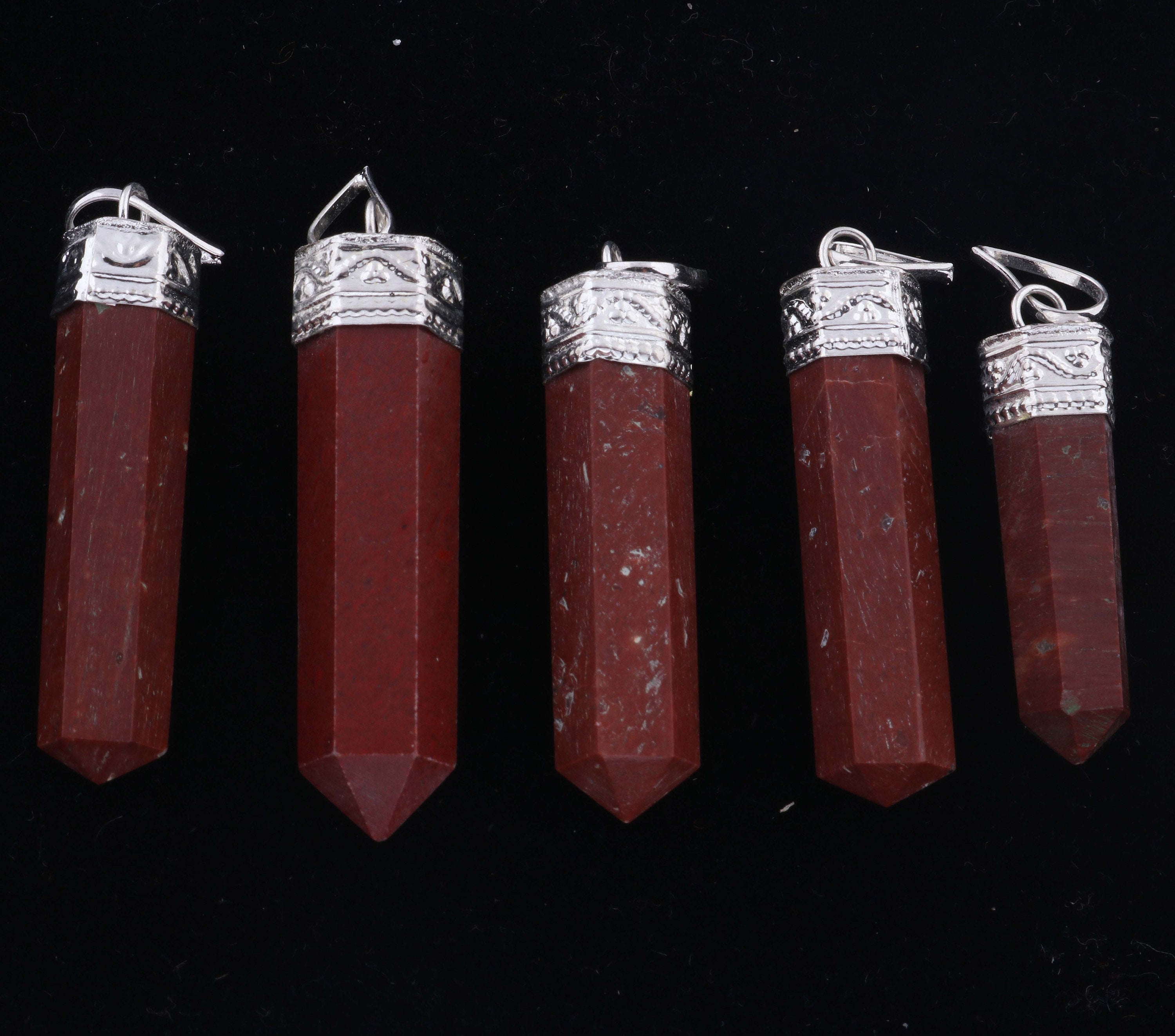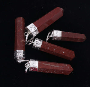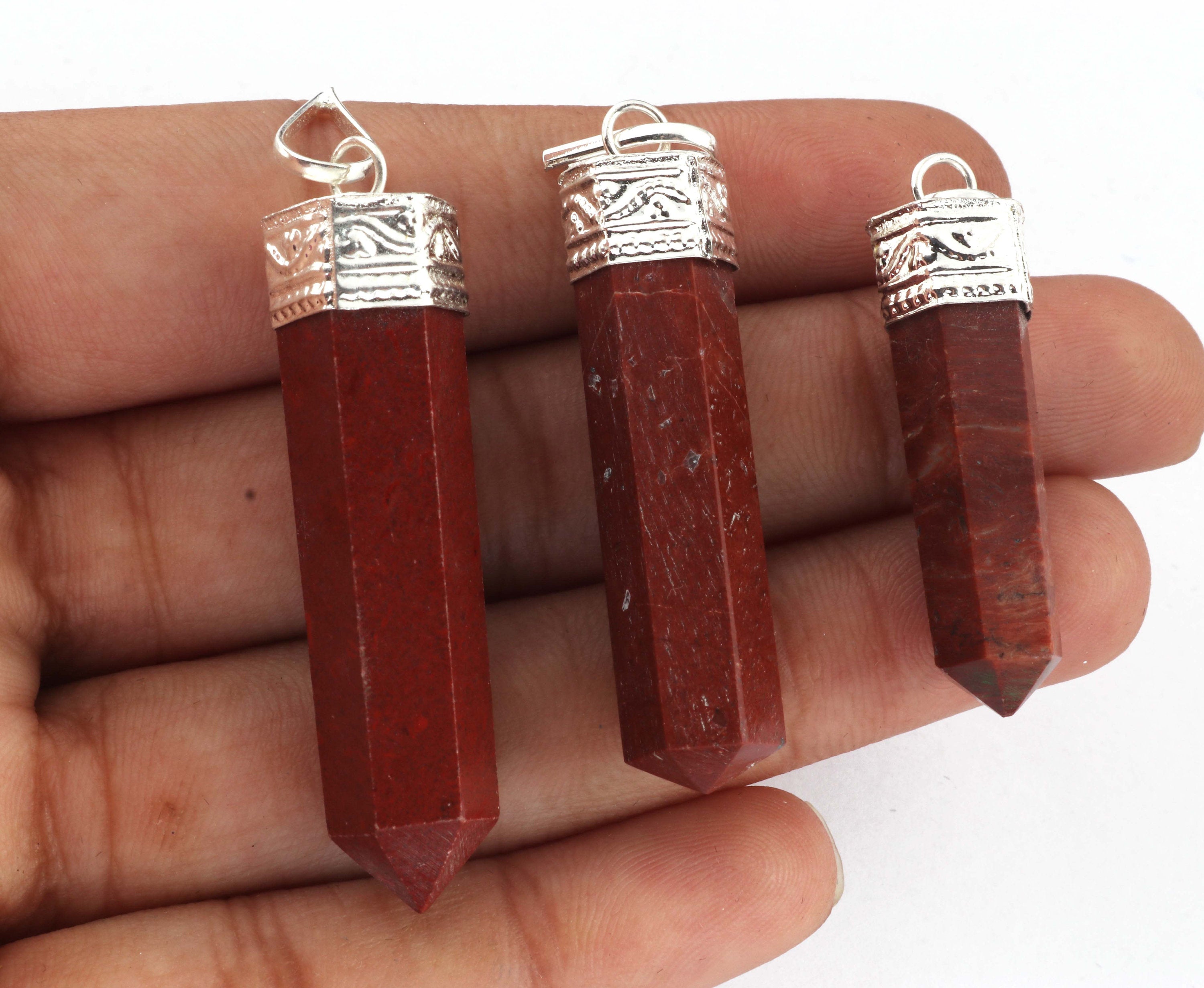 1 PC Brown Jasper Agate Pencil Point Gemstone Crystal 925 Silver Plated Pendant - Silver Toned Ornate Pendant 36mmx9mm-48mmx10mm HS175 Stone -Brown Jasper Agate Color = Brown & Silver Shape: Pencil Size = 36mmx9mm-48mmx10mm Handmade Pendant Available Stones: 1. Amethyst 2.Crystal Quartz 3. Sunstone 4. Brown Tiger Eye 5.Black Obsidian 6. Rose Quartz 7. Amazonite 8. Brown Jasper Agate 9.Peach Agate Flaunt this beautiful gemstone pointed pendant around your neck. The gemstone and the silver of the plating are in perfect proportion, so it doesn't look overwhelming. We are continuously adding new products in our store. So keep coming back to see more great deals on gems in our mart. Amazing quality at the best price around!!! Bulk wholesale orders are welcome on this item and any others in my shop, convo me for pricing information. Makes a great focal piece, sure to get compliments!!!!