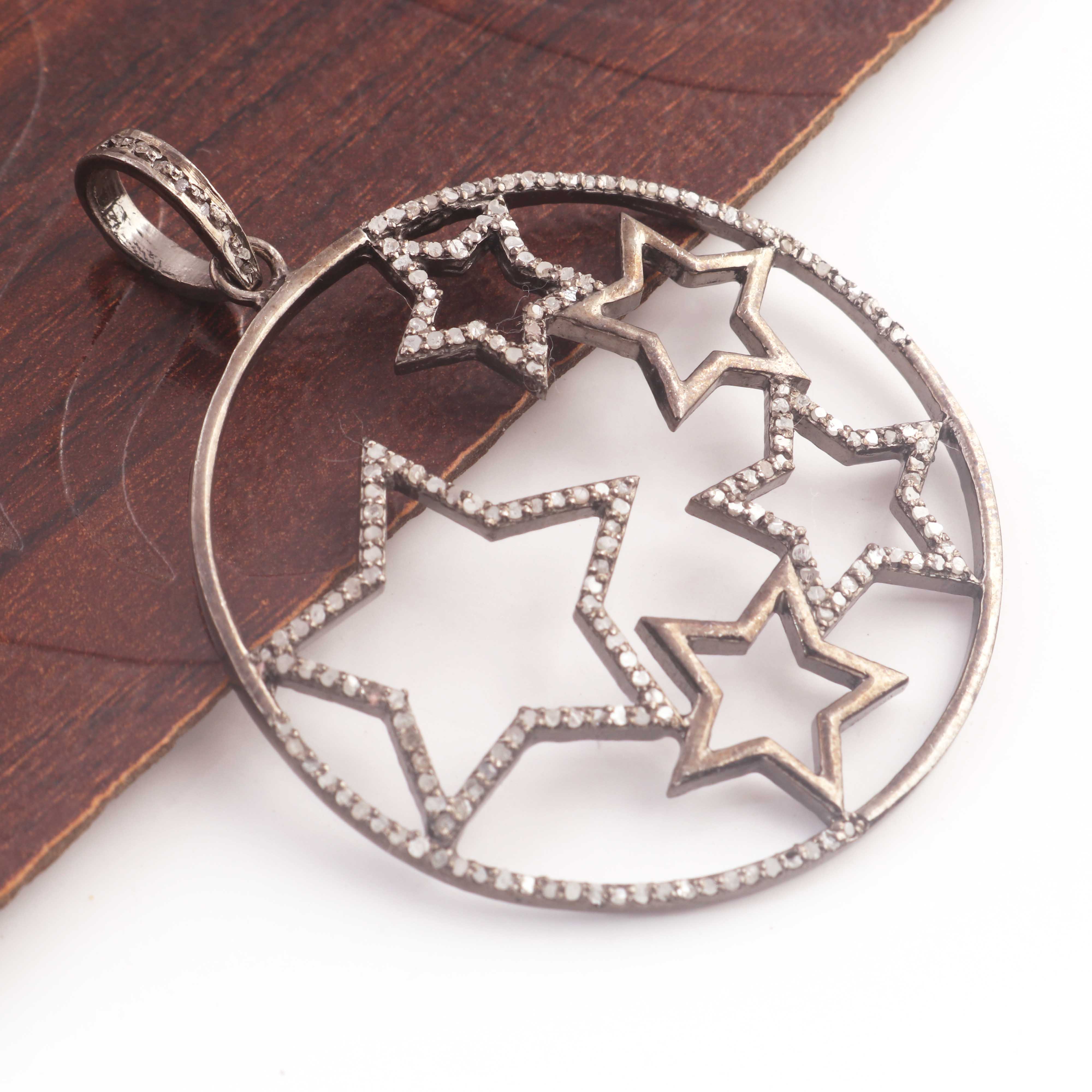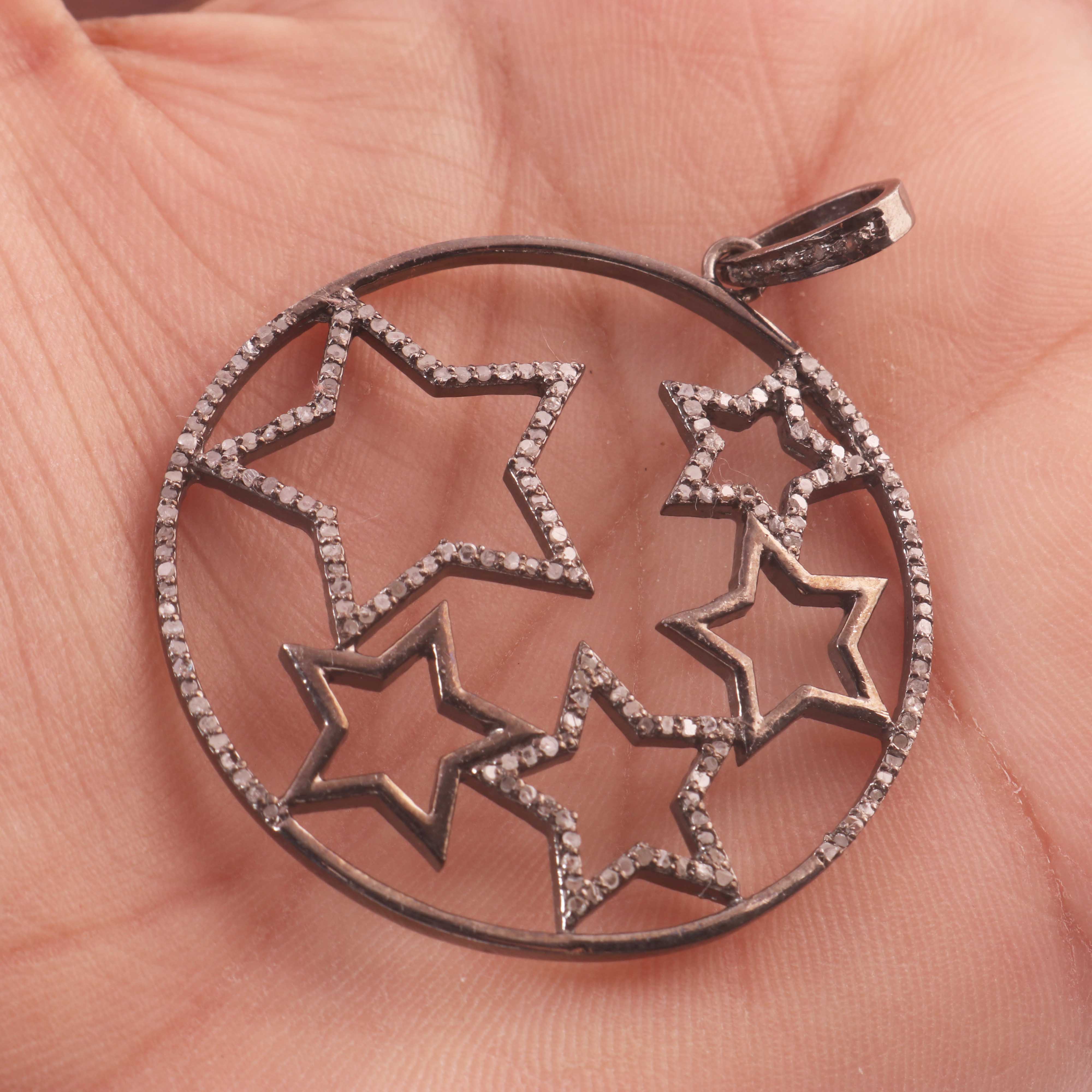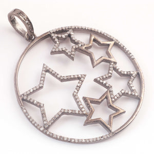 1 Pc Designer Pave Diamond Round Star Pendant - 925 Sterling Silver - Round Star Pendant 42mmx40mm Pd296
