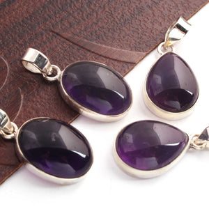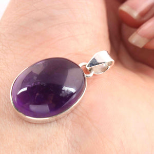1 Pc Genuine and Amethyst Smooth Oval Pendant - 925 Sterling Silver - Gemstone Pendant SJ114