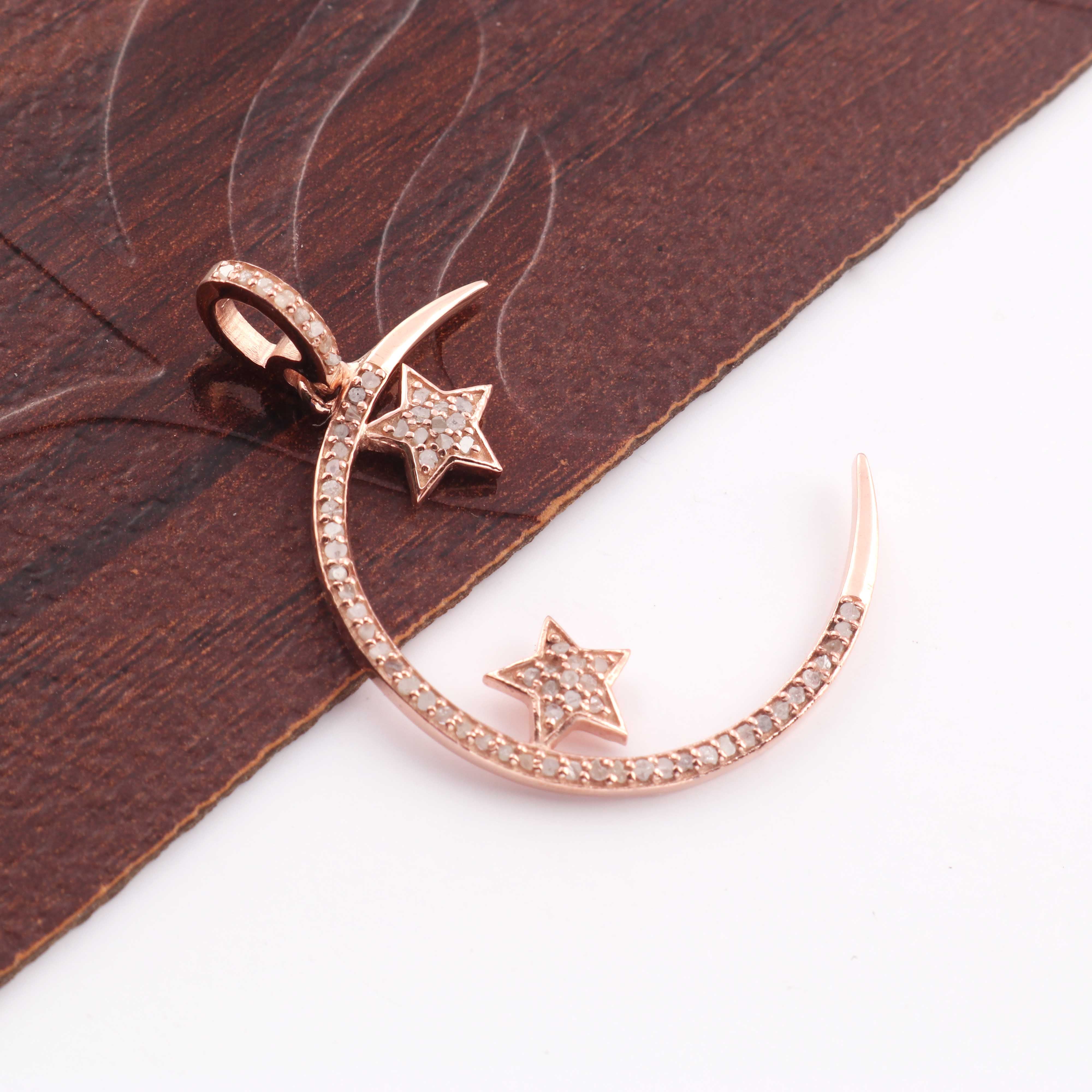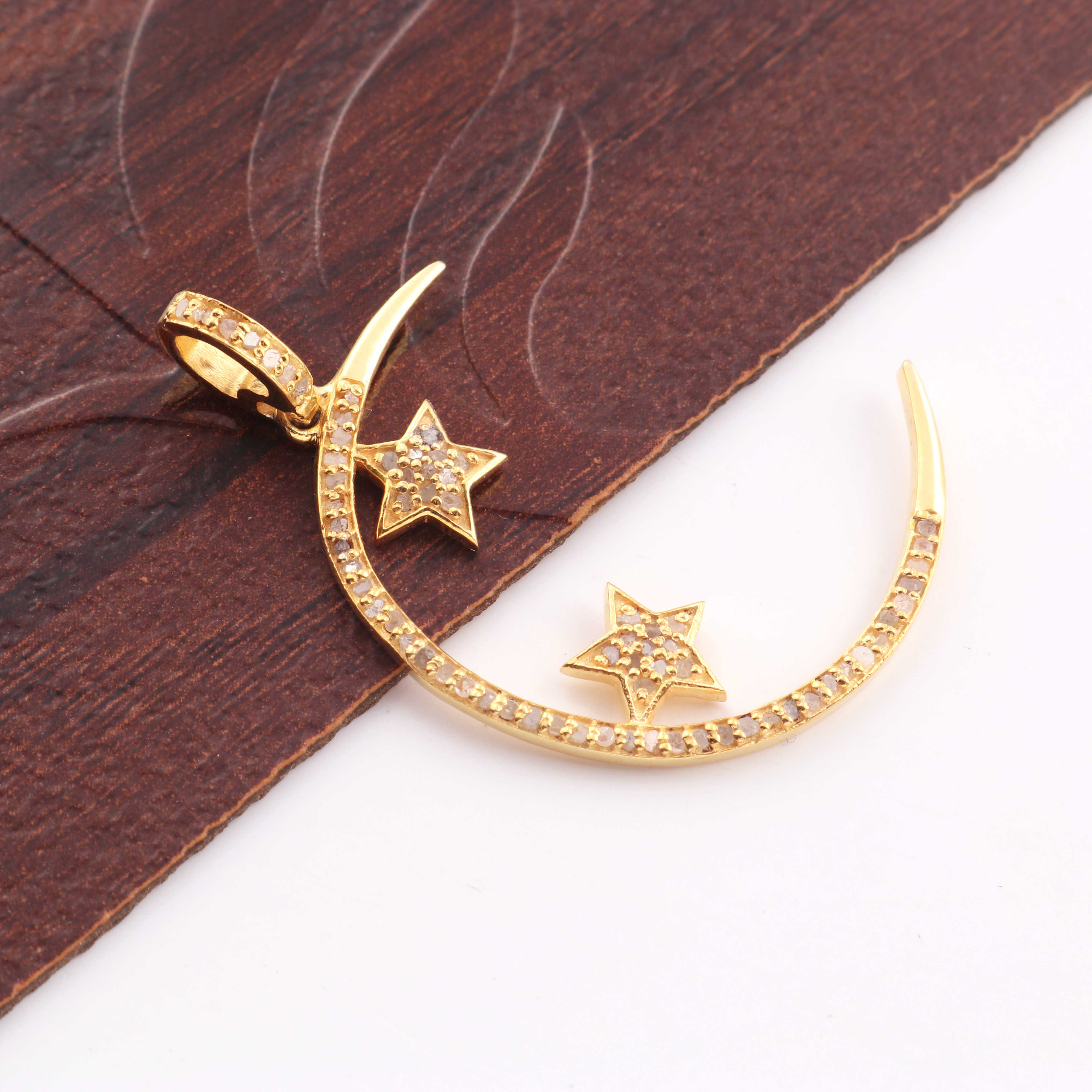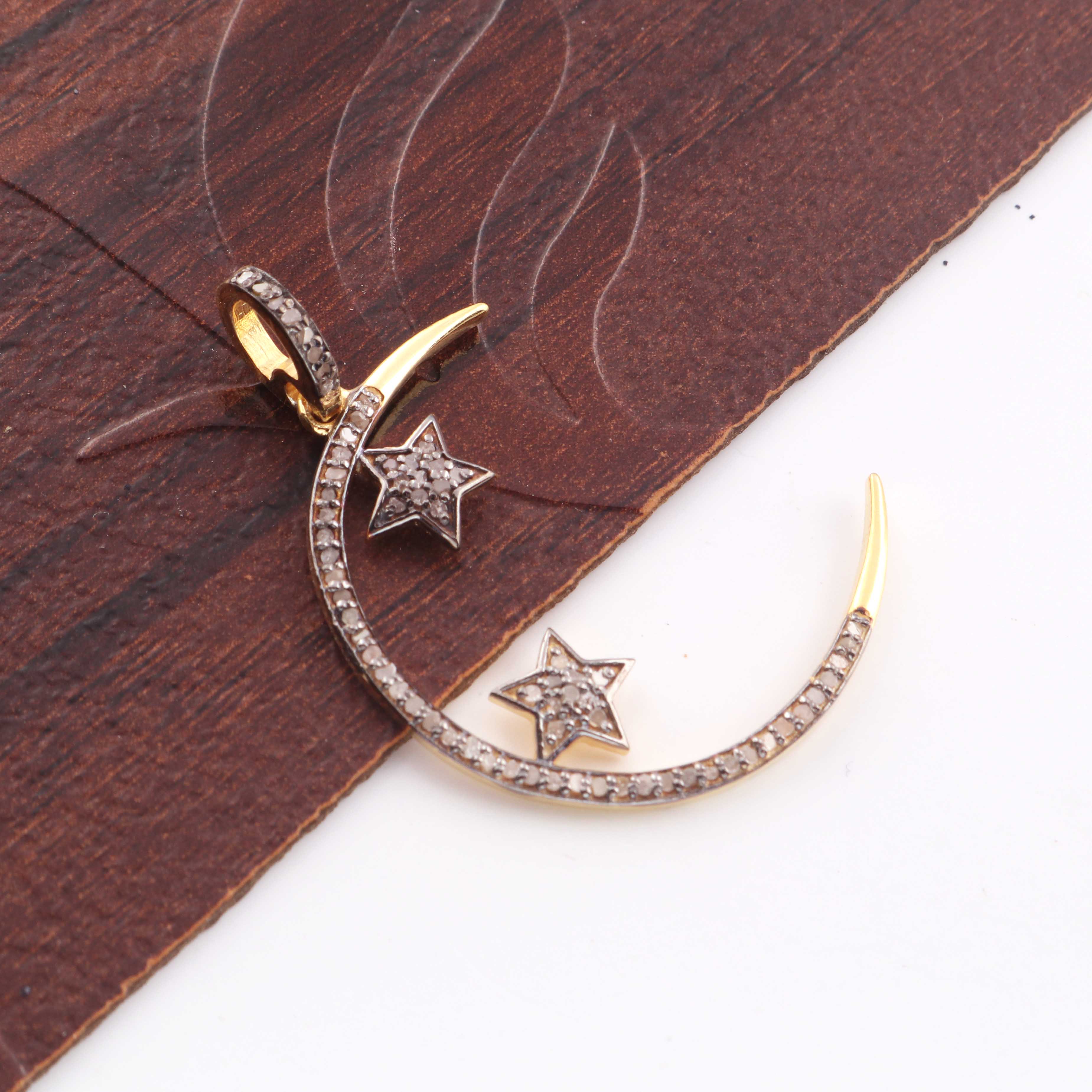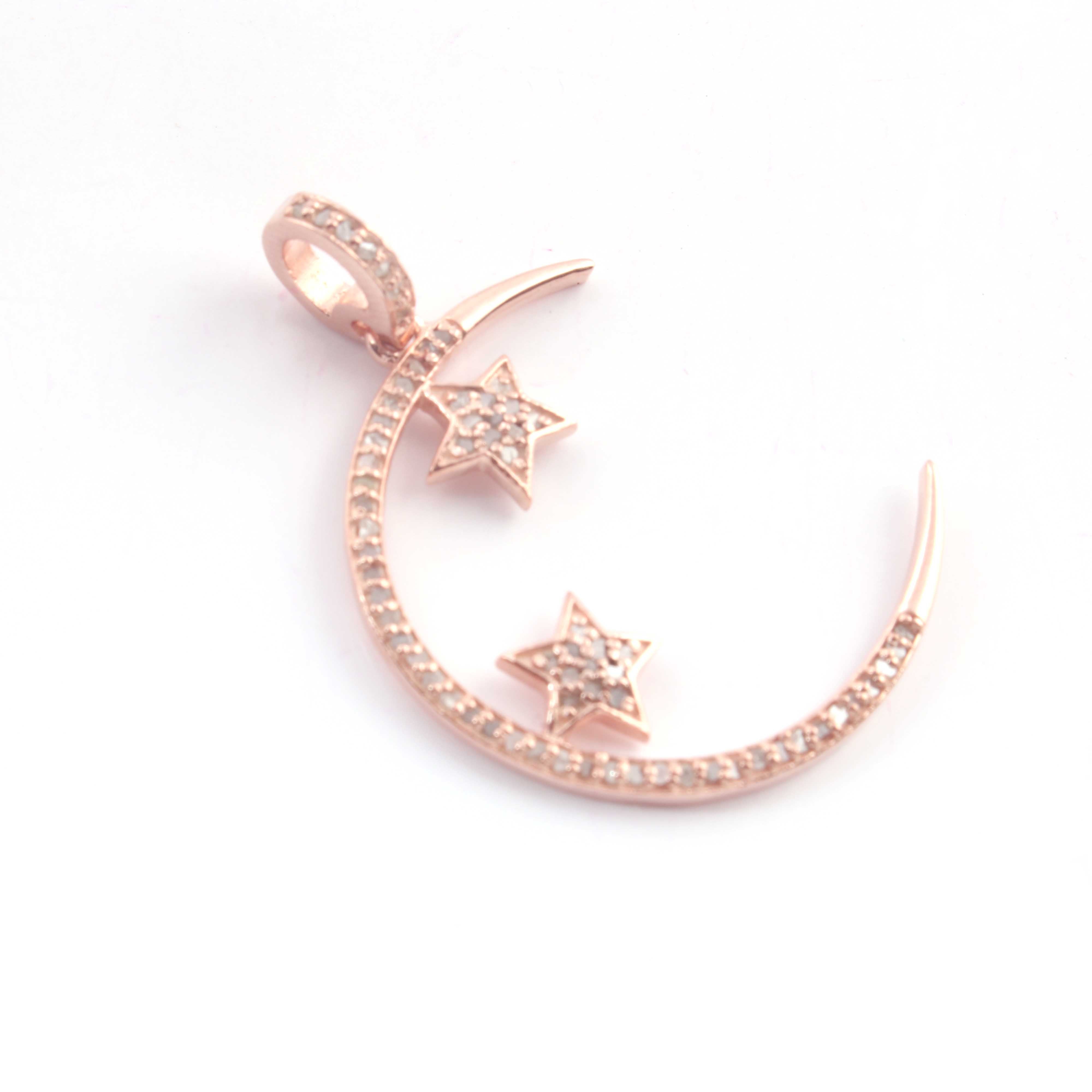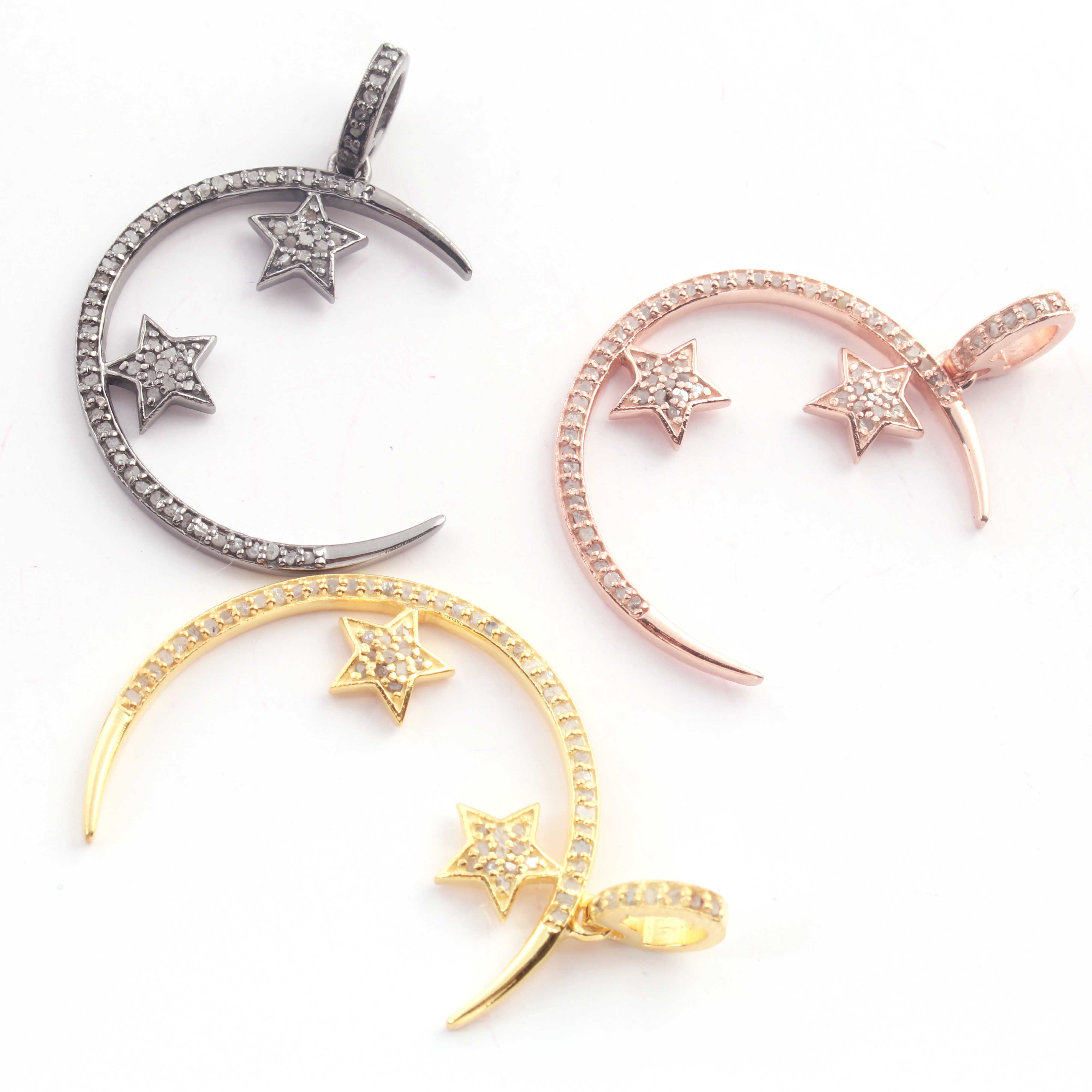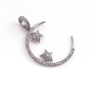 Listing Is For ONE (1) Pc Natural Pave Diamond Crescent Moon & Star Charm Pendant 925 Sterling Silver Pdc800