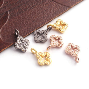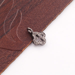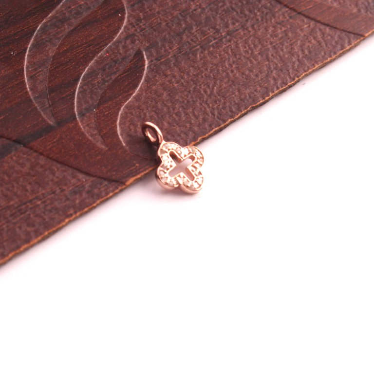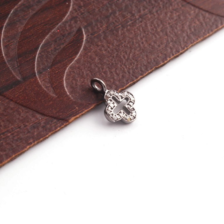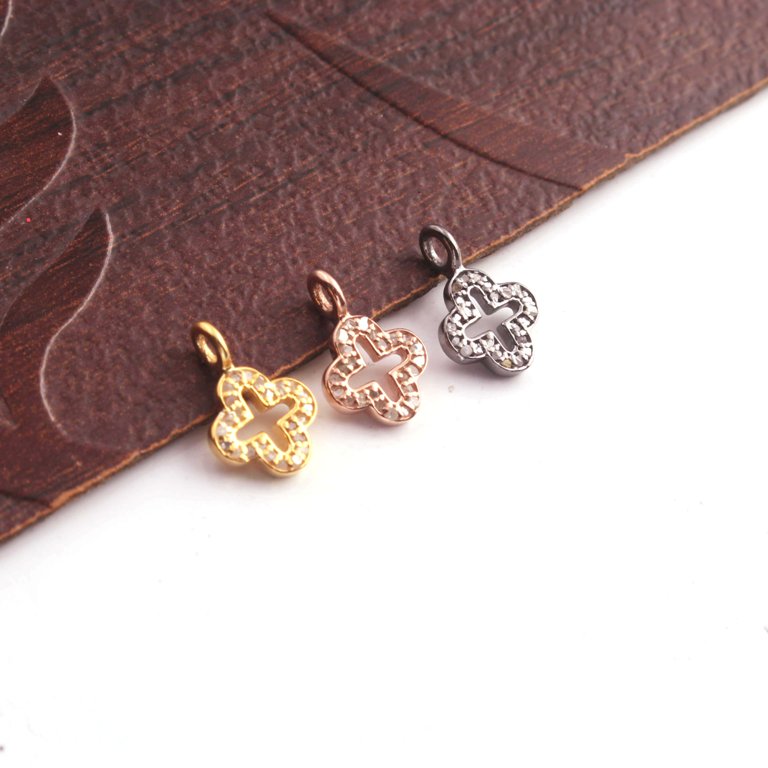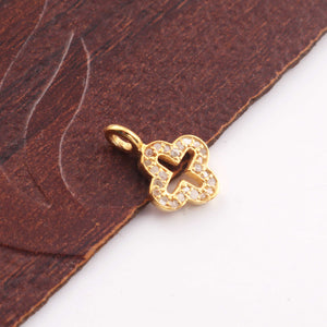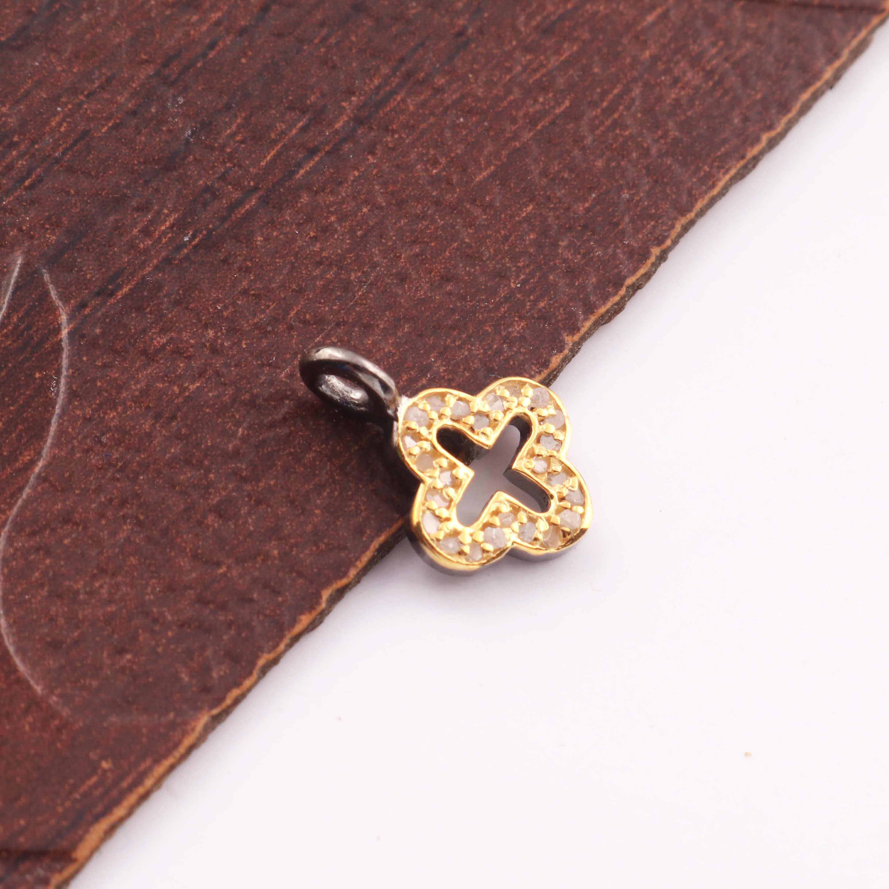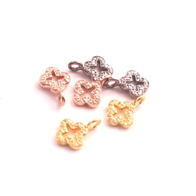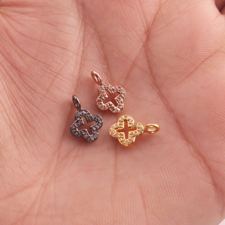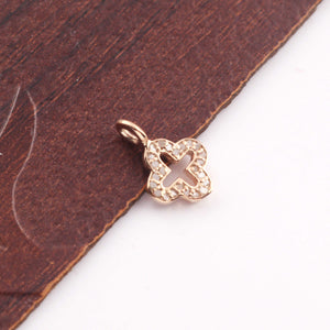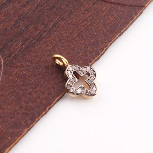 1 Pc Pave Diamond Clover Charm 925 Sterling Silver, Yellow & Rose Gold Vermeil Pendant - Diamond Clover Pendant 12mmx8mm Pdc263