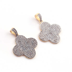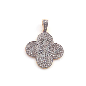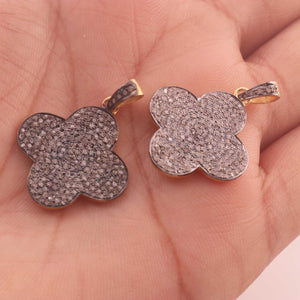 1 Pc Pave Diamond Clover Pendant Over 925 Sterling Silver & Vermeil - Clover Pendant 25mmx21mm PD728