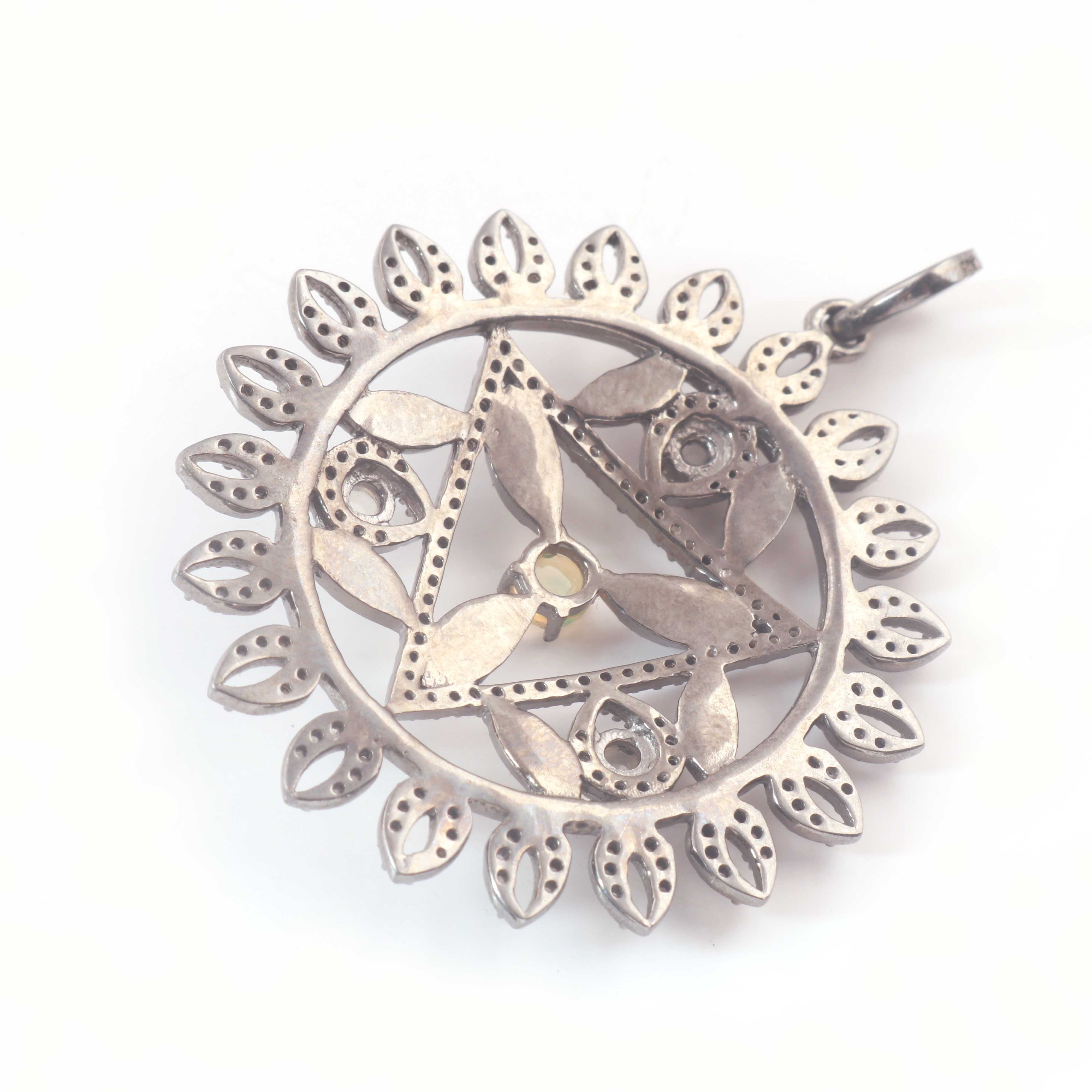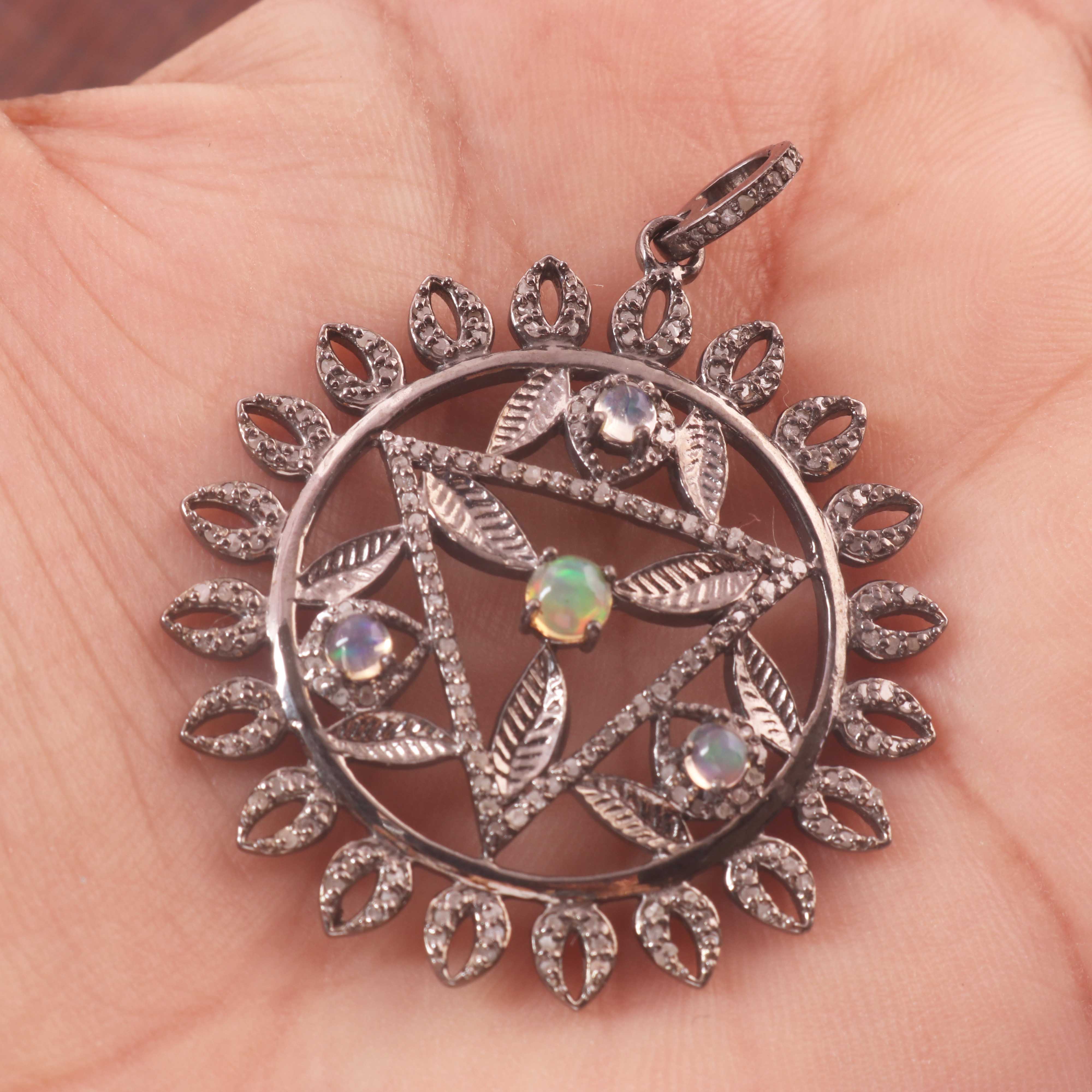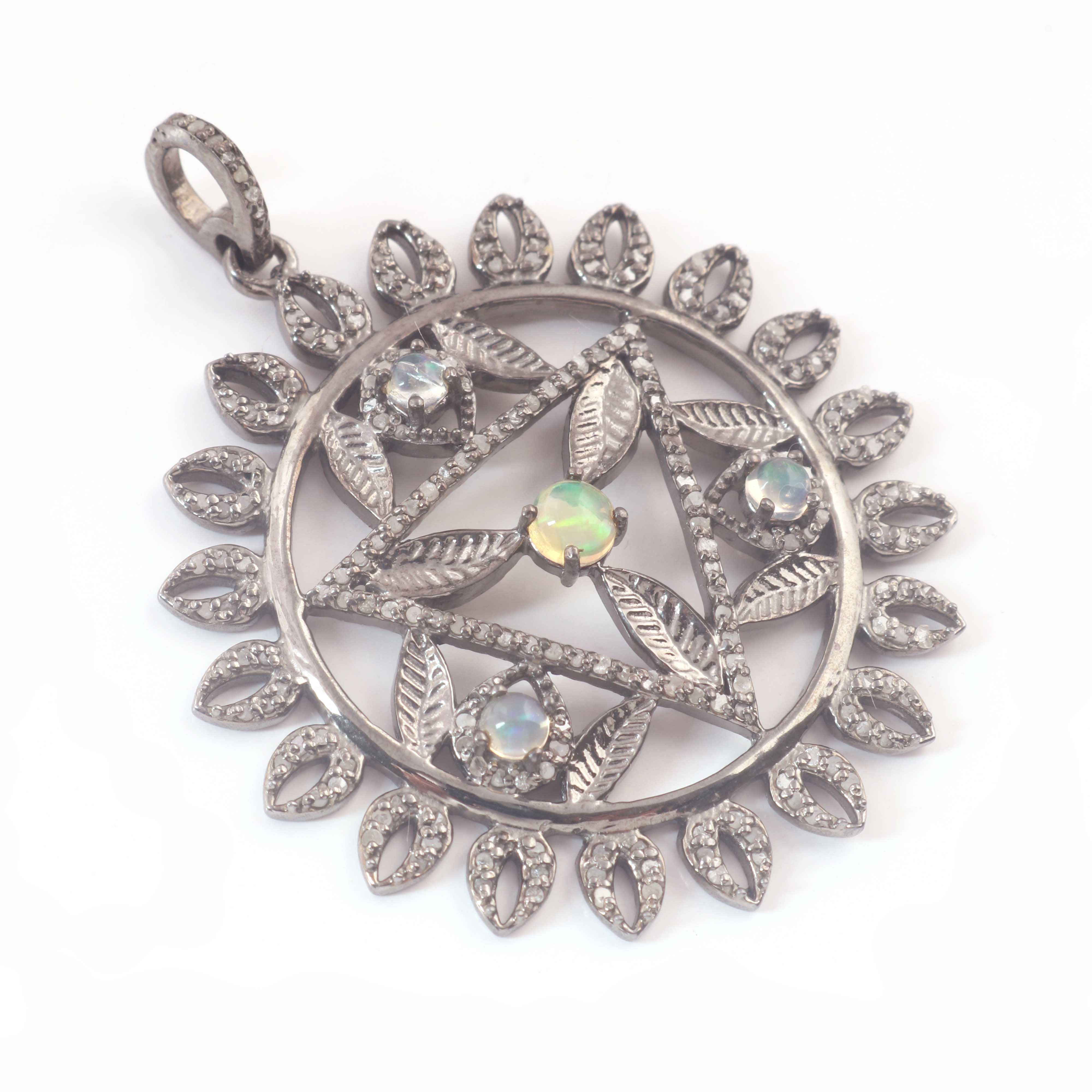 Listing Is For One (1) Pc Pave Diamond Natural Ethiopian Opal Designer Round Pendant - 925 Sterling Silver Pendant PD354