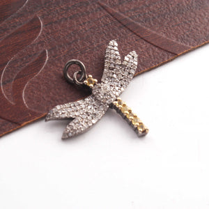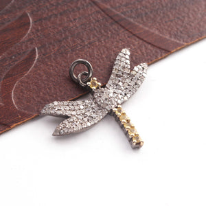 1 PC Pave Diamond Dragon Fly  Charm 925 Sterling Silver Pendant, 23mmx32mm SJPDC075