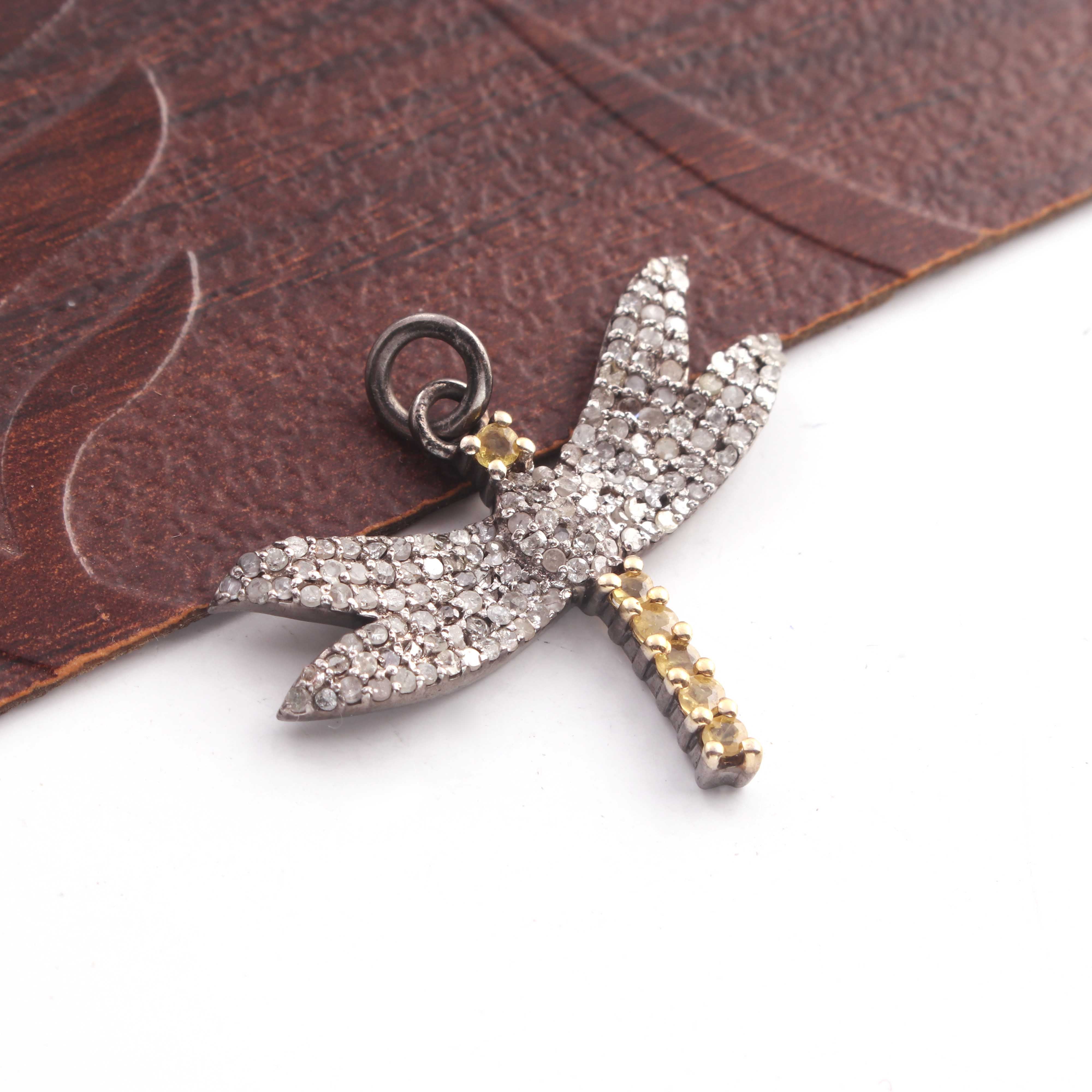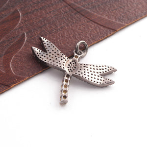 1 PC Pave Diamond Dragon Fly Charm 925 Sterling Silver Pendant, 23mmx32mm SJPDC075