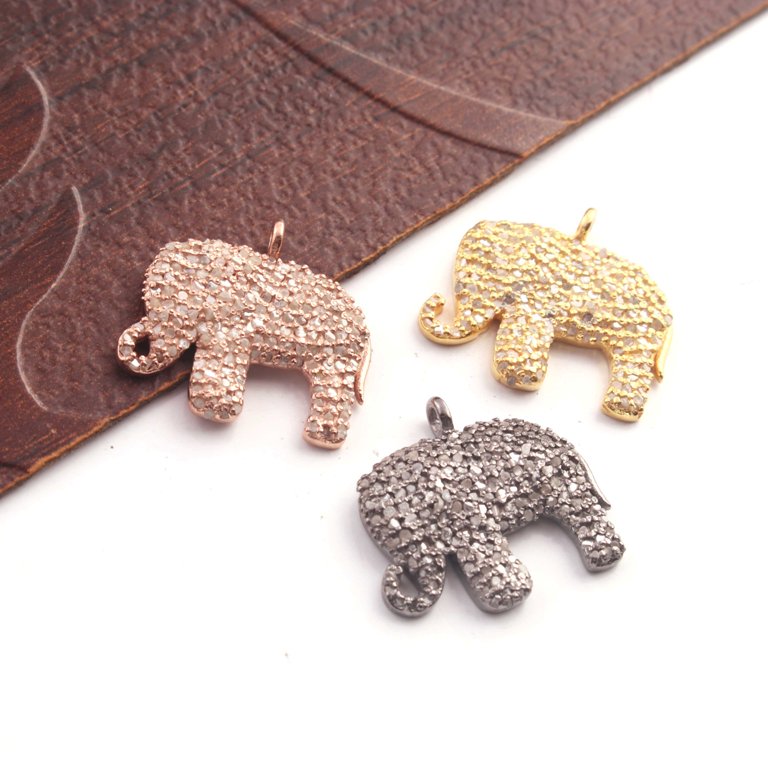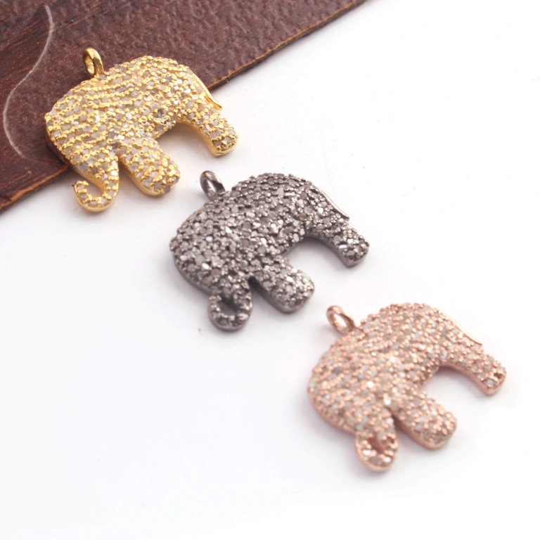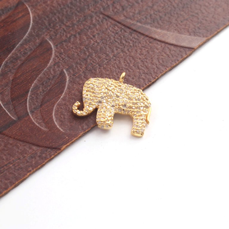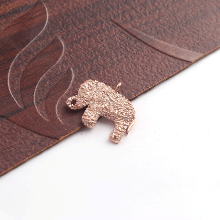 1 Pc Pave Diamond Elephant Charm 925 Sterling Silver, Yellow & Rose Gold Vermeil Pendant - 17mmx20mm PDC433