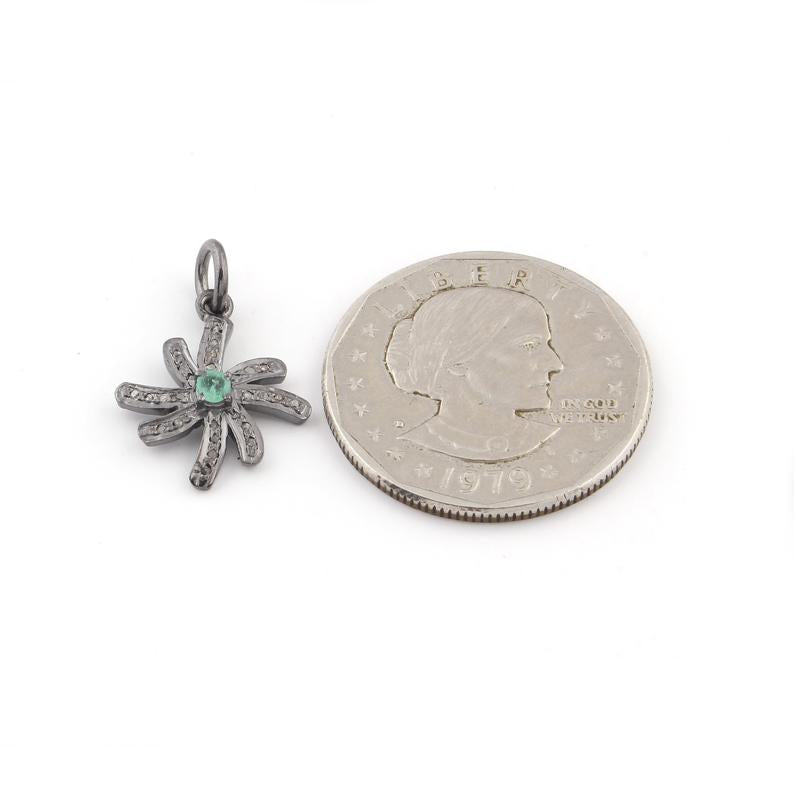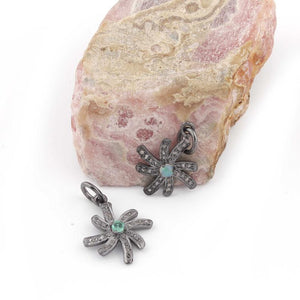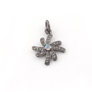 Listing is For One (1) Pc Extremely Pave Diamond Flower Charm 925 Sterling Silver Pendant PDC654