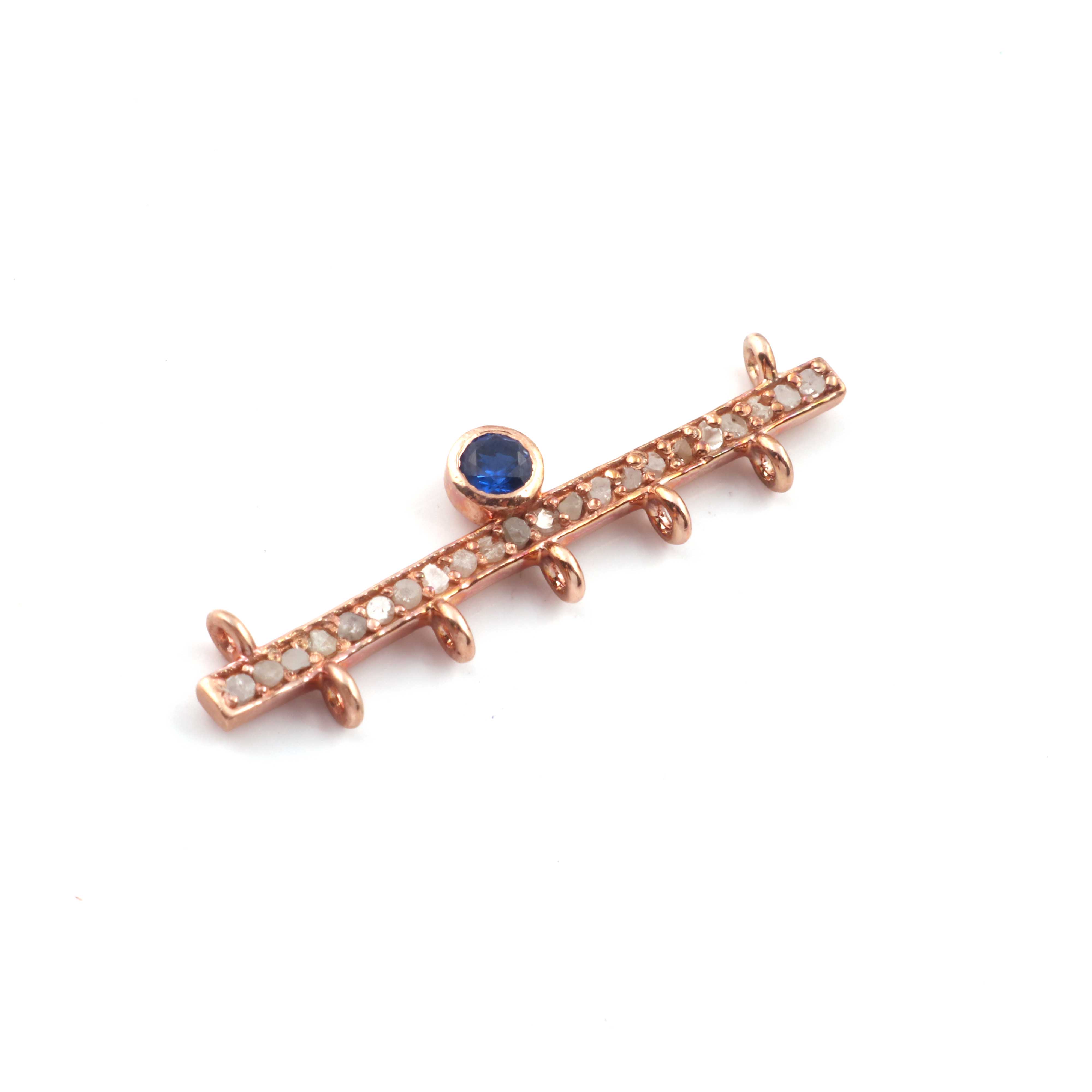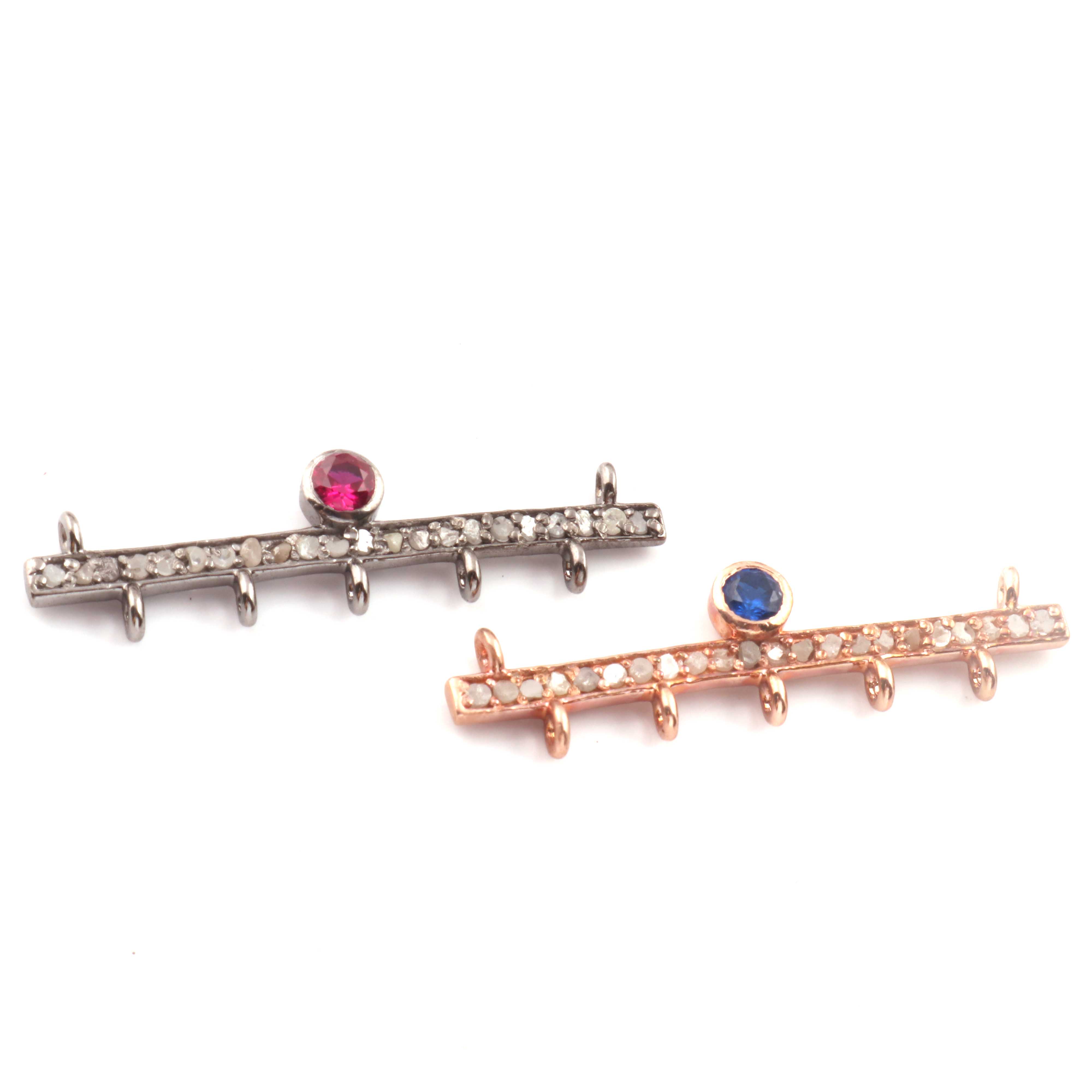 1 Pc Pave Diamond Bar 925 Sterling Silver & Rose Gold Vermeil Pendant- 30mmx6mm PDC00384