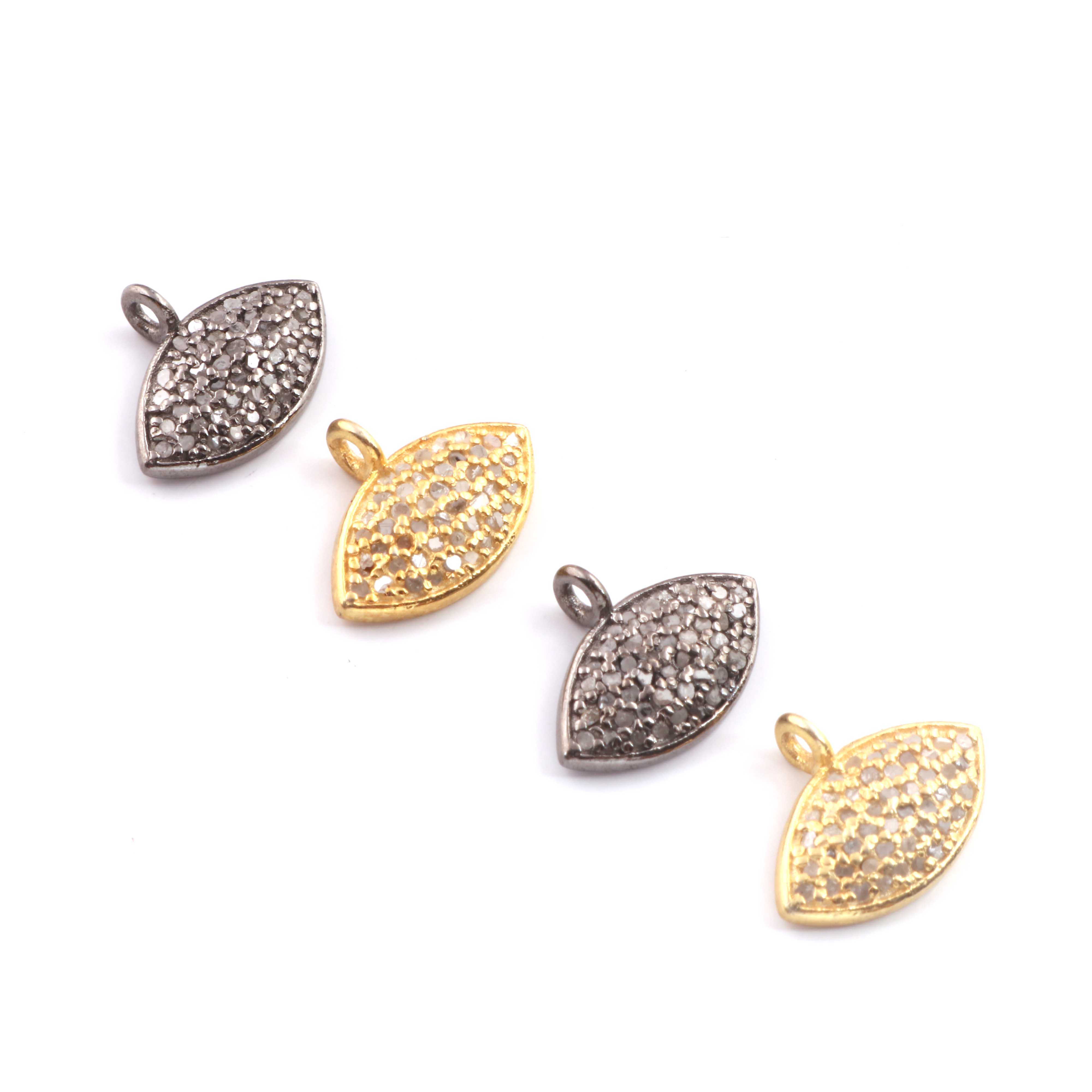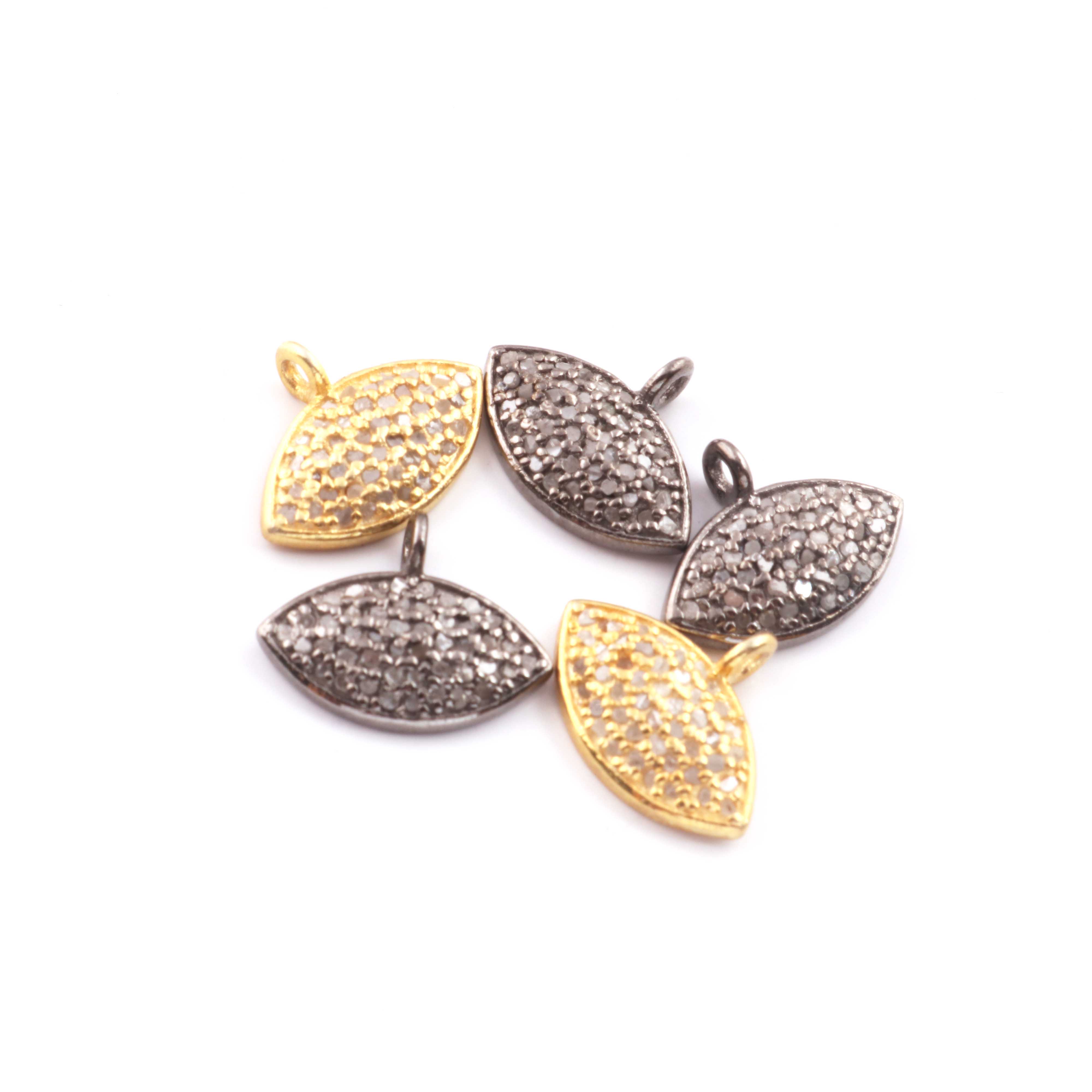 1 Pc Pave Diamond Evil Eye 925 Sterling Silver & Yellow Gold Vermeil Pendant- 12mmx13mm PDC00362