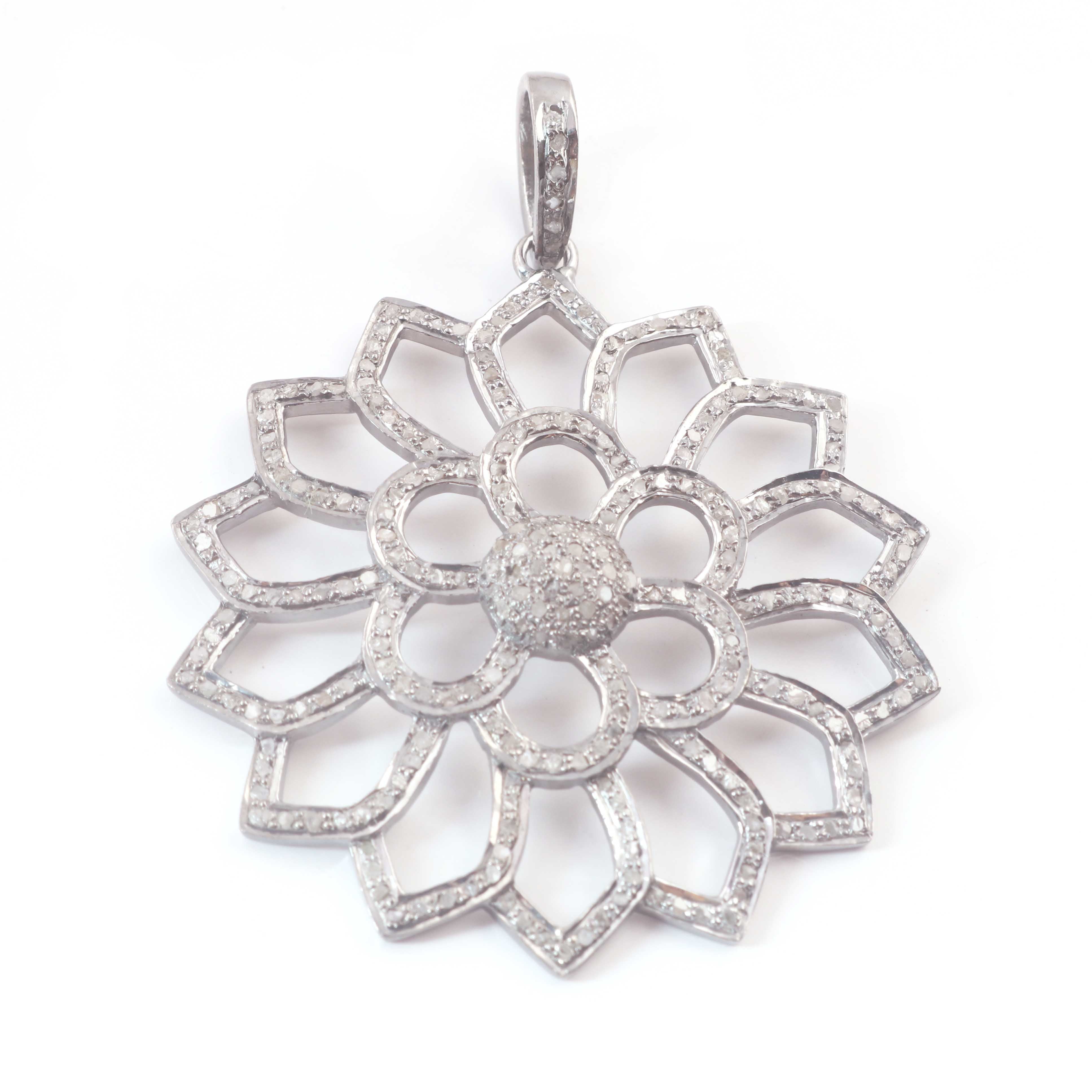 Listing is For One (1) Pc Pave Diamond Flower Single Bail Pendant 925 Sterling Silver - Designer Pendant PD056