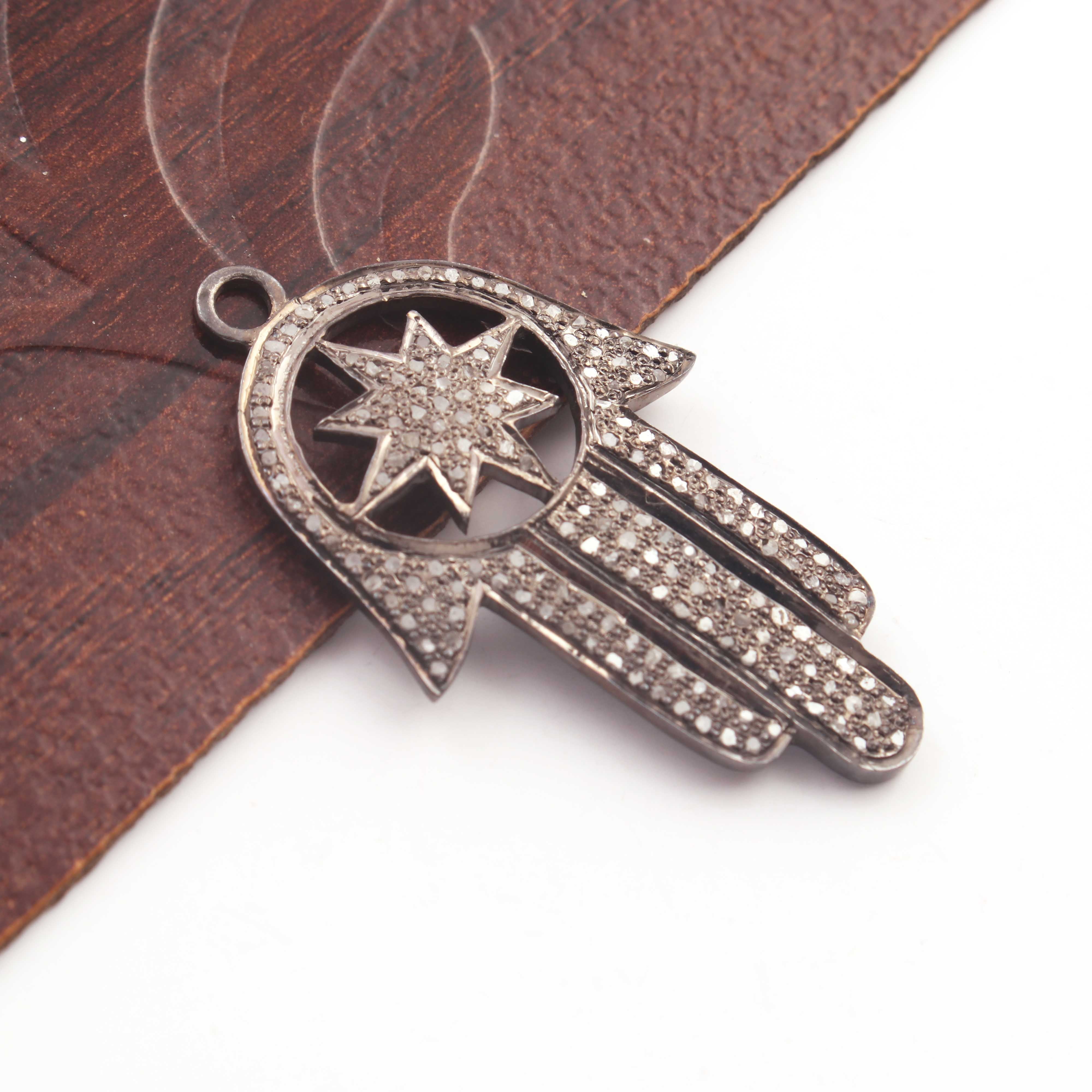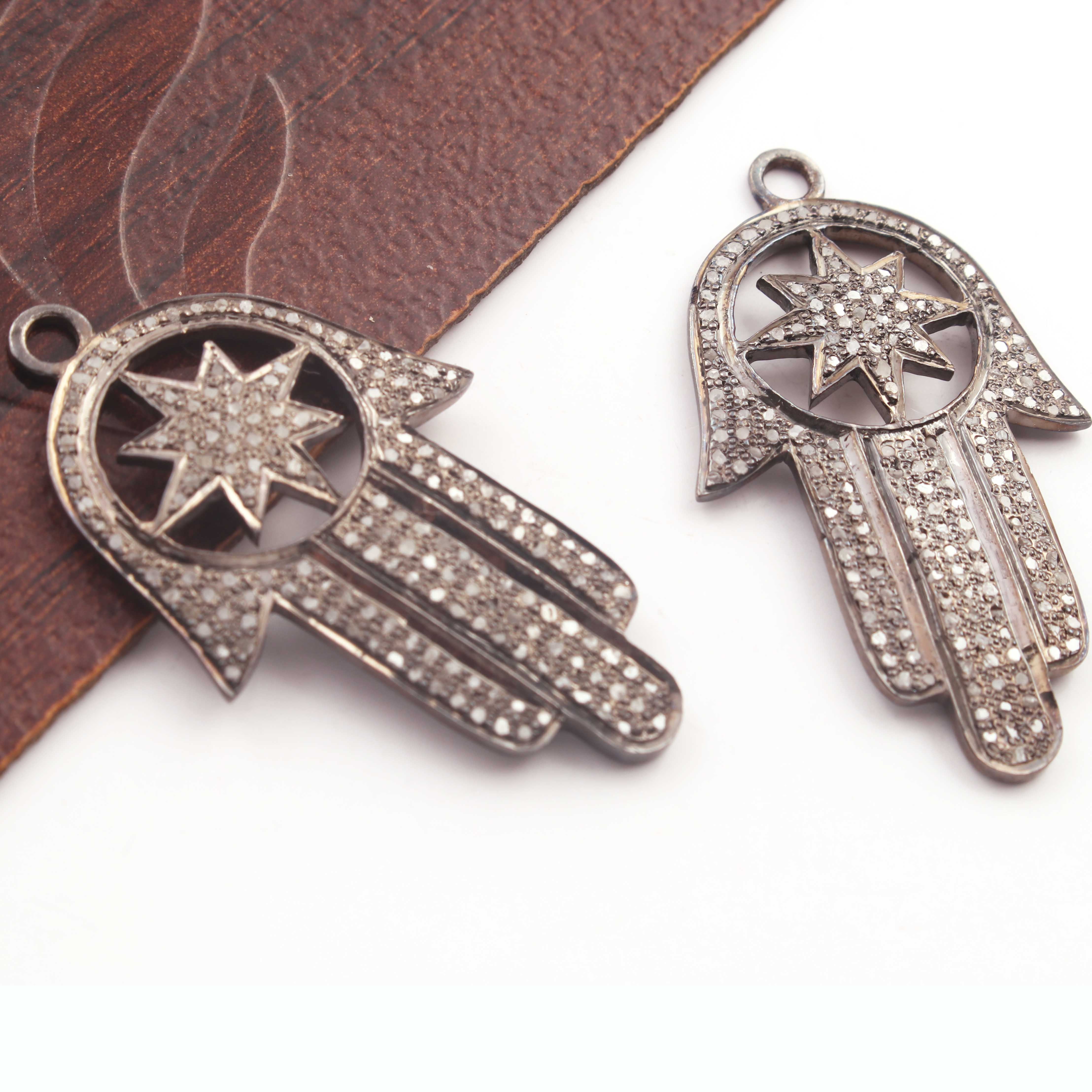 1 Pc Pave Diamond Hamsa Charm 925 sterling Silver Pendant - Hamsa Charm Pendant 39mmx22mm PDC1354