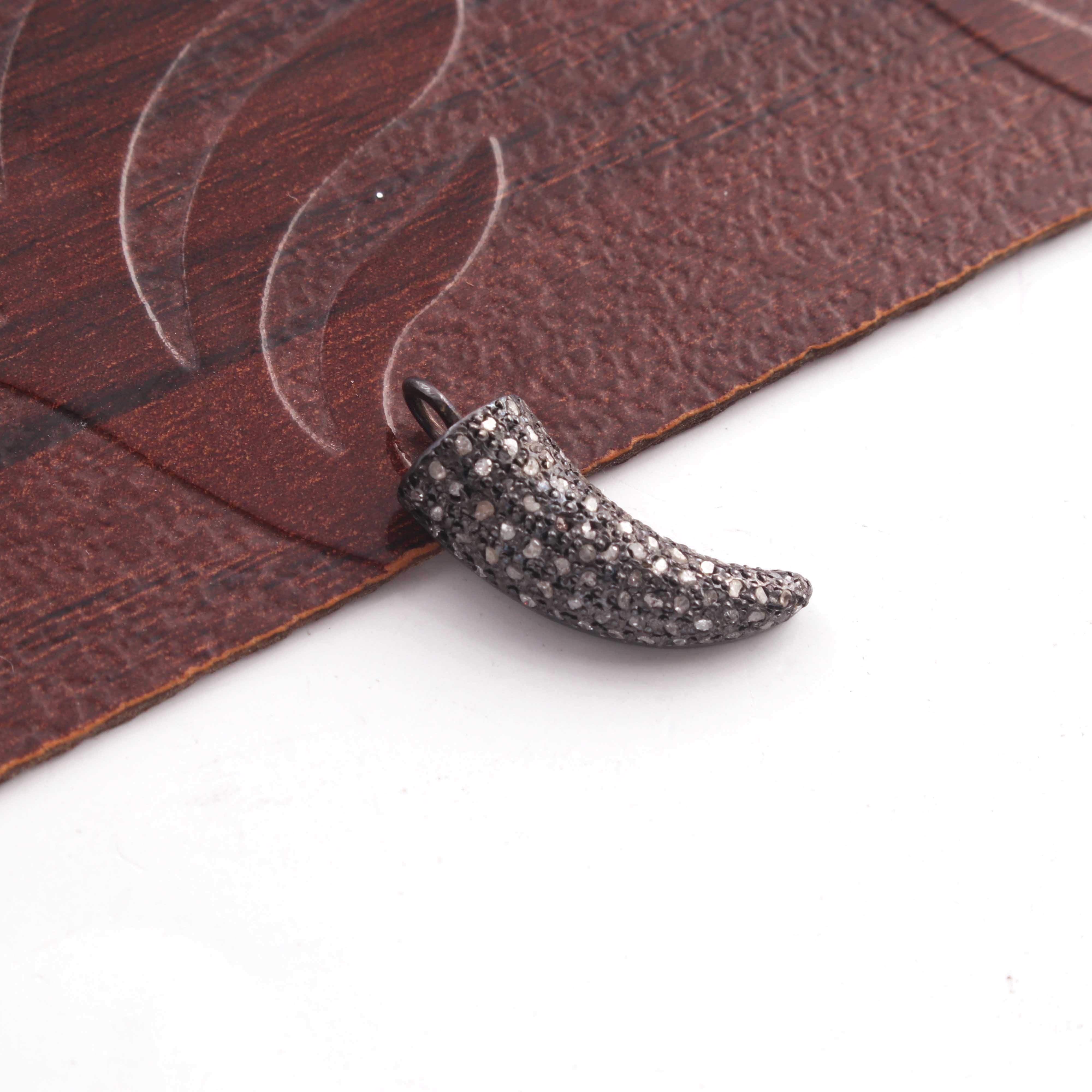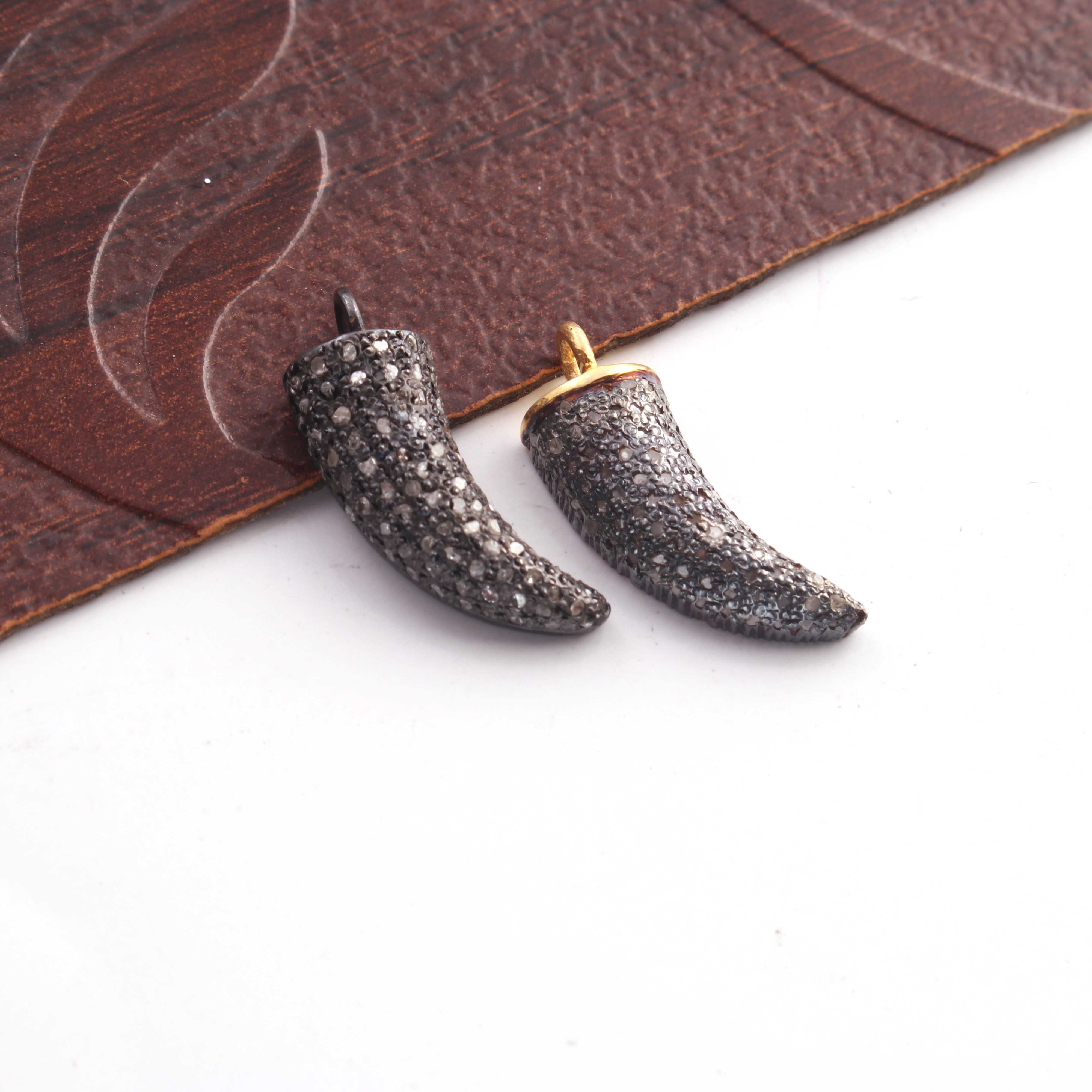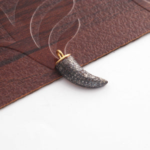 1 Pc Pave Diamond Horn Charm Pendant - 925 Sterling Silver/ Vermeil - Horn Pendant PDC107
