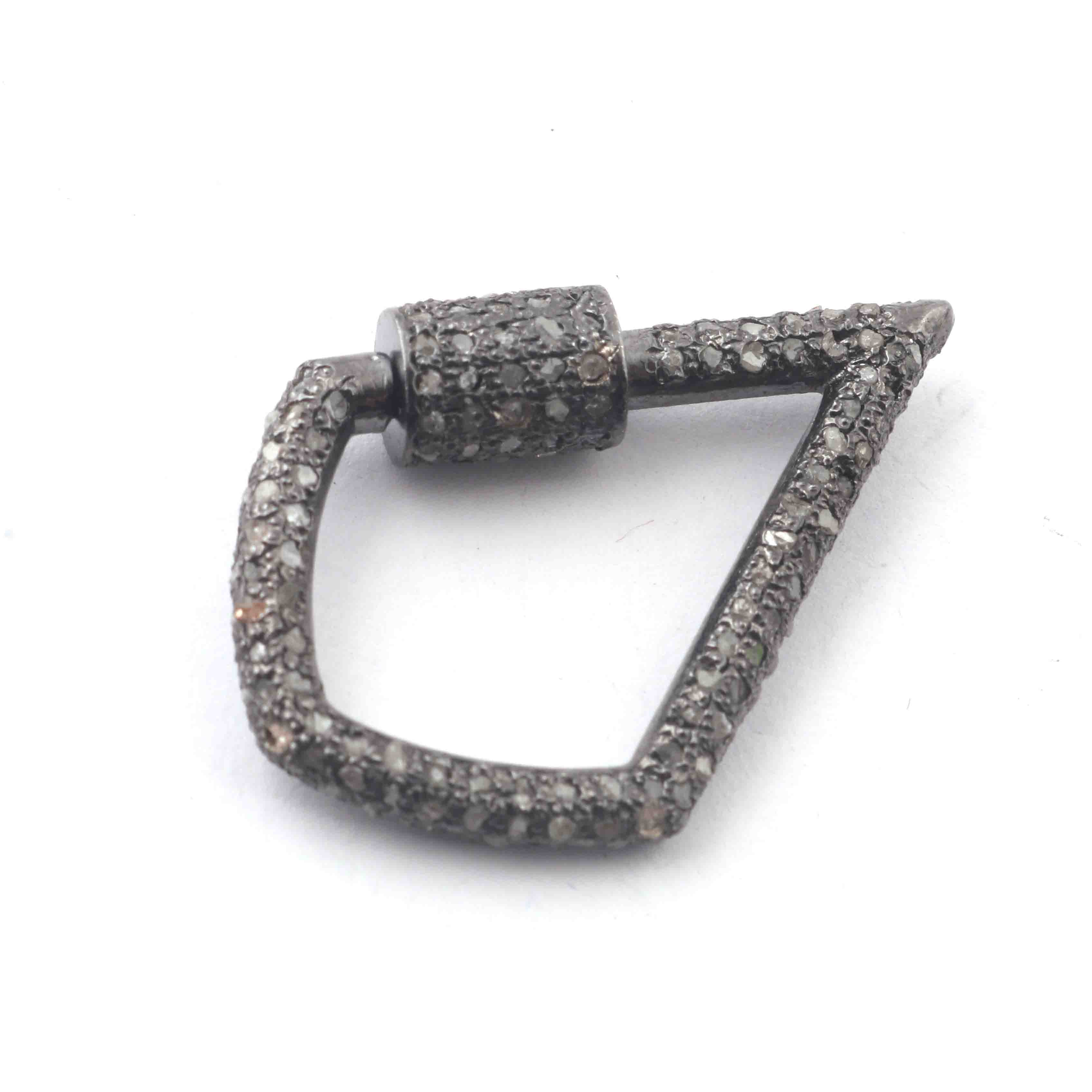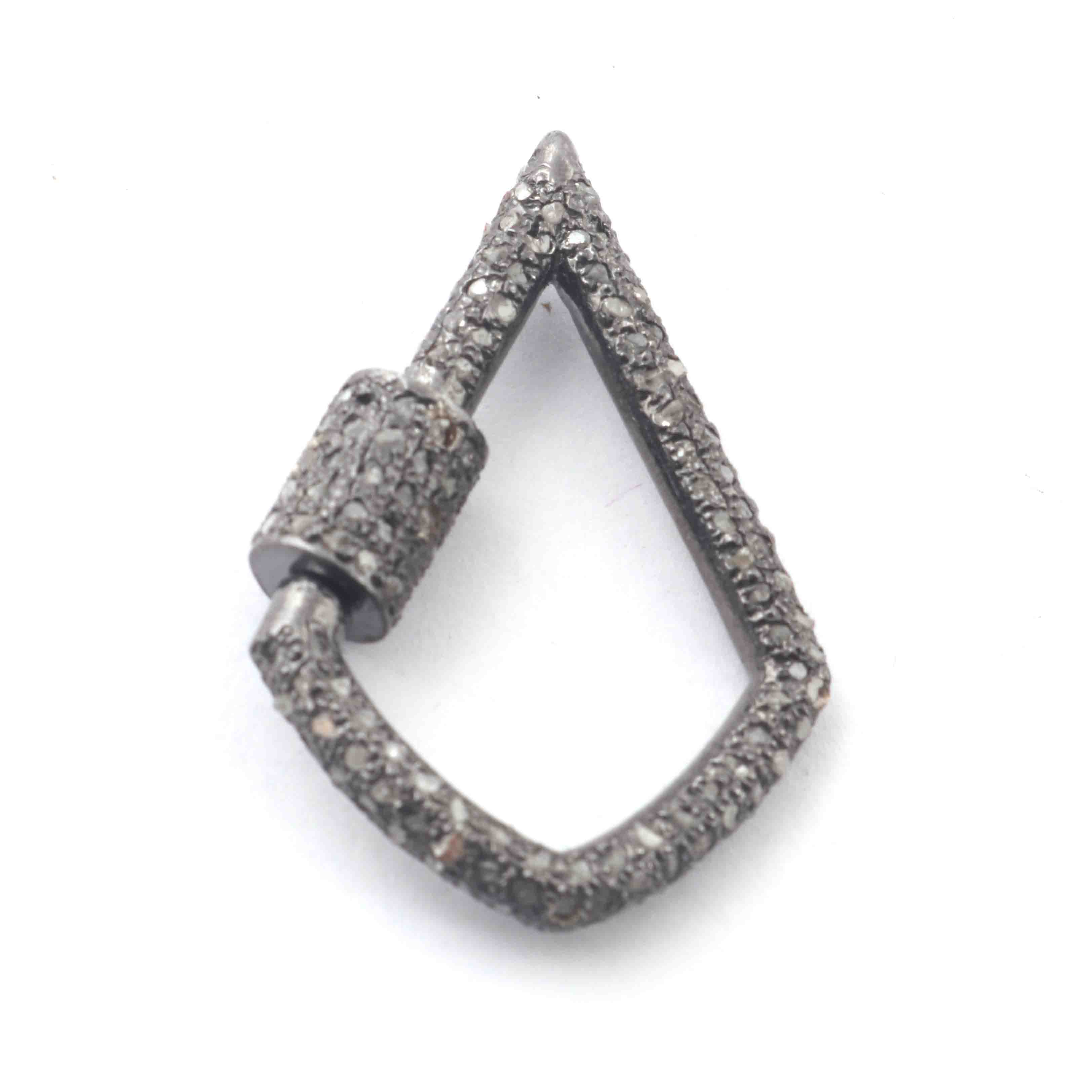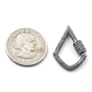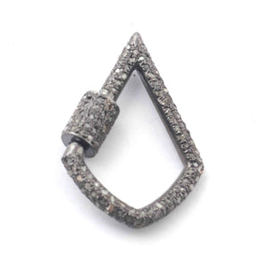 1 Pc Pave Diamond Lock- 925 Sterling Silver- Diamond Fancy Shape Lock with Screw On Mechanism 31mmx21mm GVCB003