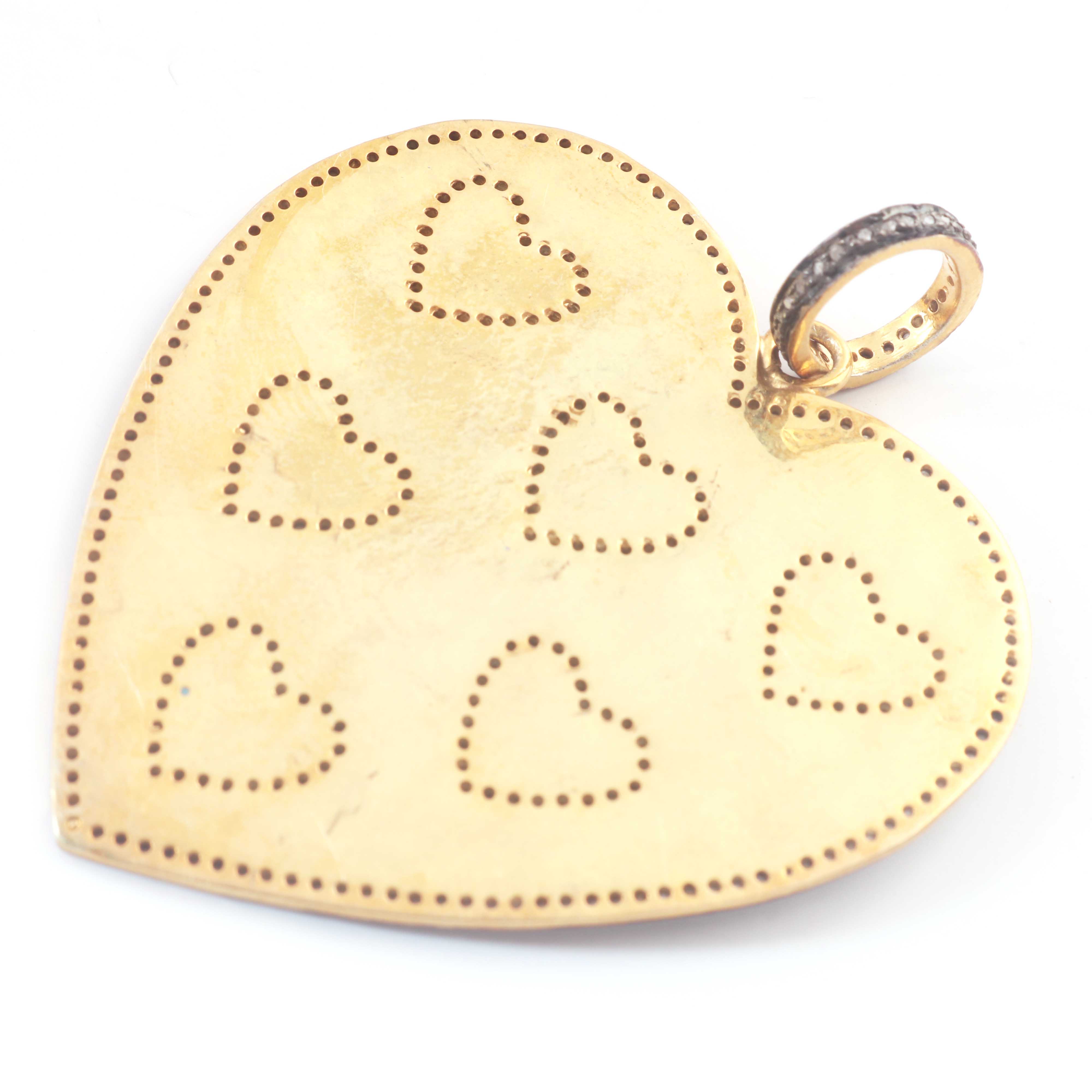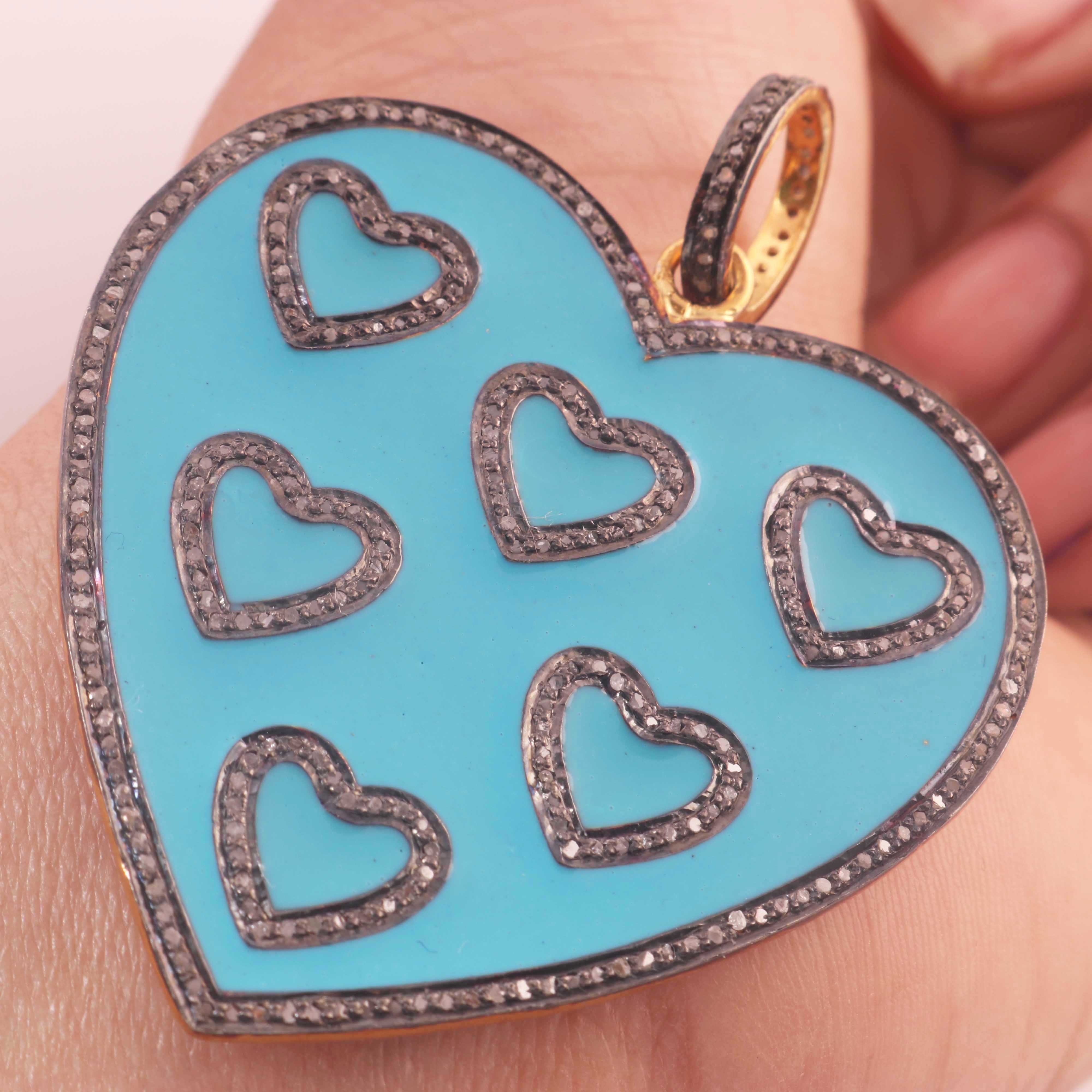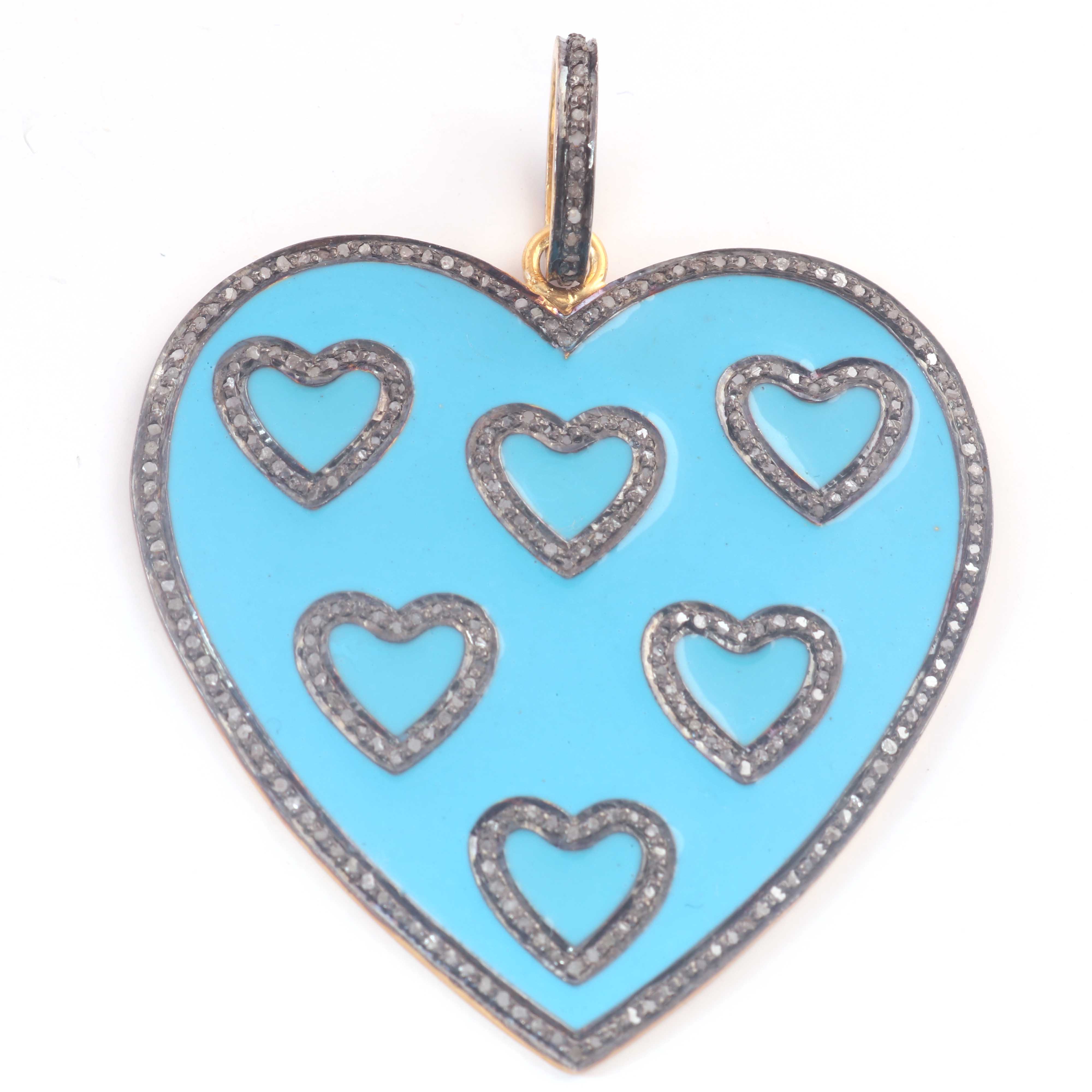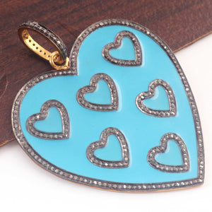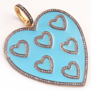 1 Pc Pave Diamond Pendant, Turquois Yellow Gold , Bakelite Heart Charm, Enamel Heart Pendant 50mmx49mm PD325