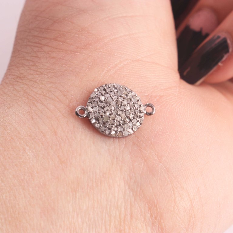 A Beautiful Round Shape Diamond Disc Connector 925 Sterling Silver..