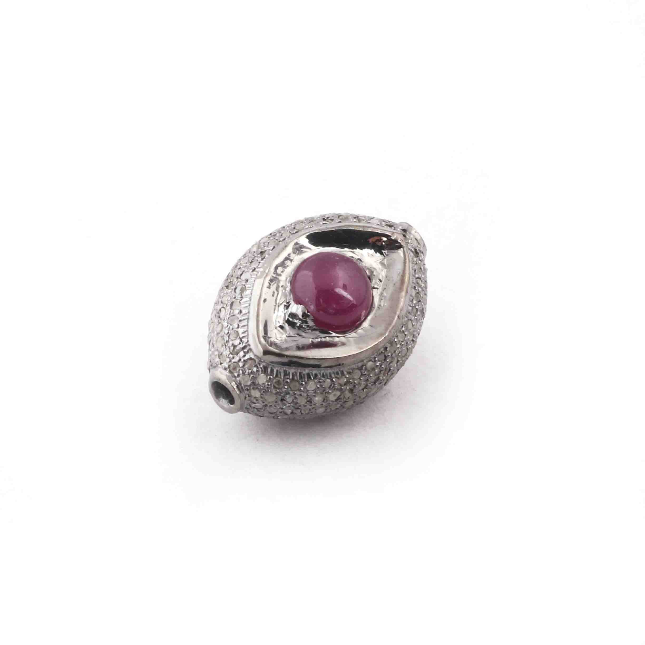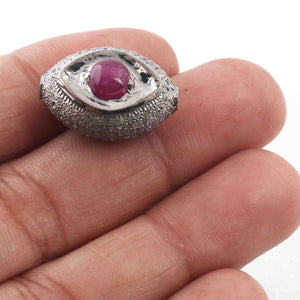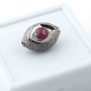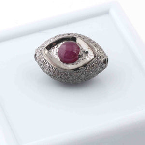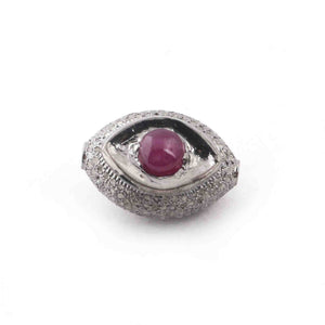 1 Pc Pave Diamond Ruby Evil Eye Bead- Evil Eye Bead-Double Sided Bead -925 Sterling Silver-20mmx14mm PDC1059