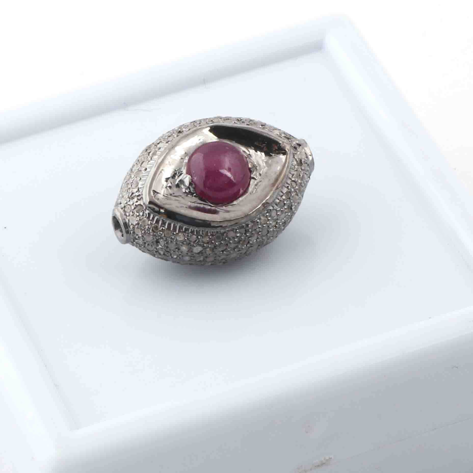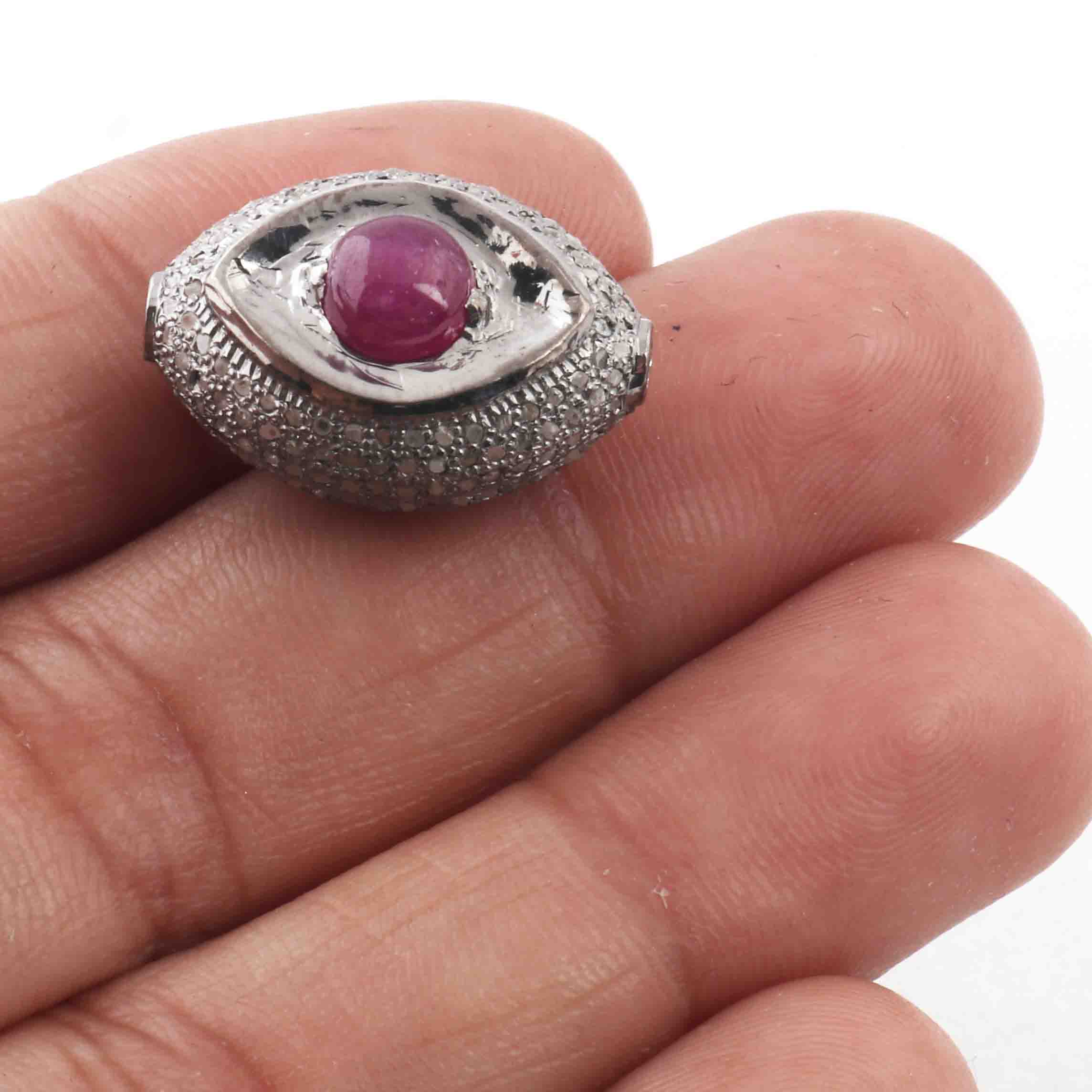 1 Pc Pave Diamond Ruby Evil Eye Bead- Evil Eye Bead-Double Sided Bead -925 Sterling Silver- PDC1059