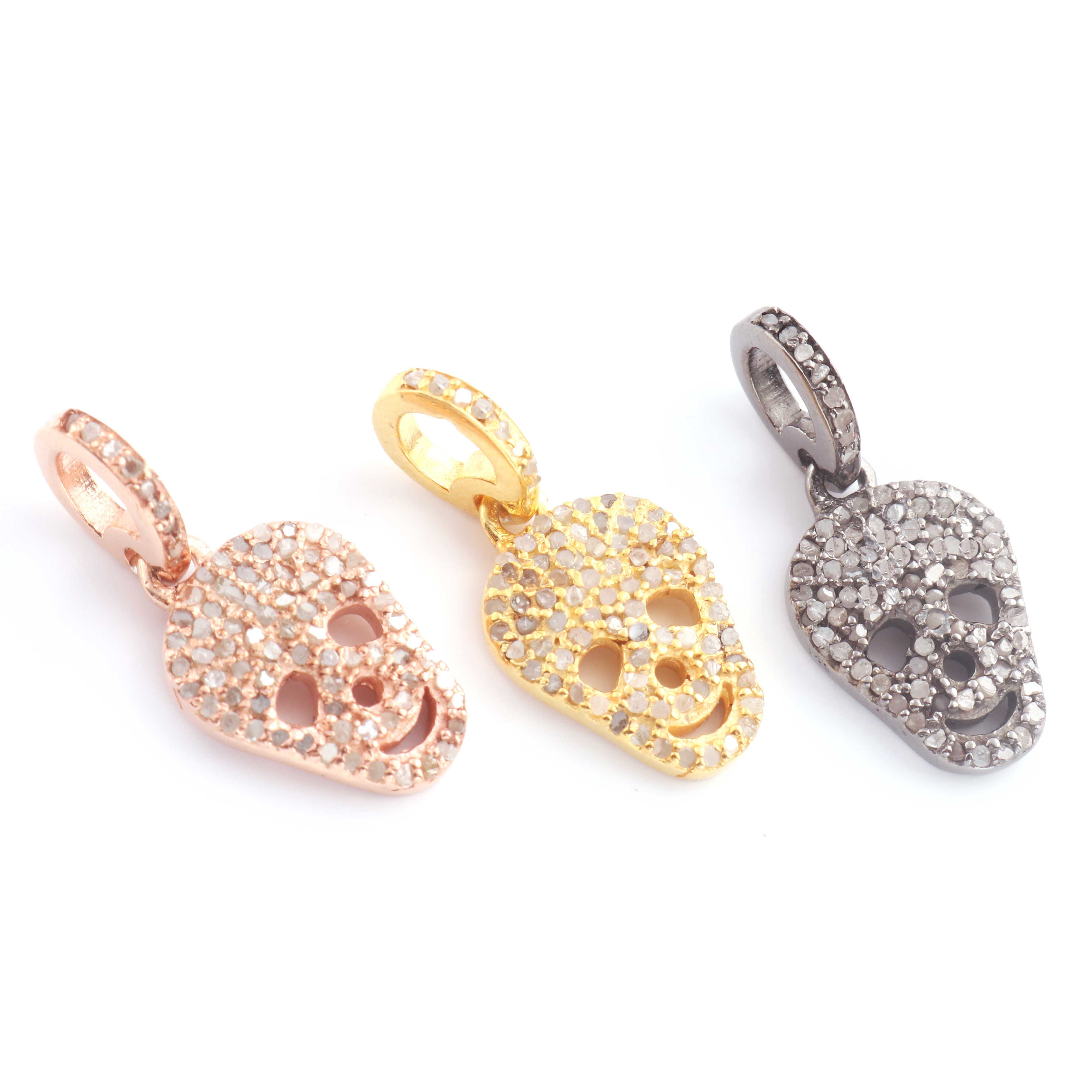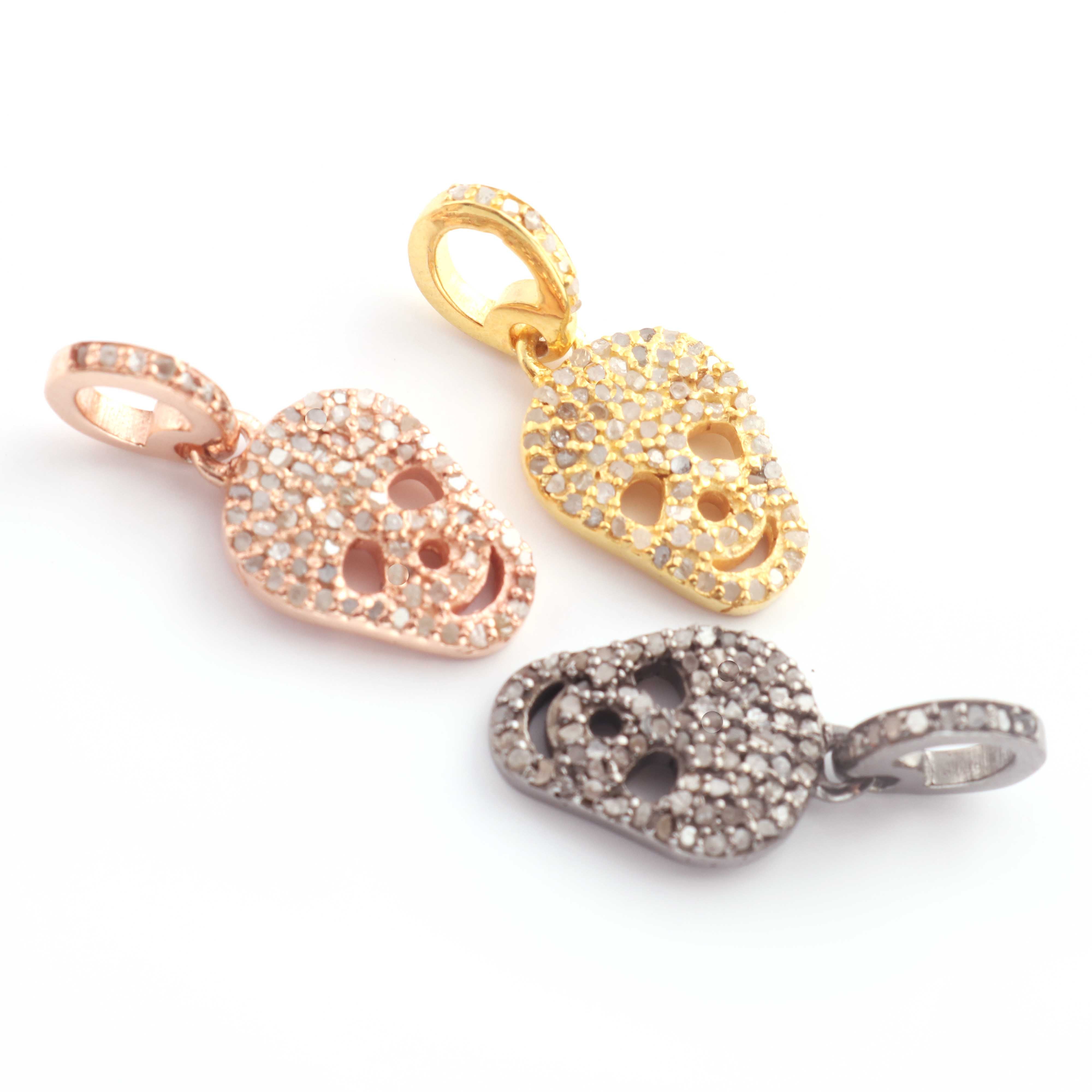 1 Pc Pave Diamond Skull Pendant, 925 Sterling Silver, Rose & Yellow Gold Vermeil, 16mmx10mm Pave Diamond Pendant, You Choose PDC00236