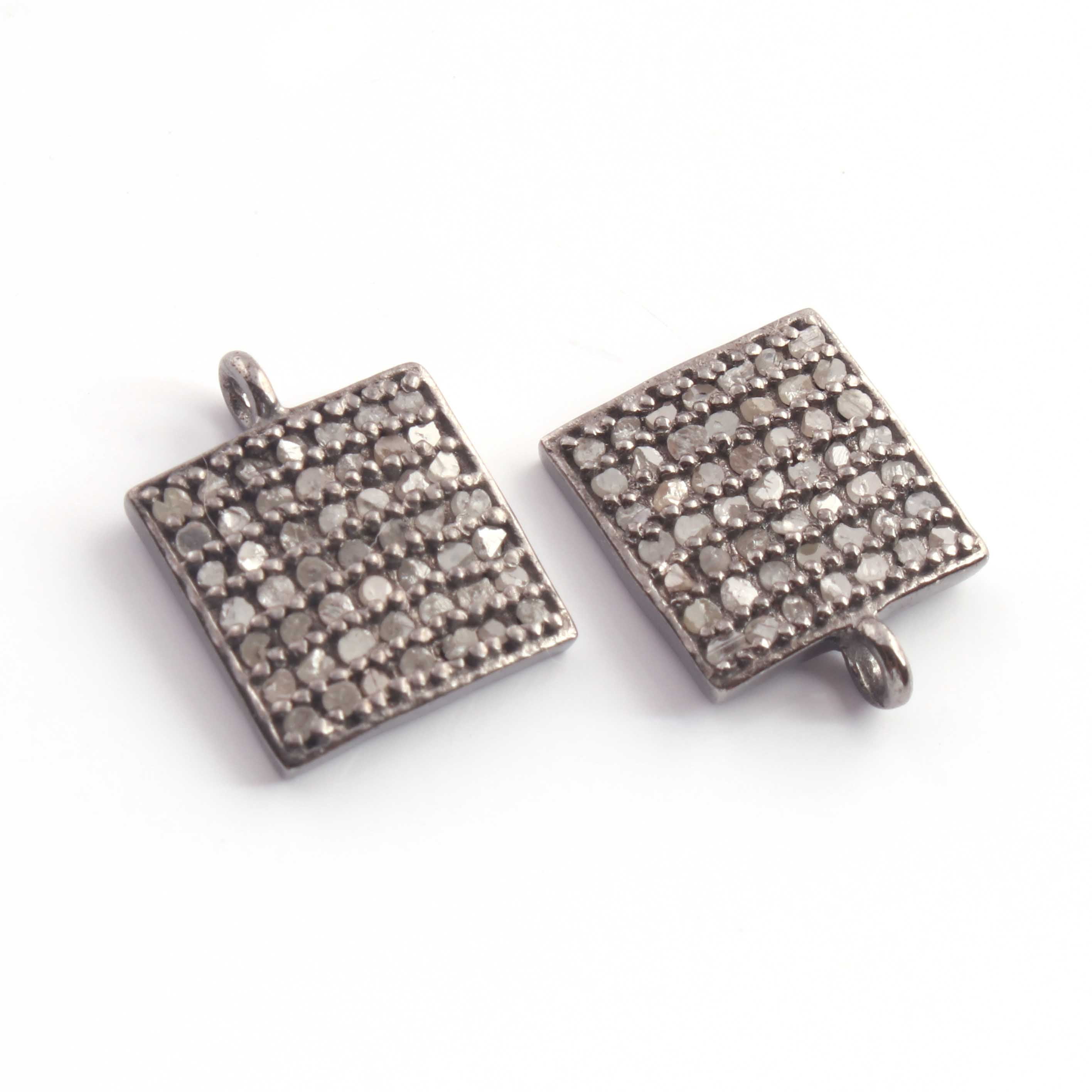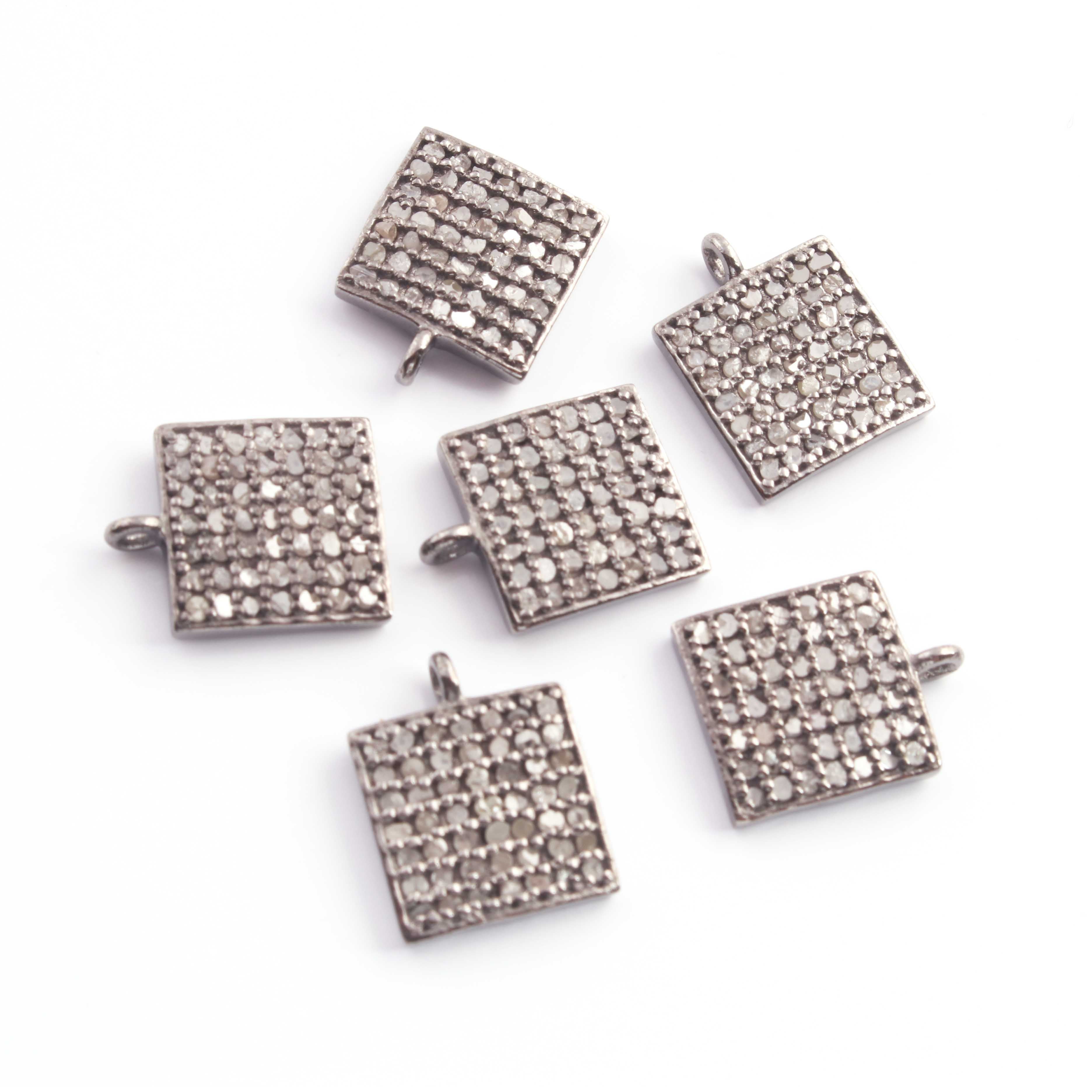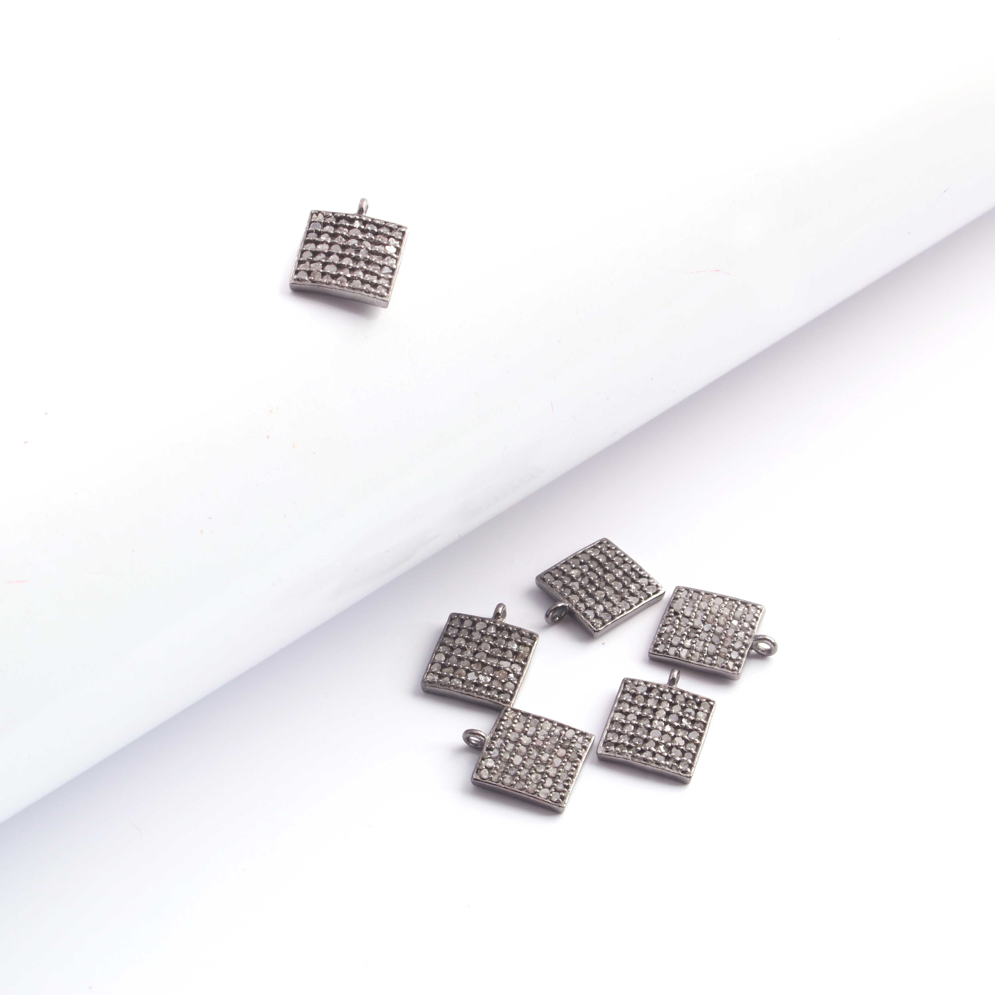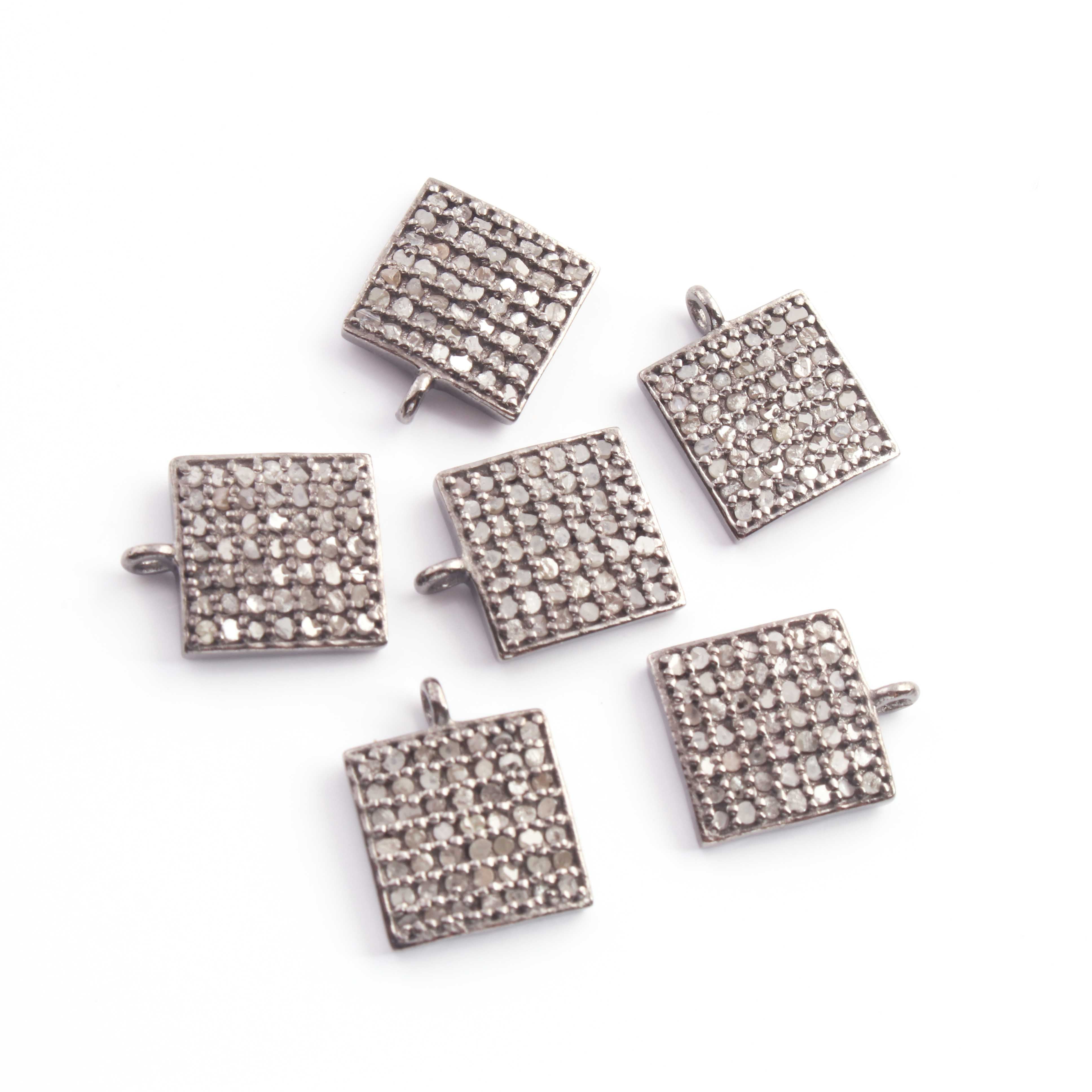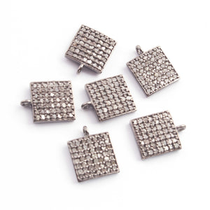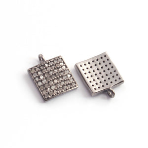 1 Pc Pave Diamond Square Charm 925 Sterling Silver Pendant - Square Charm Pendant 13mmx11mm PDC678
