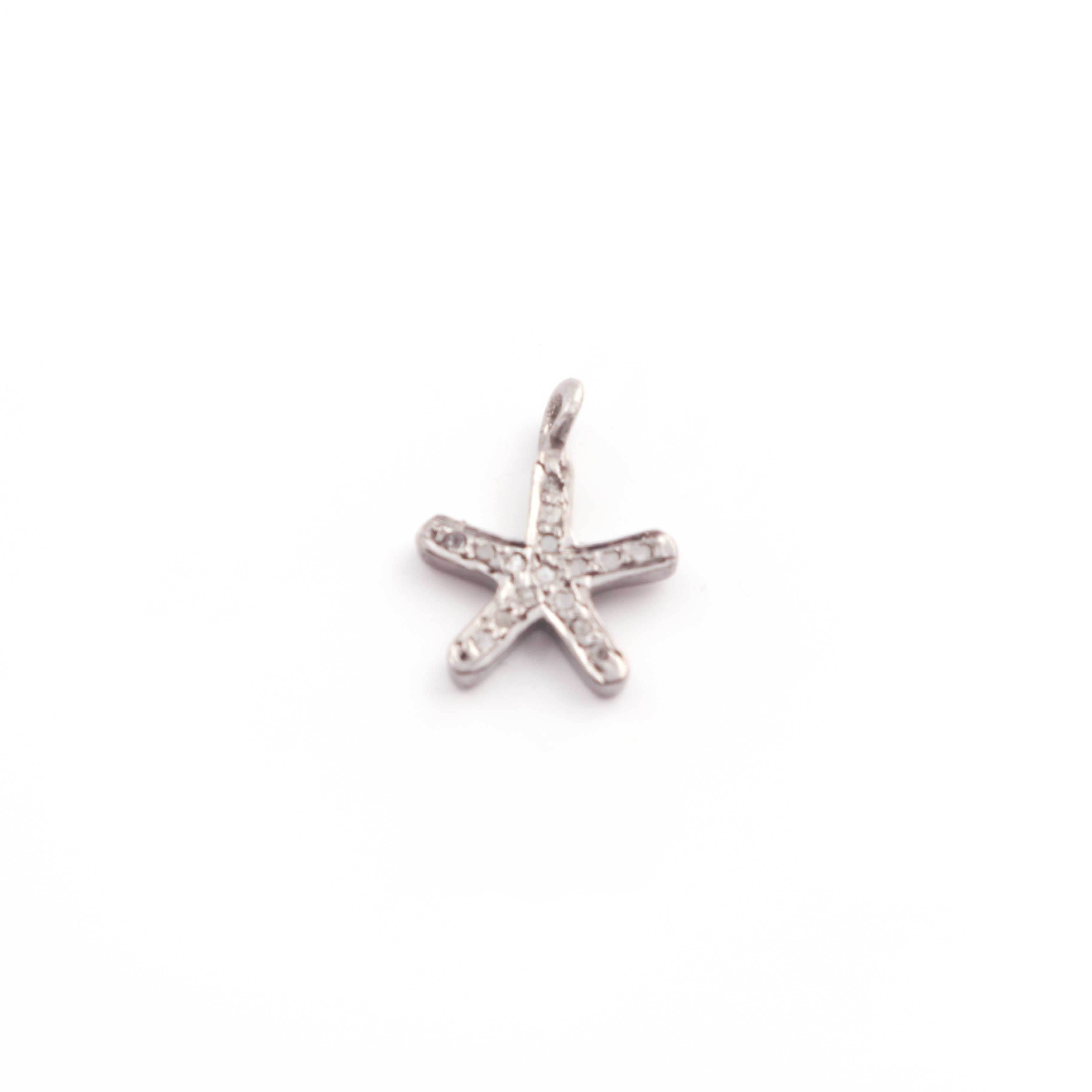 Listing Is For One (1) Pc Pave Diamond Star Charm 925 Sterling Silver Single Bail Pendant