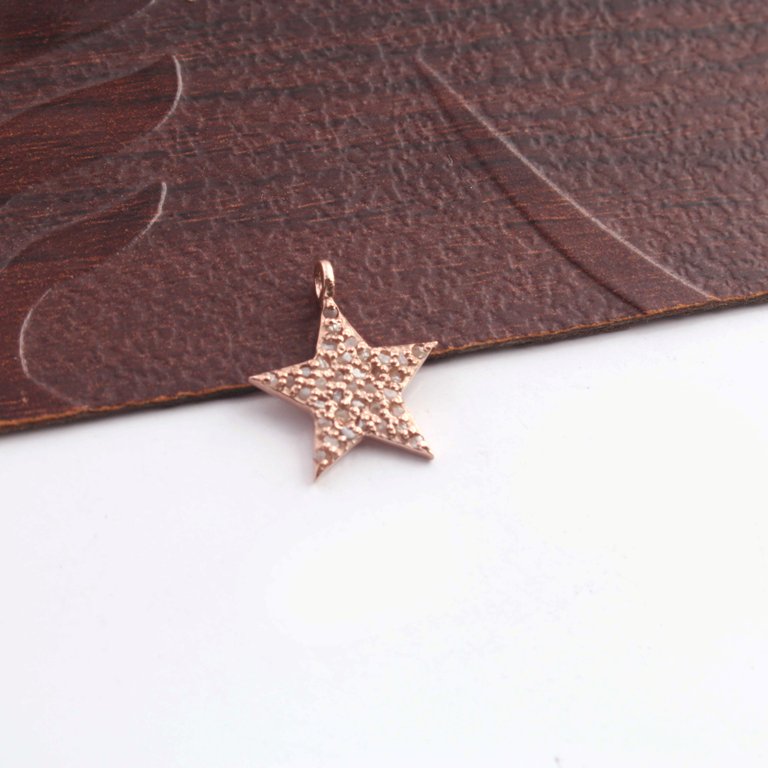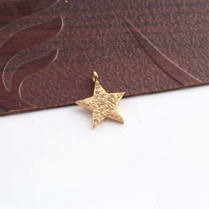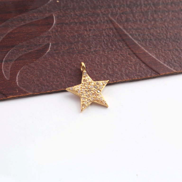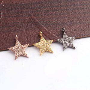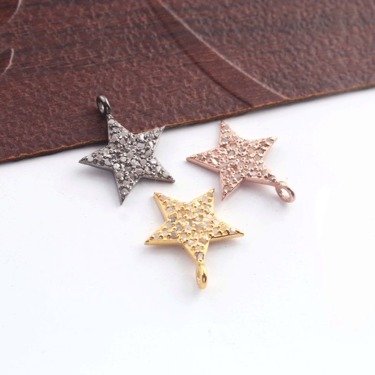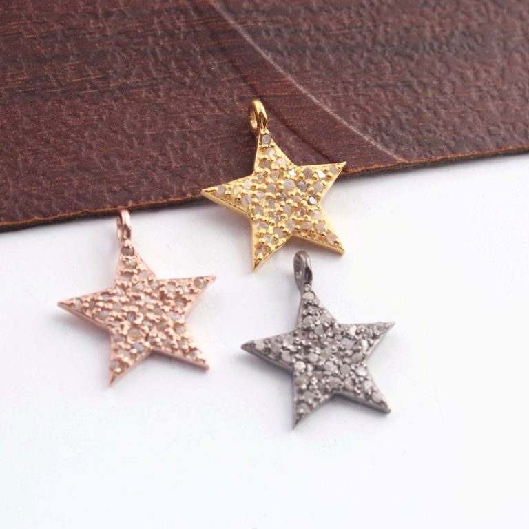1 Pc Pave Diamond Star Charm Over 925 Sterling Silver, Yellow & Rose Gold Vermeil Single Bail Pendant - Star Pendant 19mmx16mm PDC1088