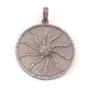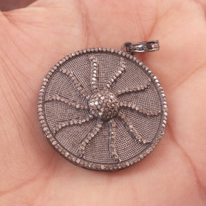 1 PC Pave Diamond Textured Sun Charm Pendant Over 925 Sterling Silver - Round Pendant 38mmX34mm PD437