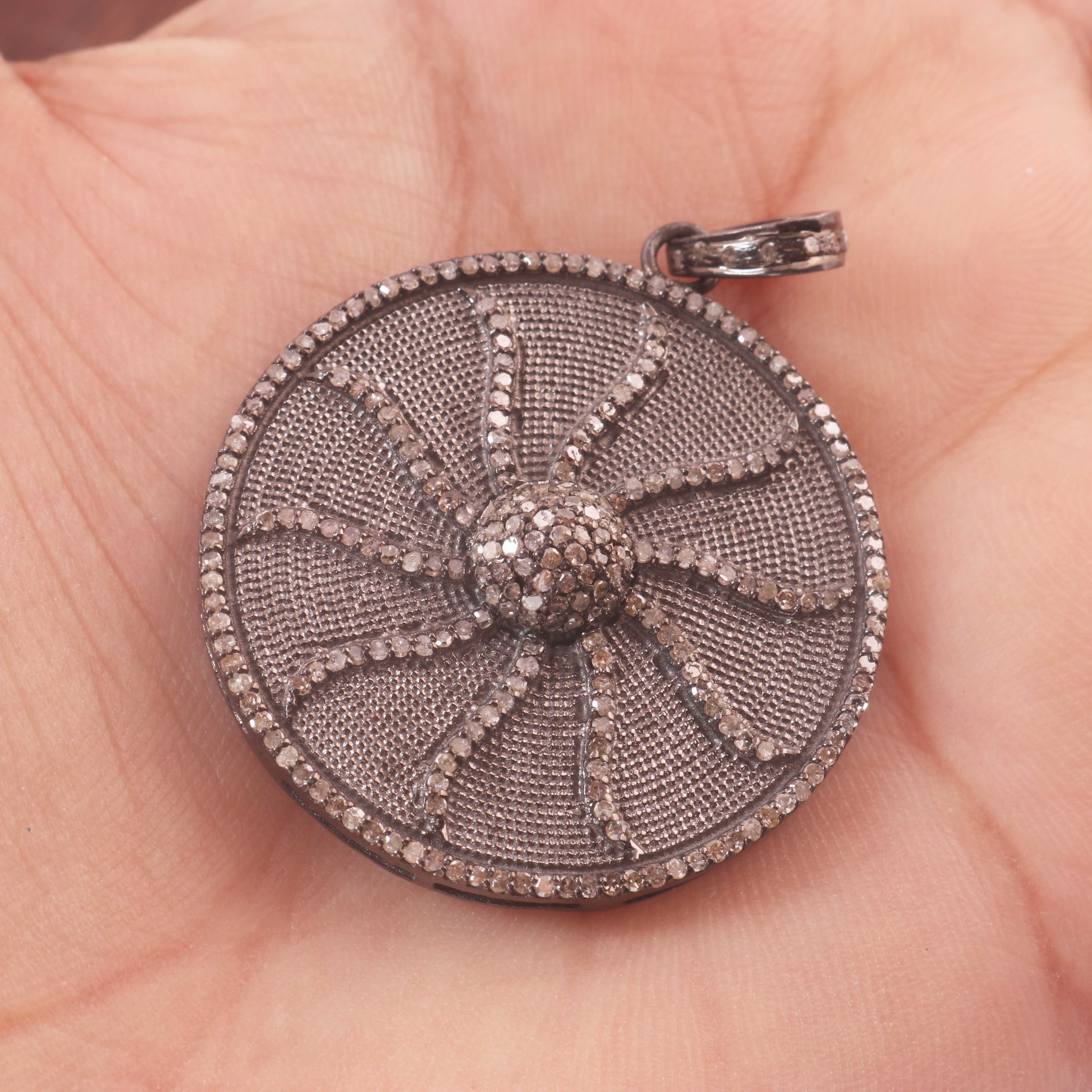Listing is For One (1) Pc Extremely Beautiful Pave Diamond Textured Sun Charm Pendant Over 925 Sterling Silver - Round Pendant. PD437