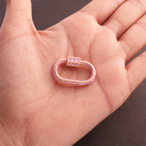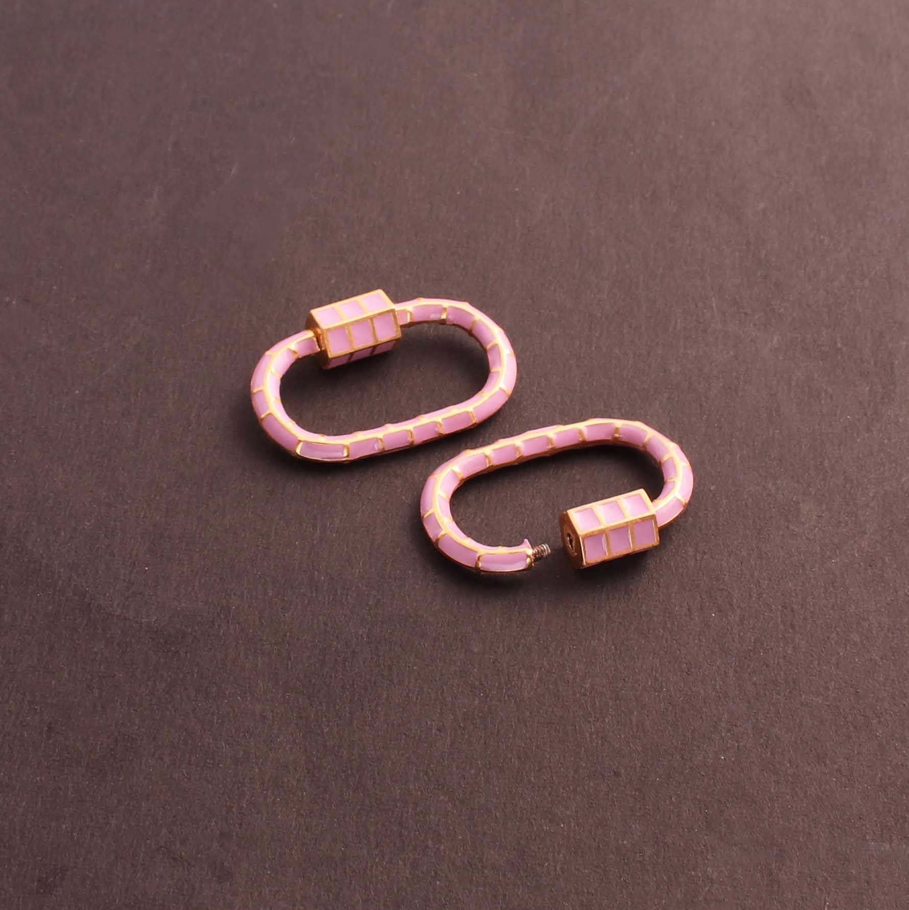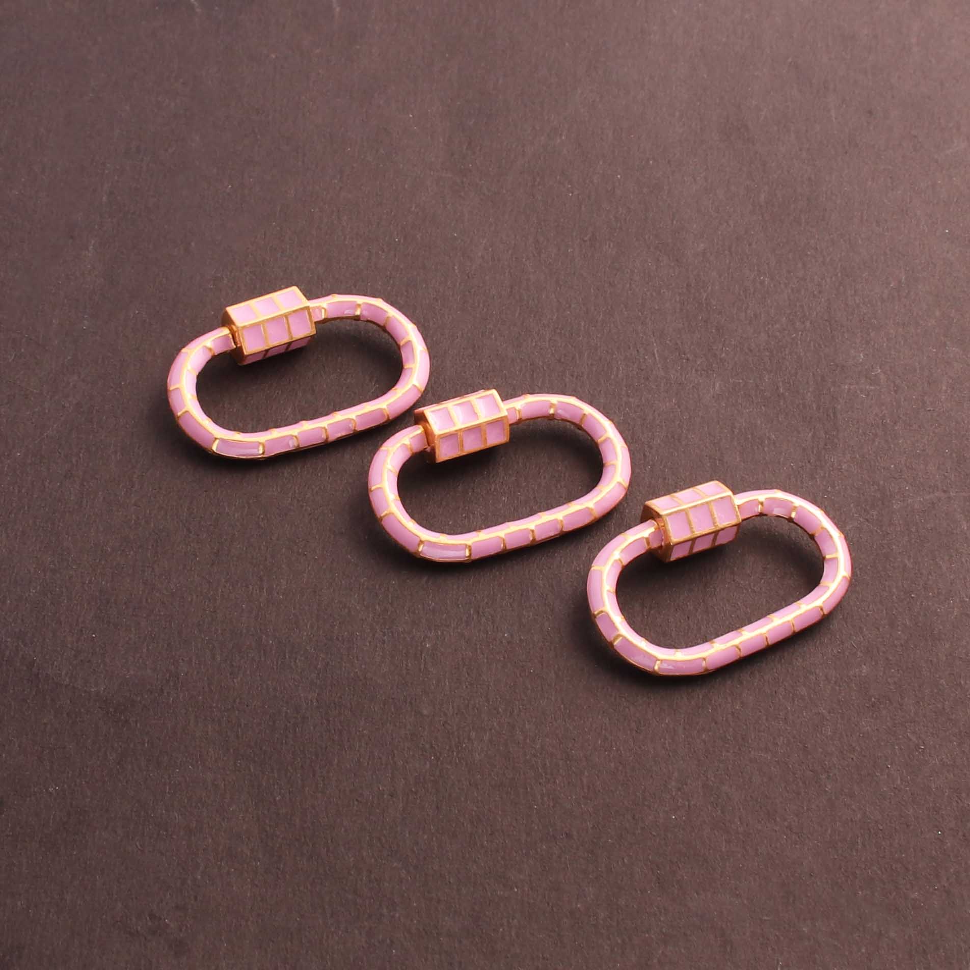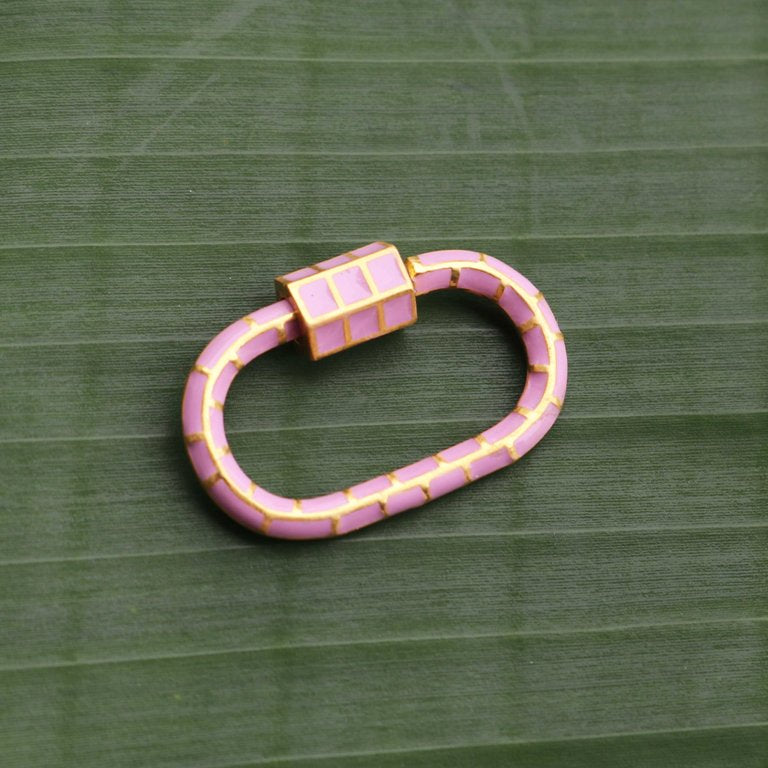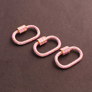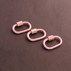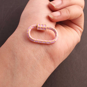 1 Pc Pink Color Designer Enamel Brass Carabiner - Enamel Lock 30mmx19mm CB076