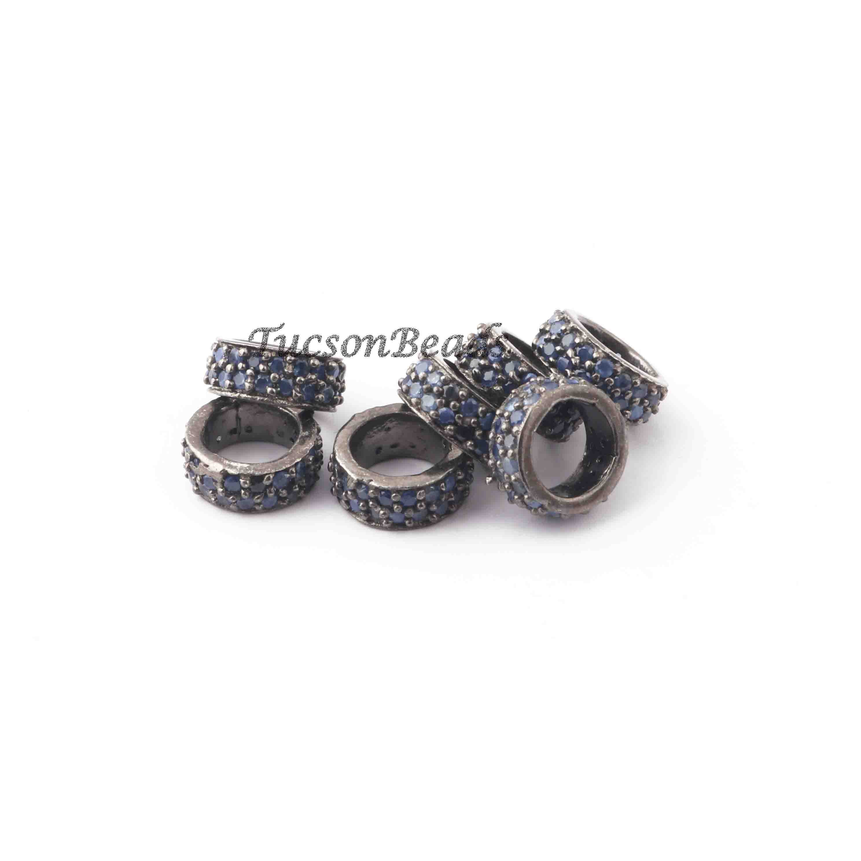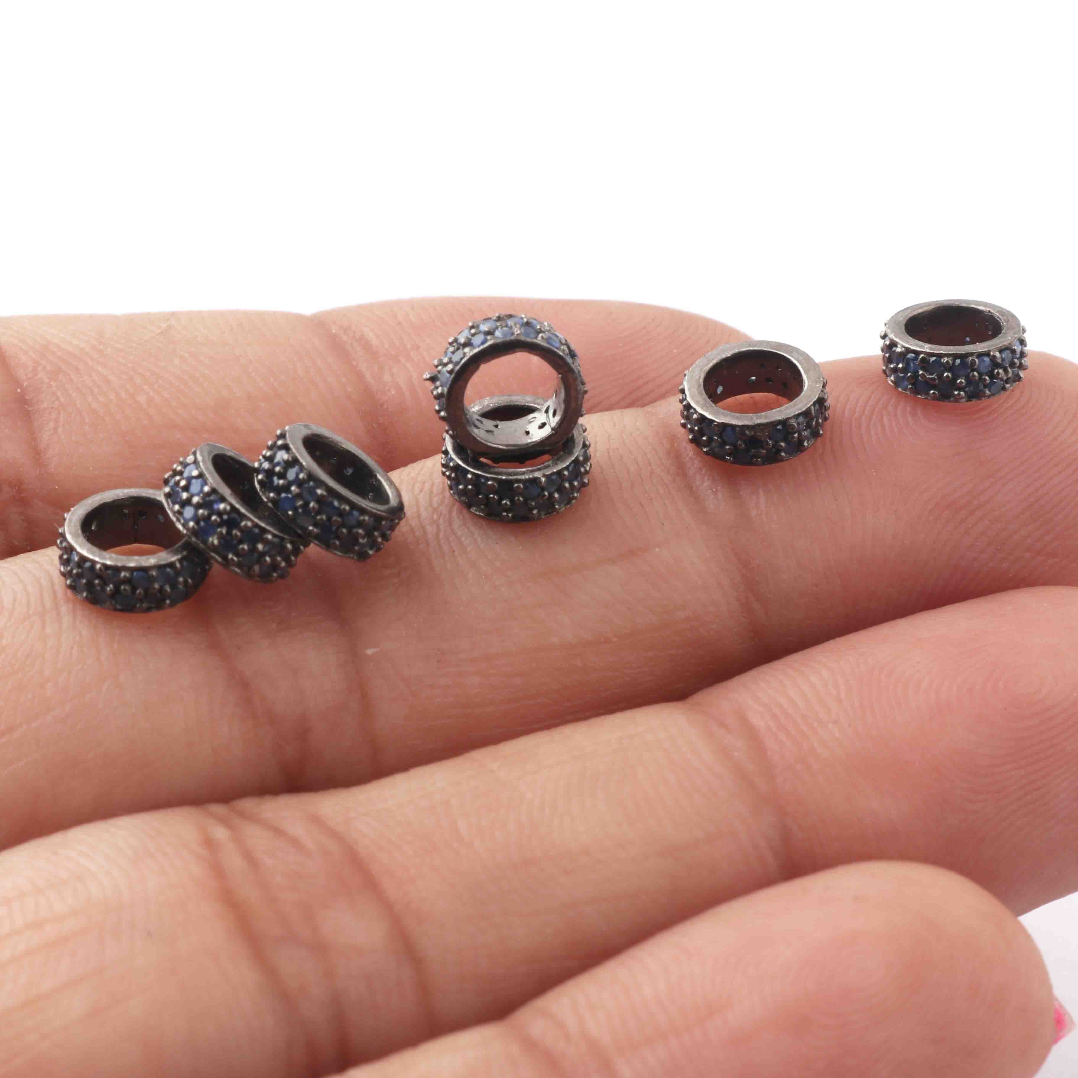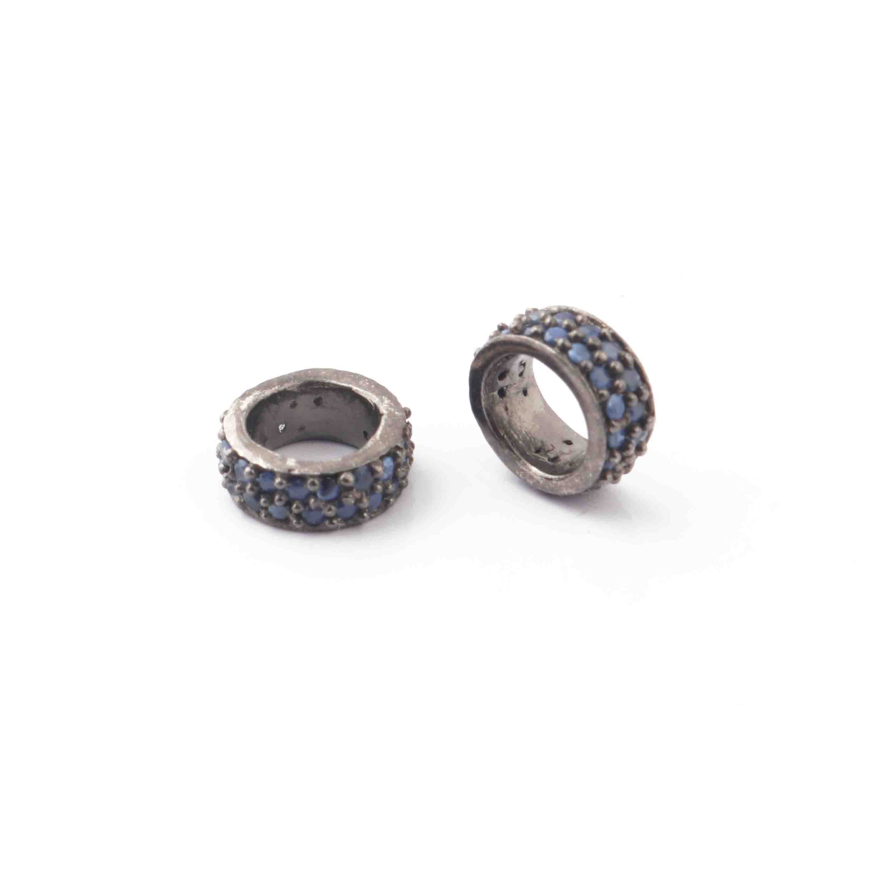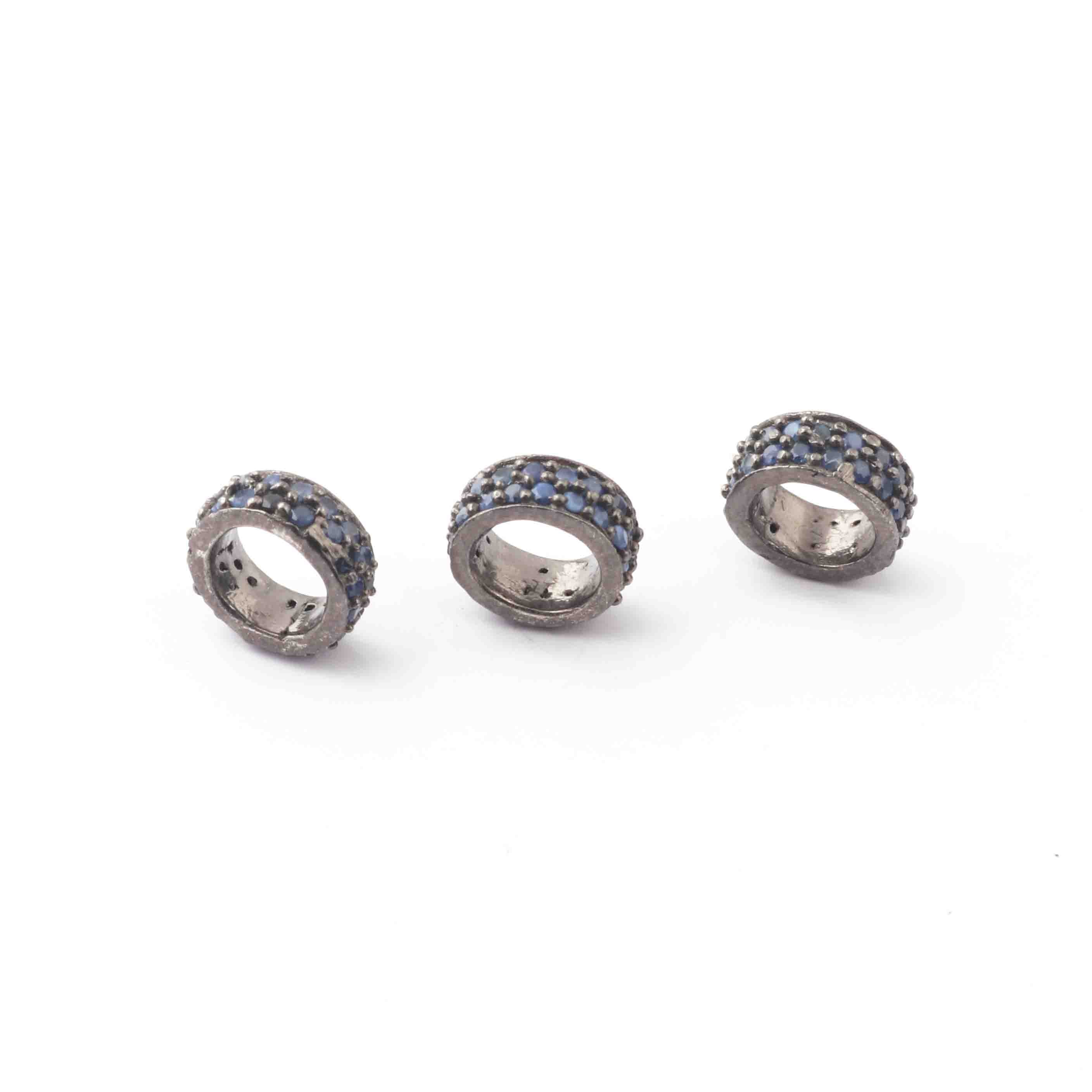 A Beautiful 925 Sterling Silver Blue Sapphire Wheel Pave Jewelry Beads.