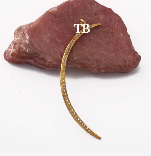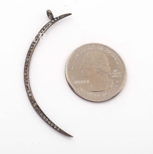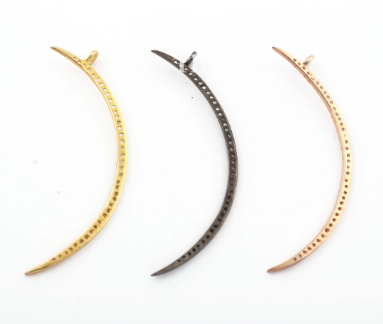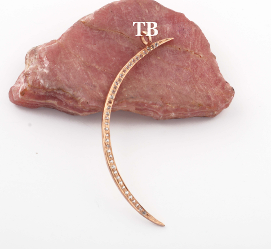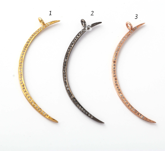 1 Pc White Topaz Moon Charm 925 Sterling Silver ,Yellow Gold & Rose Gold Vermeil Pendant - Moon Pendant 51mmx2mm WTC282
