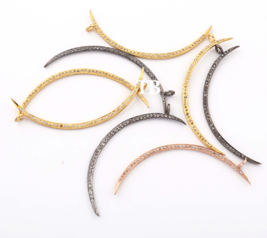 Listing is For One (1) PcWhite Topaz Moon Charm 925 Sterling Silver ,Yellow Gold & Rose Gold Vermeil Pendant - Moon Pendant