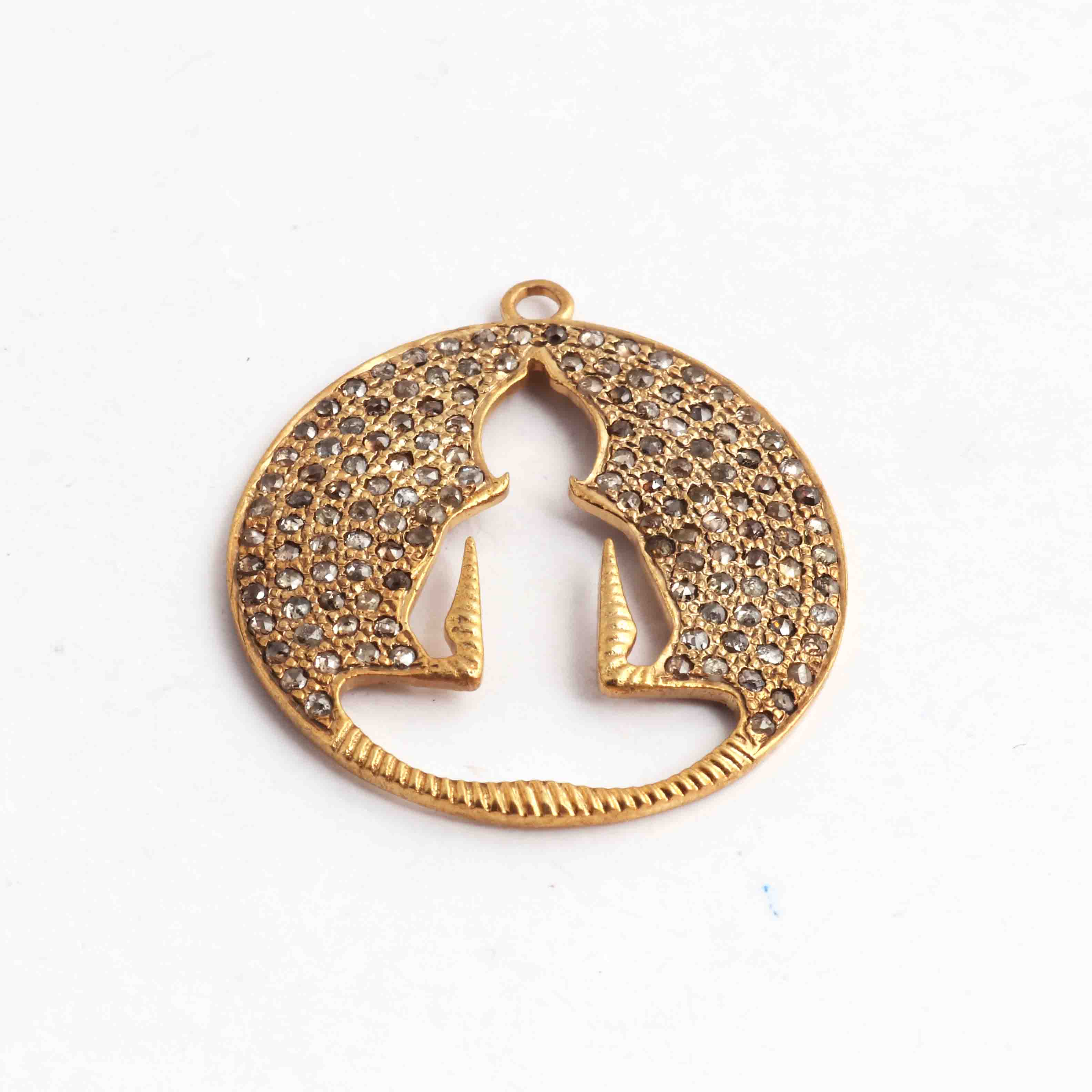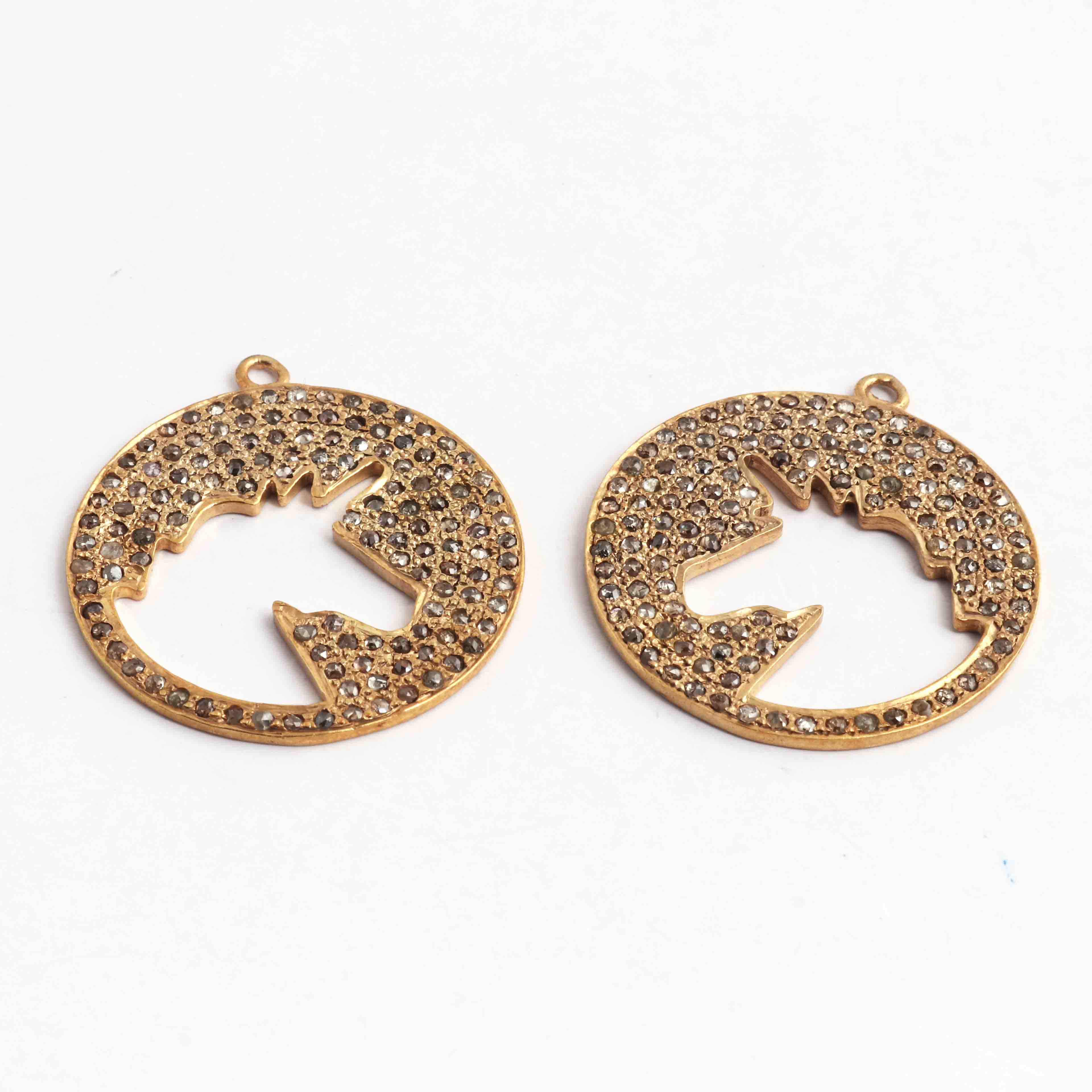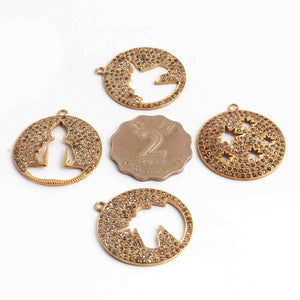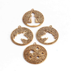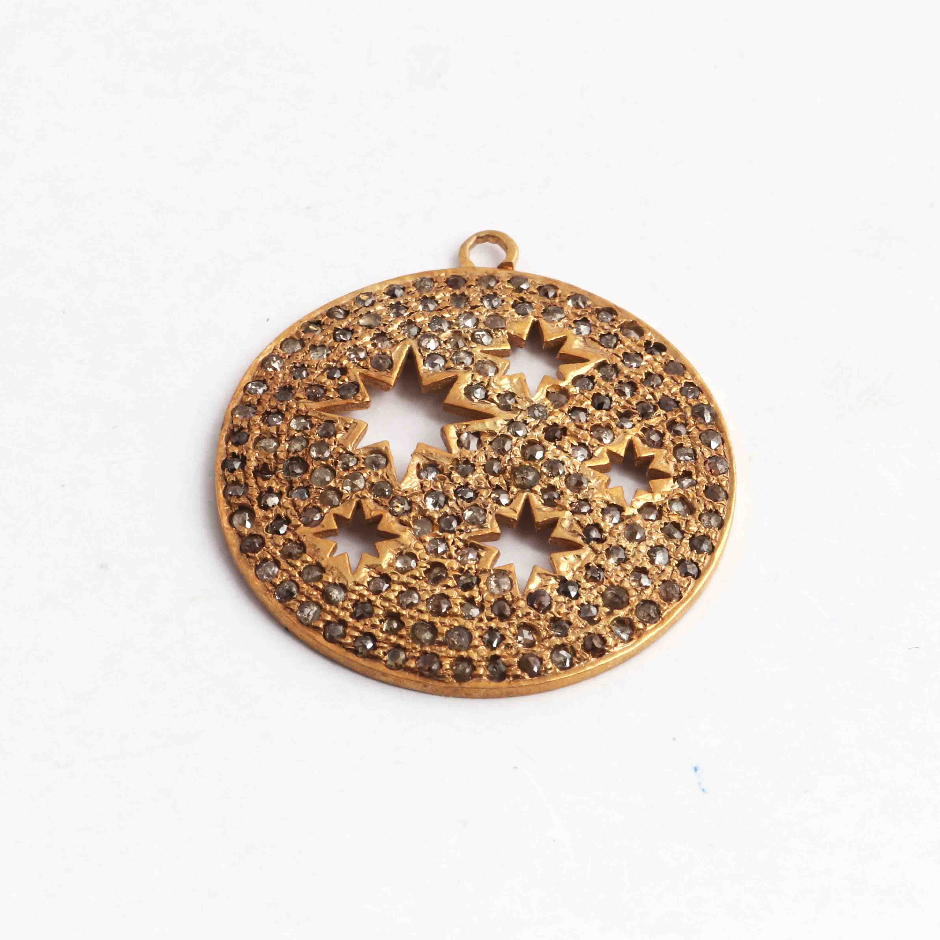 1 PC Yellow Gold Vermeil Round Disc Brass Pendant - Diamond Yellow Gold Vermeil Ronud Pendant 32mmx30mm PDC620