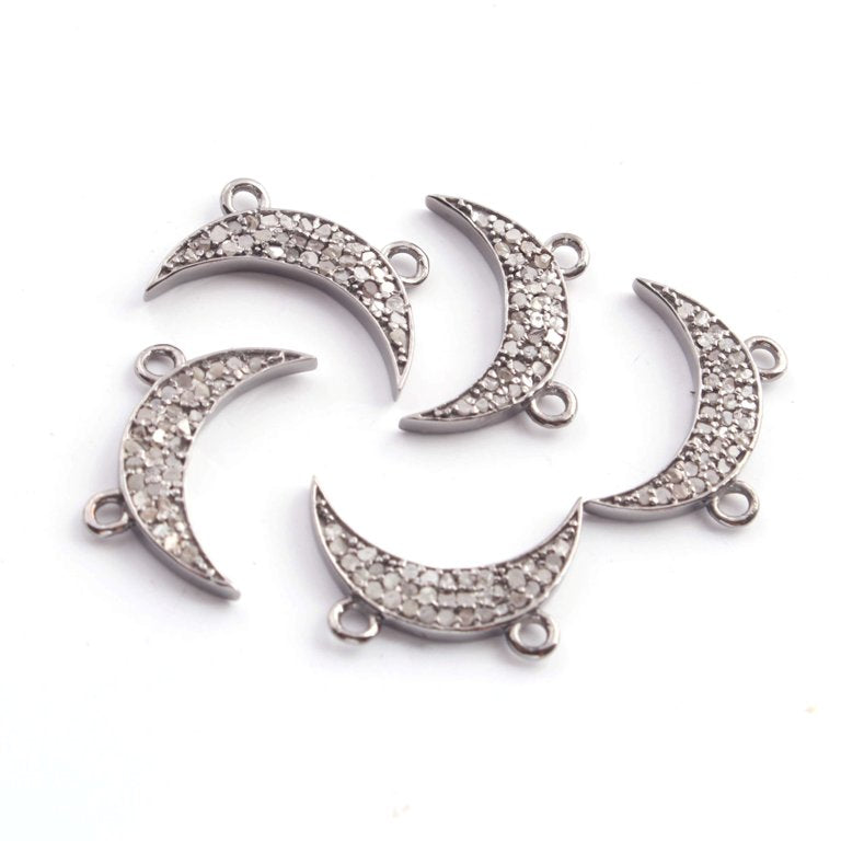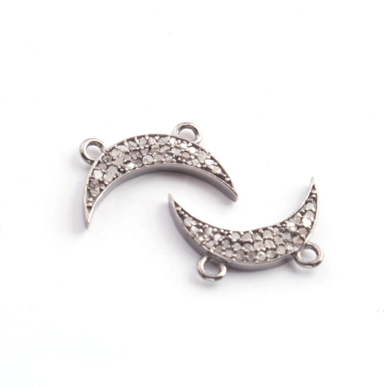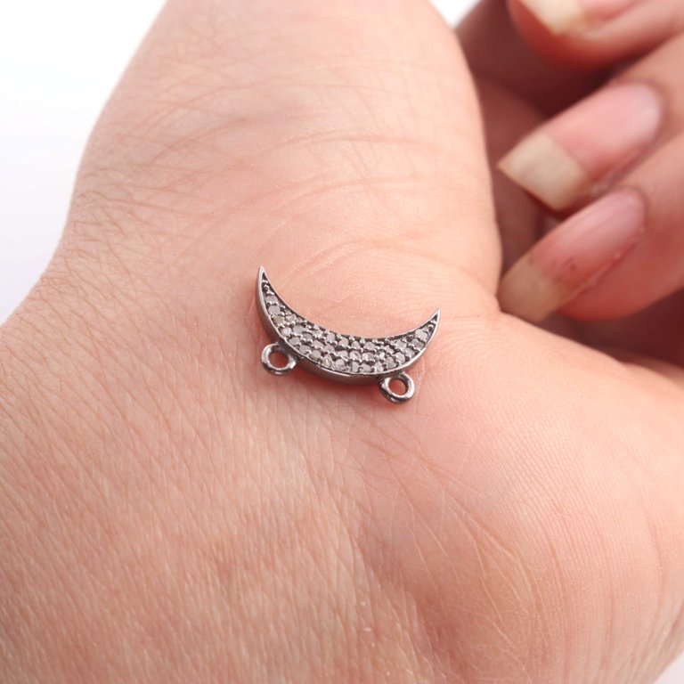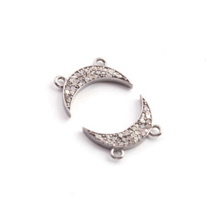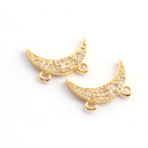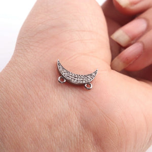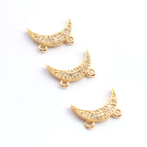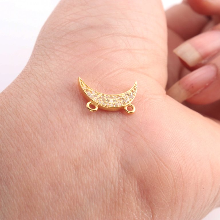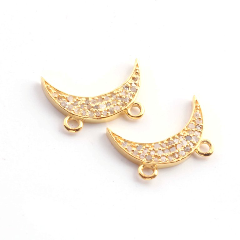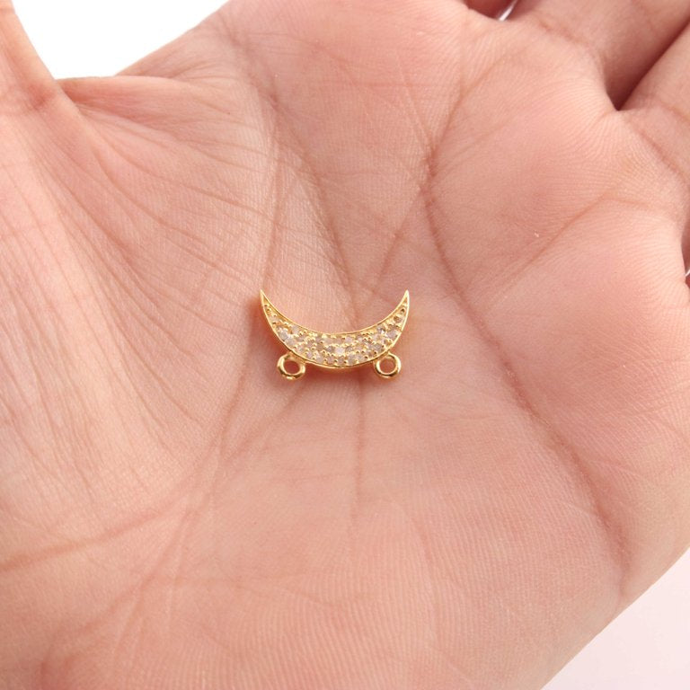 Listing Is For One (1) Pc Beautiful Pave Diamond Moon Charm 925 Sterling Silver & Vermeil Double Bail Pendant - PDC1043